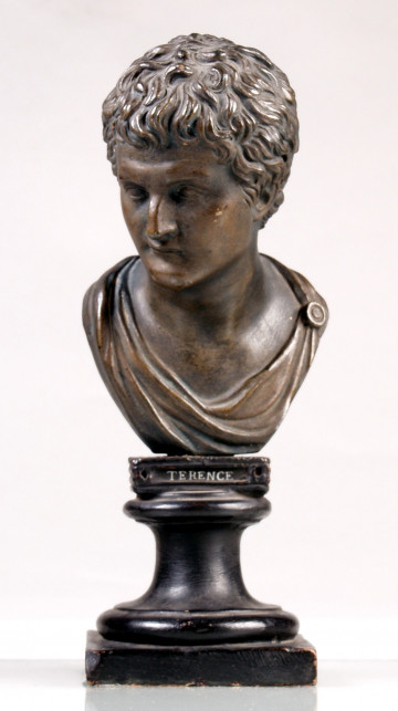 Miniaturowe popiersie Augusta, cesarza rzymskiego (63 p.n.e. – 14 n.e.) przedstawia go jako starszego mężczyznę, en face, z pochyloną głową. Twarz okrągła, z prostym nosem, dużymi oczami, z ustami o wydatnej, dolnej wardze, z zapadniętymi policzkami i zmarszczkami. Popiersie to zapewne jest kopią antycznego wizerunku cesarza.