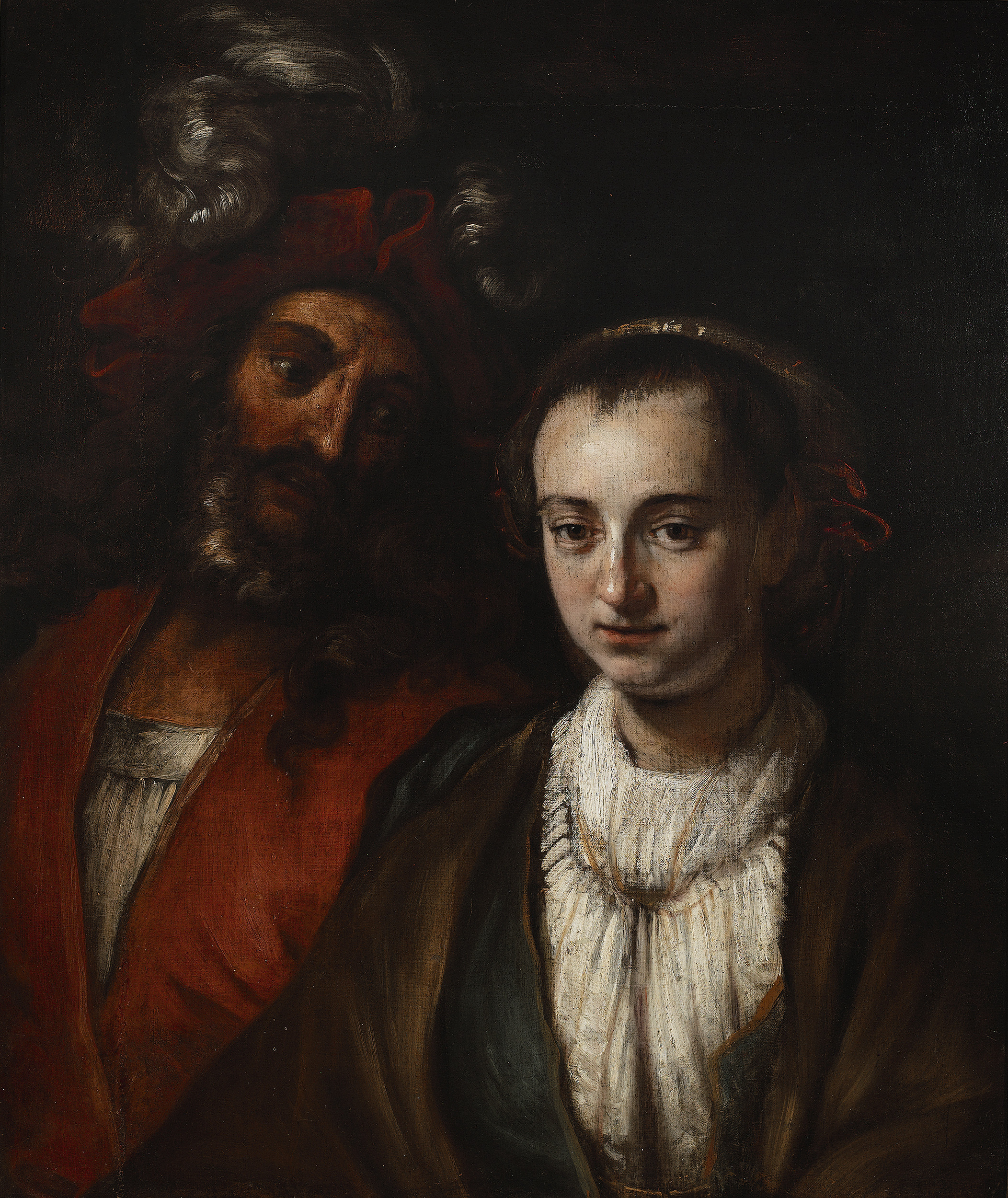 Konterfekt dziewczyny, malowany z dużo większą wprawą i wrażliwością, przywodzi z kolei na myśl wprost dzieła Rembrandta i artystów z najbliższych mu kręgów (np. Portret dziewczyny w fantazyjnym stroju przypisywany Jacobowi Levecqowi, uczniowi Rembrandta; ok. 1653, olej na płótnie, 65.5 x 54 cm, Agnes Etherington Art Centre). Nie sposób oprzeć się wrażeniu, że postać żołdaka została doń dokomponowana.
