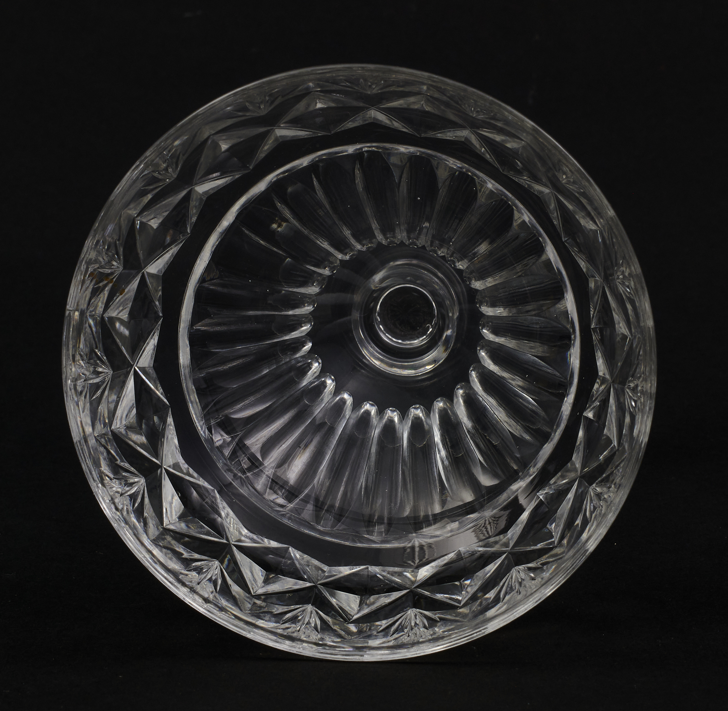 Kieliszek okrągły, ozdobiono szlifowaną dekoracją rośliną. Stopa okrągła, nóżka krótka i szeroka, zakończona pierścieniem, na którym osadzona stożkowata czara. Spód stopy dekorowany płytkim szlifem o motywie wielopłatkowego kwiatka.