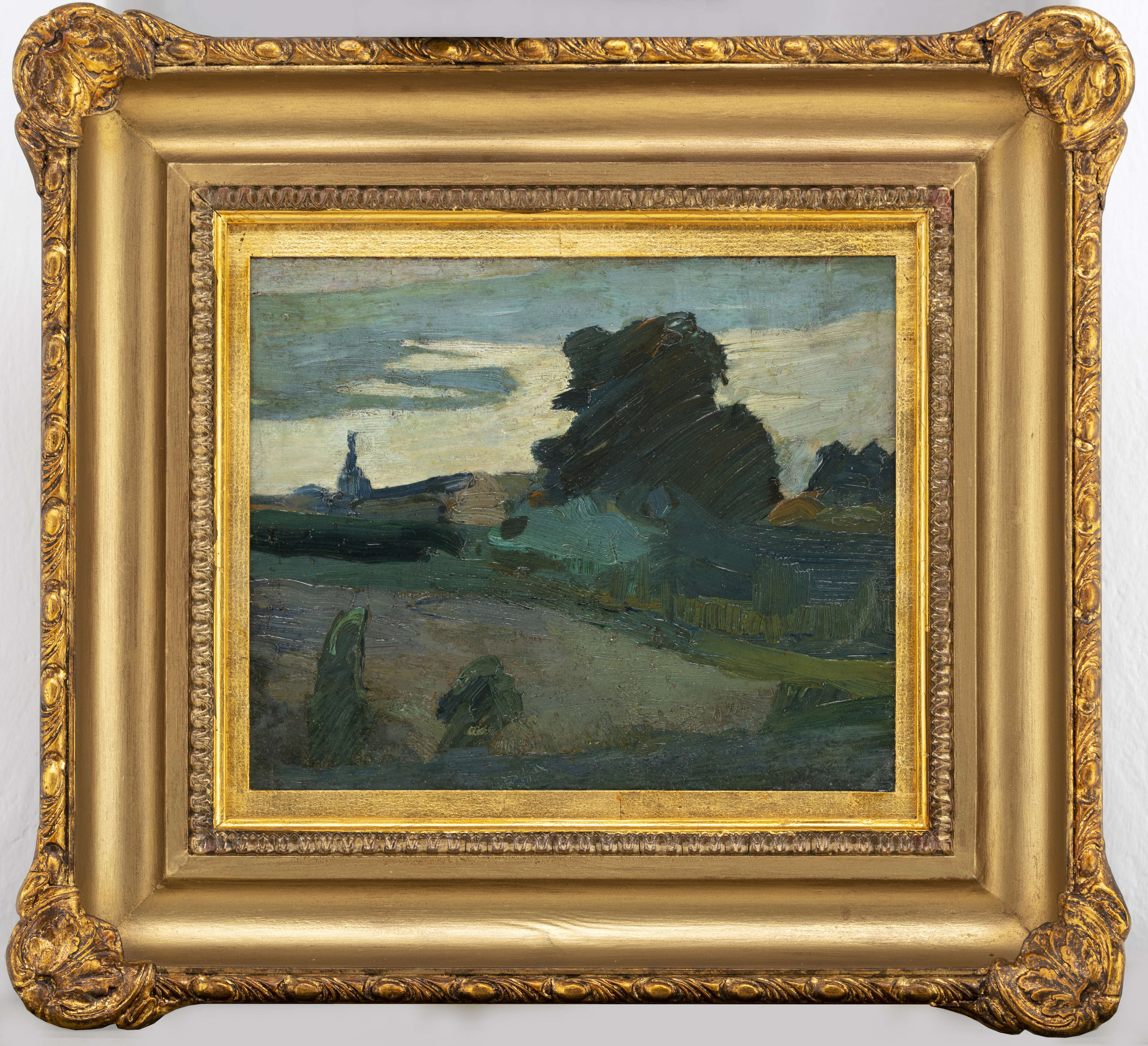 Krajobraz z drzewami jest późnym obrazem zmarłego w 1907 roku artysty, pokazuje zarazem jego wrażliwość na rozstrzygnięcia kolorystyczne i opracowanie fakturalne, w dorobku artysty wpisuje się w ekspresjonistyczne poszukiwania malarskie, rozwijane we własny, oryginalny sposób.