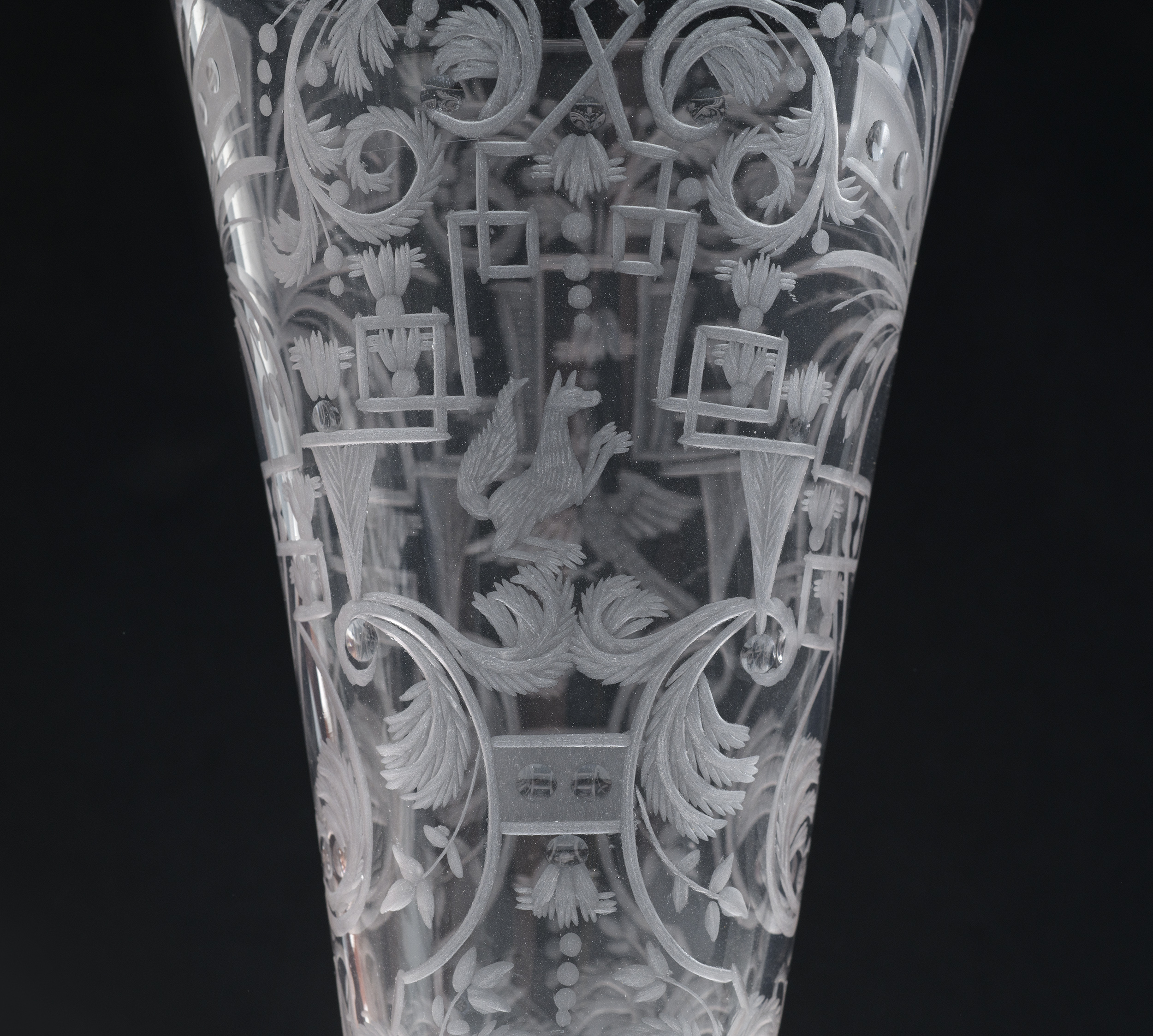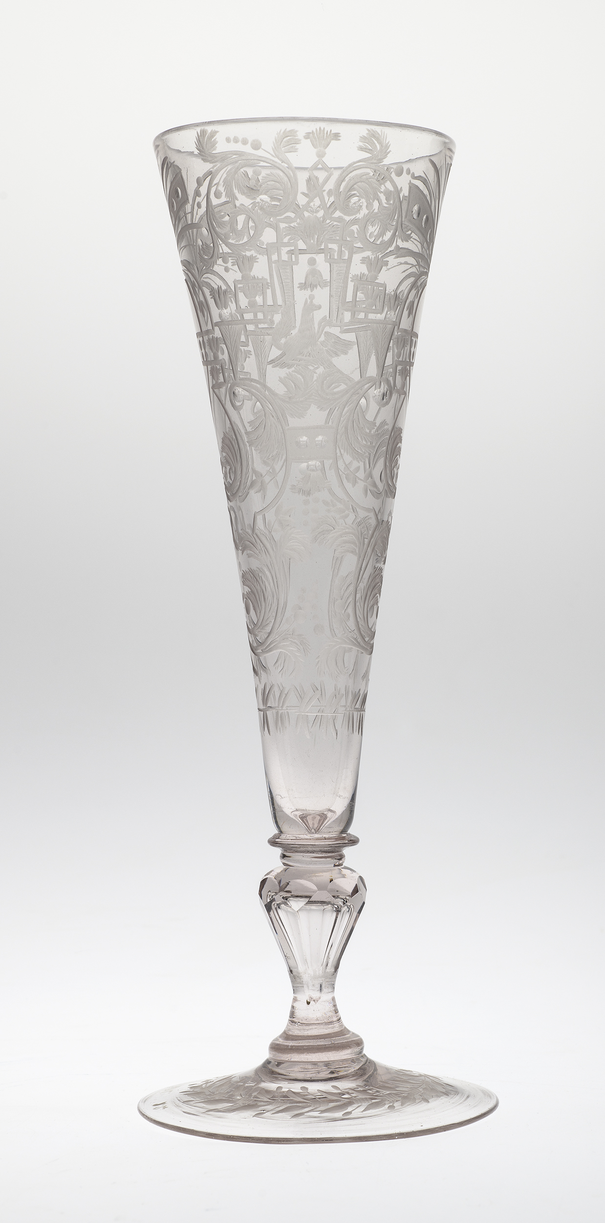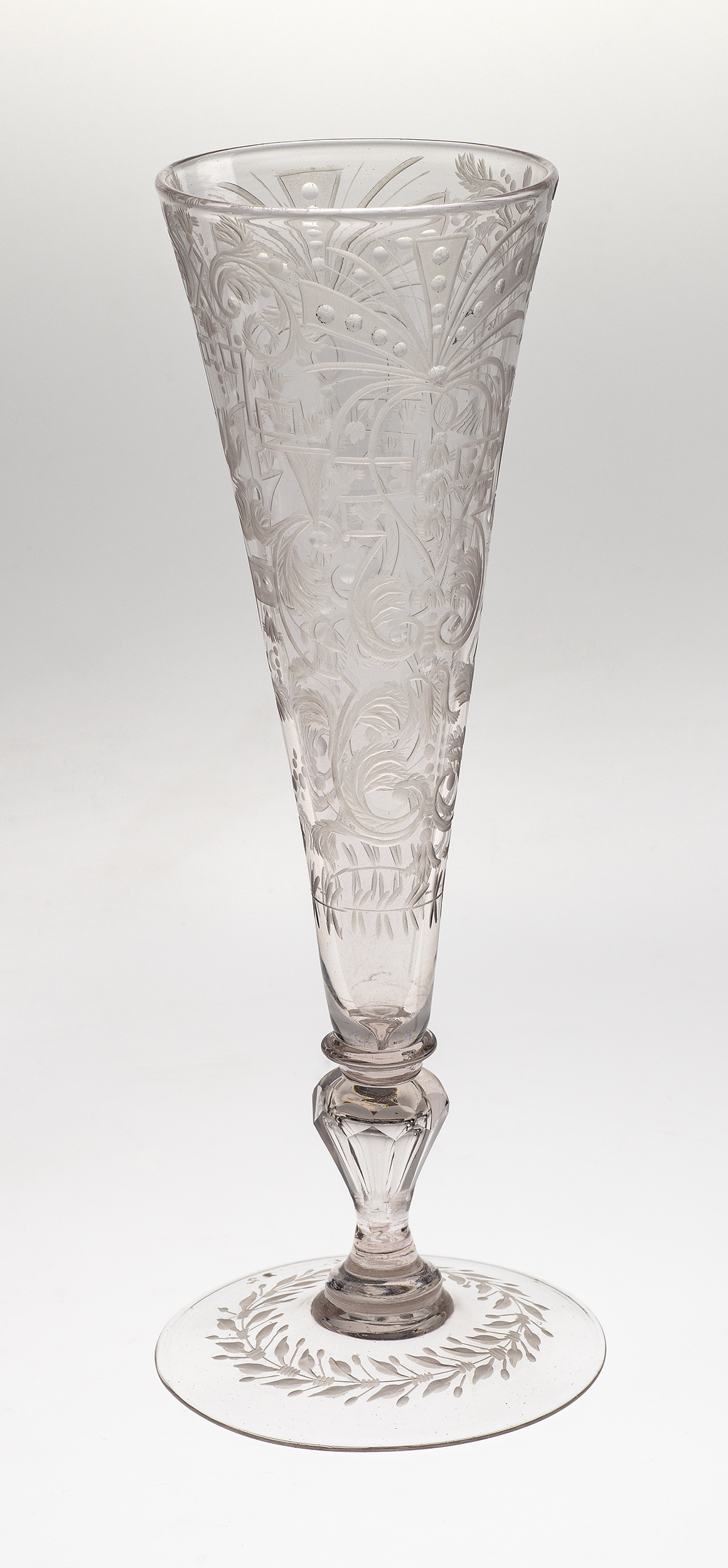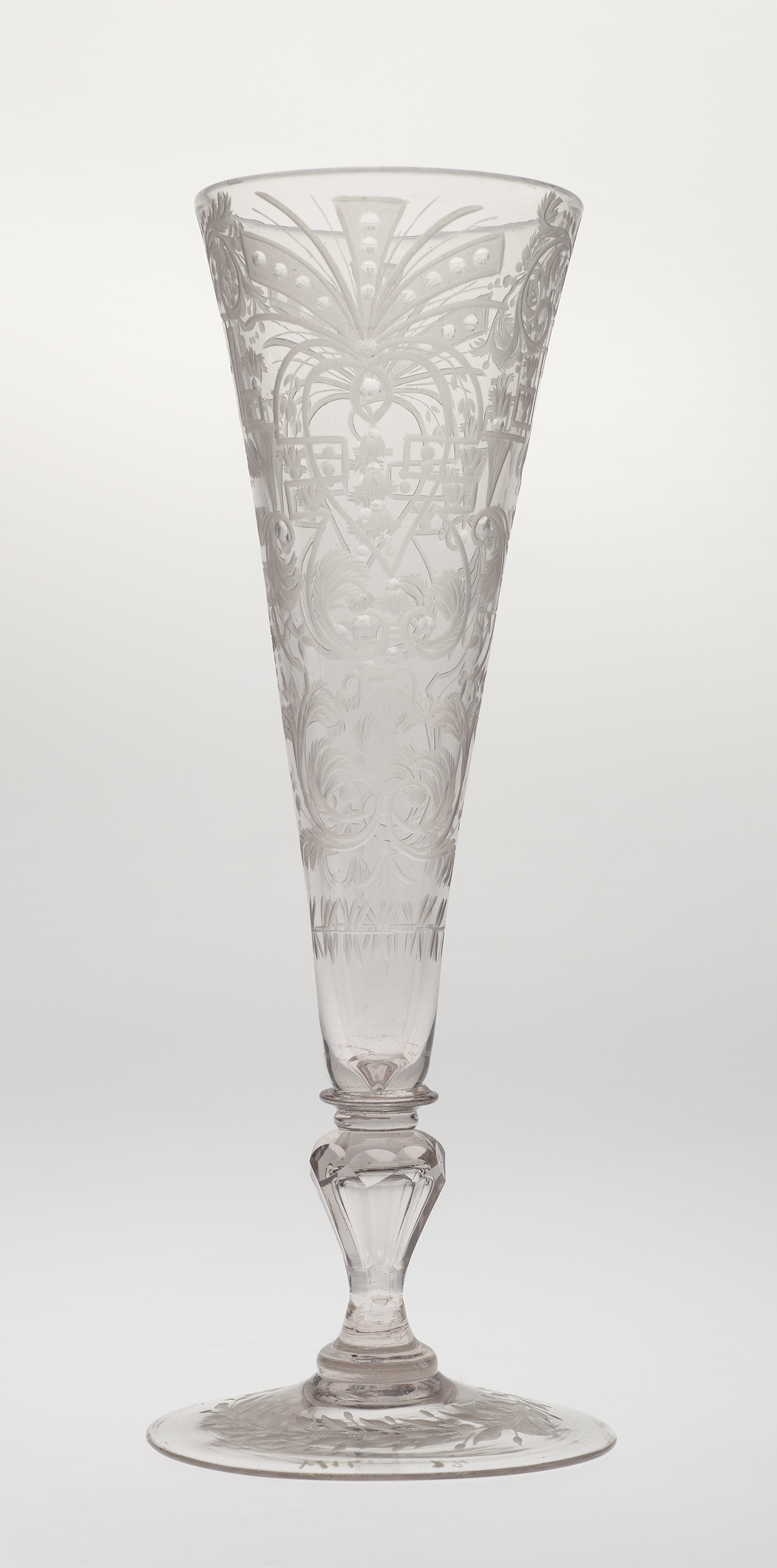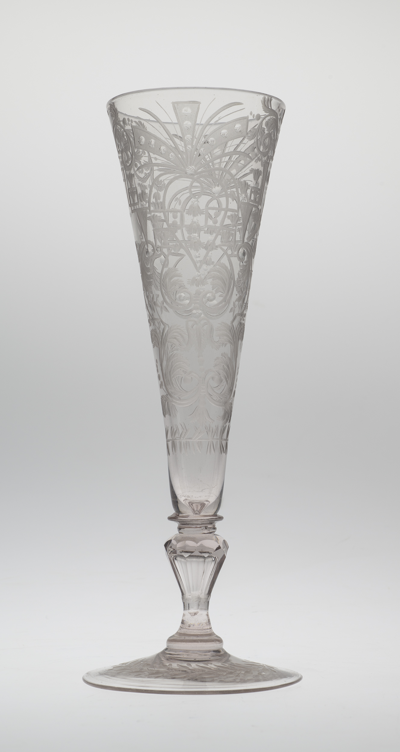 Nowe techniki i materiały, jakim było szkło kryształowe oraz grawerowanie i szlifowanie, które w połowie XVII wieku zaczęły być stosowane w wielu hutach, zupełnie zmieniły europejską modę na szkło. Prymu nie wiodła już Wenecja z jej delikatnymi, barwionymi i dekorowanymi w masie wyrobami, ale stoły biesiadne zapełniły się szkłami masywnymi i ciężkimi których przezroczystość podkreślano fasetowaniem i dodatkowo ozdabiano grawerunkiem.