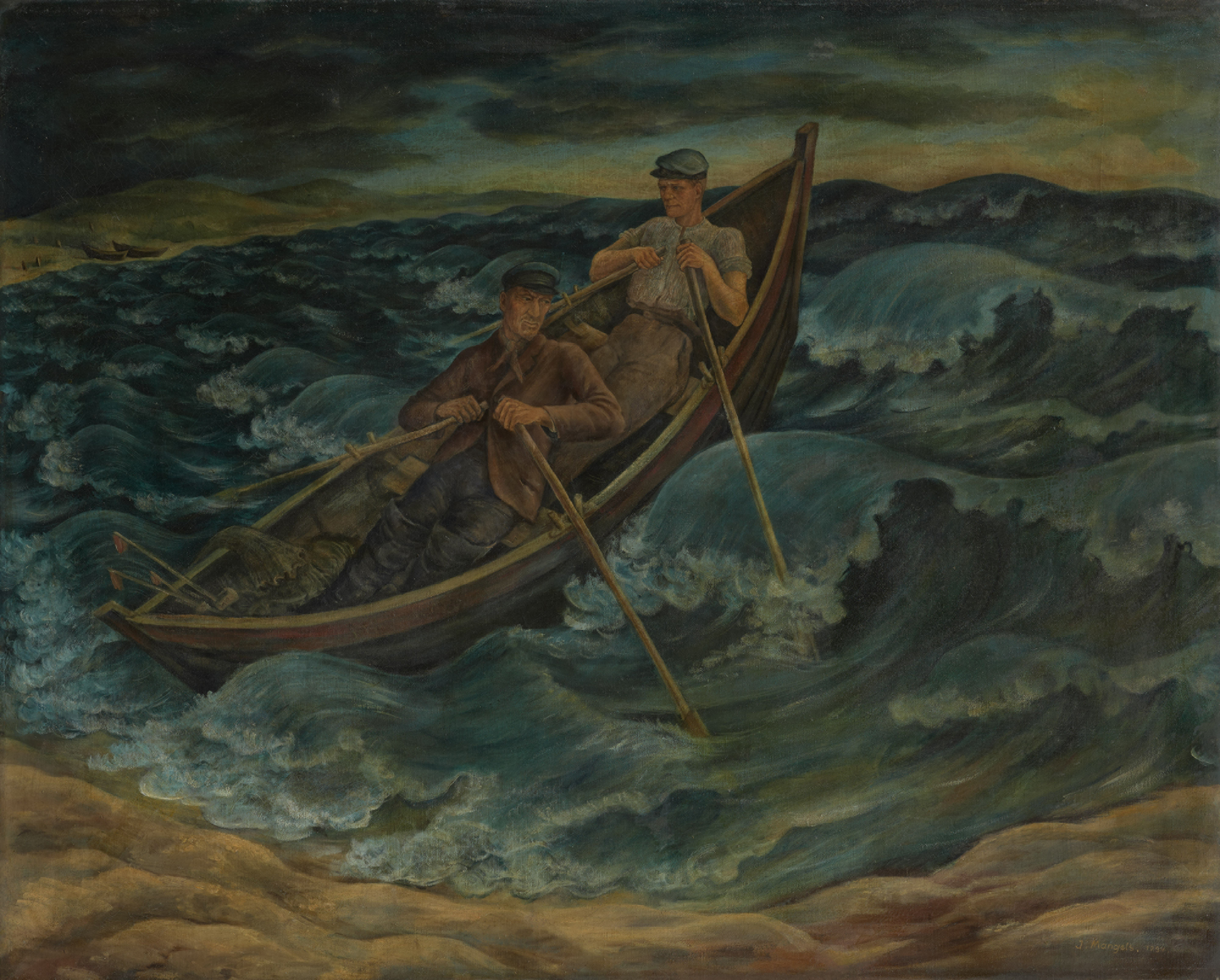 Johannes Mangels po zdaniu matury w 1923 roku rozpoczął studia w zakresie malarstwa, grafiki i historii sztuki w berlińskiej Wyższej Szkole Edukacji Artystycznej pod kierunkiem Georga Tapperta. Zakończył je w 1929 roku złożeniem państwowego egzaminu nauczycielskiego. W latach 1929–1930 kontynuował studia artystyczne u Emila Orlika w berlińskiej Akademii Sztuk Pięknych. Dwukrotnie, w latach 1934 i 1938, odbył podróże do Rzymu i Neapolu, zgłębiając tajniki malarstwa monumentalnego. Równolegle do pracy twórczej poświęcał się działalności pedagogicznej jako radca akademicki w gimnazjach, wyższych szkołach ludowych i seminariach nauczycielskich. Po opuszczeniu stolicy Mangels związany był zarówno z rodzinnym Śląskiem, jak i Pomorzem. W Międzyzdrojach uzyskał posadę nauczyciela rysunku w elitarnej i ważnej politycznie Baltenschule, placówce przeznaczonej dla dzieci powracających z Kurlandii Niemców, nierzadko szlacheckiego pochodzenia. W tym czasie wystawiał z Pomorskim Związkiem Artystów jako jego członek zwyczajny. Podczas 25. ekspozycji stowarzyszenia na przełomie 1934 i 1935 roku Mangels zaprezentował trzy obrazy olejne: Autoportret, Rybacy wciągają łódź do wody oraz Wiosenny widok na zalew. Ostatni z nich zakupiono dzięki prywatnemu mecenatowi nadburmistrza do zbiorów goszczącego pokaz Muzeum Miejskiego w Szczecinie. Ówczesną twórczość malarza naznaczyły początkowo tendencje ekspresjonizujące, następnie zaś stylistyka Nowej Rzeczowości i włoskiego malarstwa metafizycznego, w których utrzymana jest kompozycja z kolekcji Muzeum Narodowego w Szczecinie. Już w tej wczesnej, patriotycznie rozumianej „pomorskiej” scenie z rybakami uwidoczniło się szczególne zamiłowanie do rzeźbiarskiego, haptycznego kształtowania formy i – mimo werystycznej charakterystyki modeli – stylizowanego, dekoracyjnego ujmowania motywu.