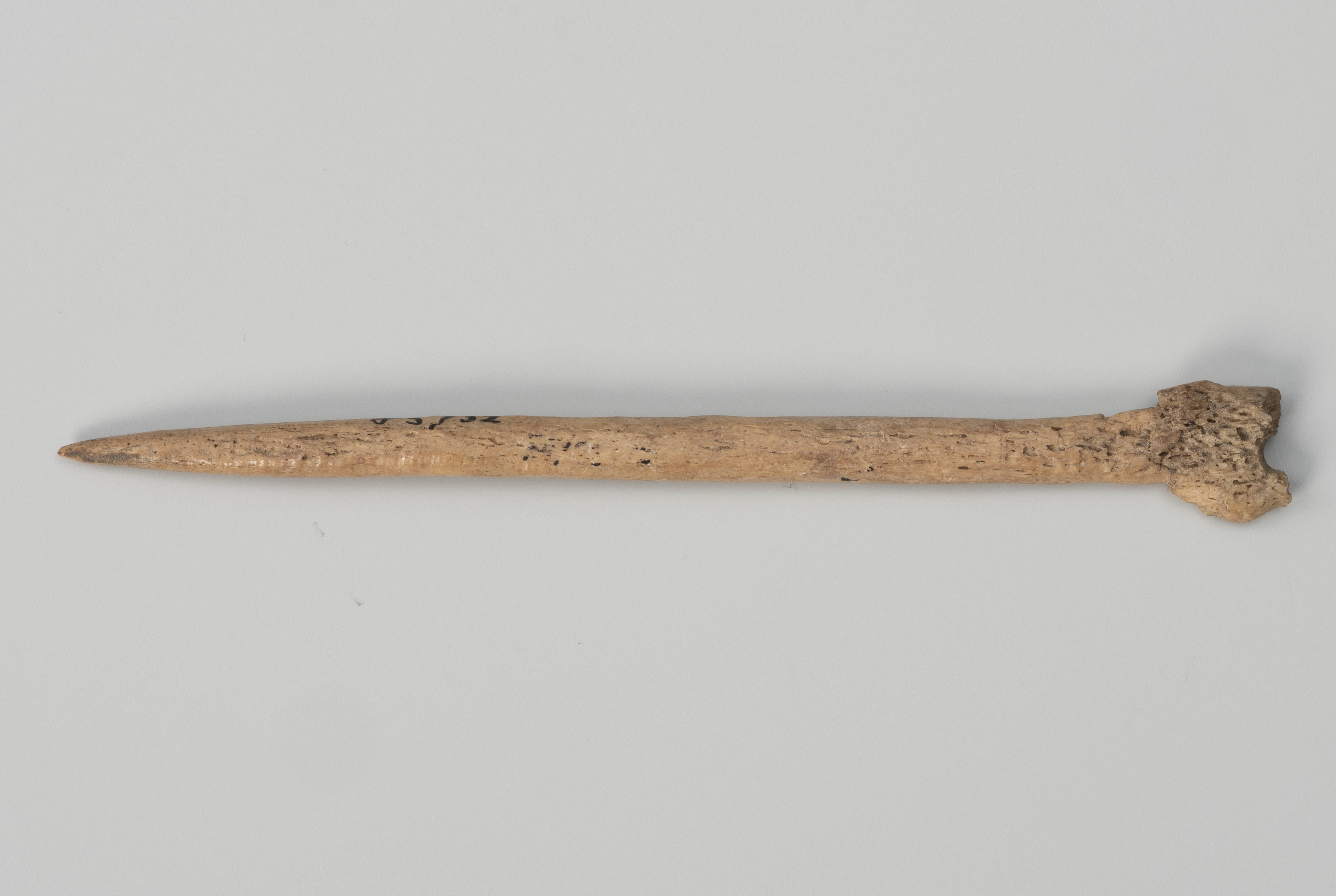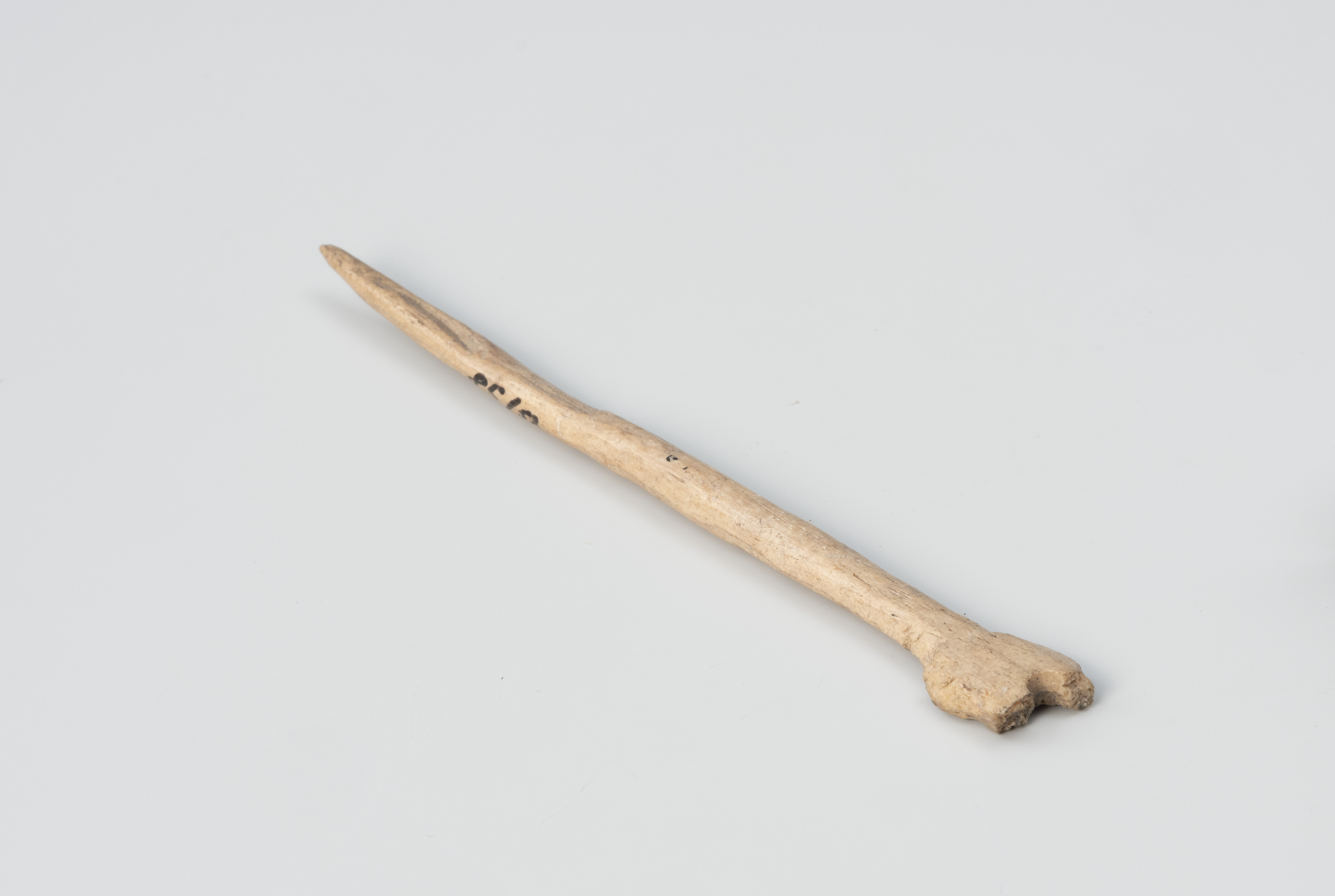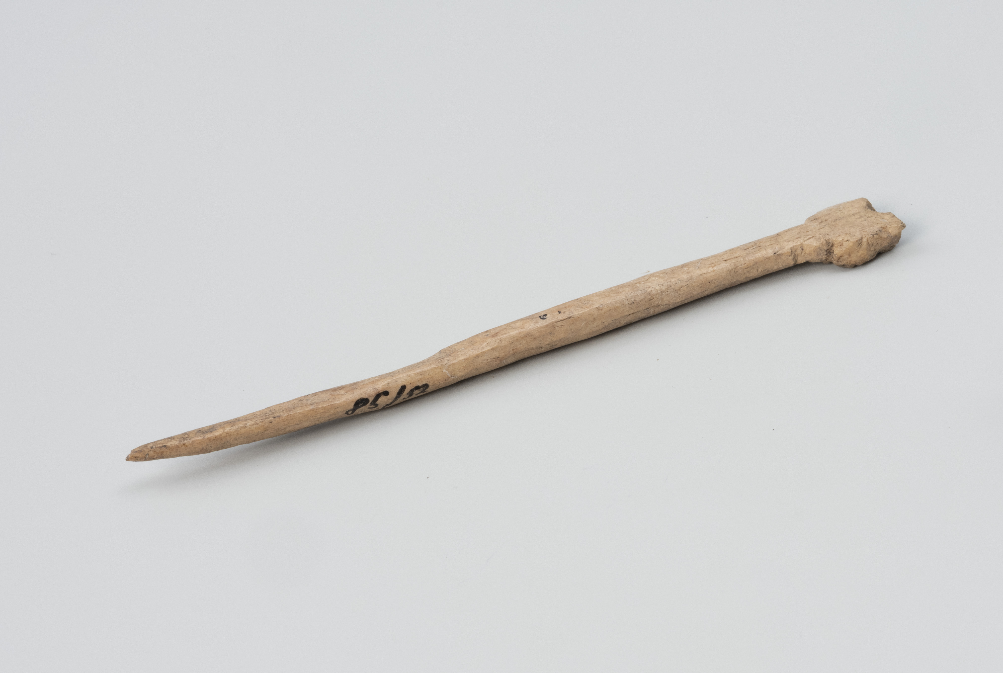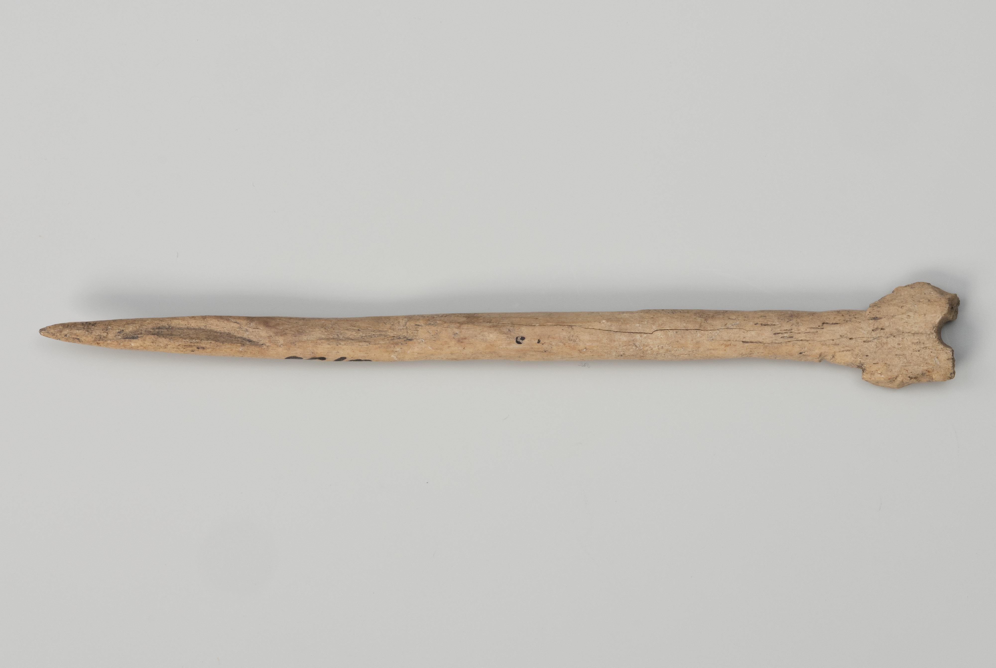Szpile kościane wytwarzano z fragmentów trzonów zwierzęcych kości długich, najczęściej zwierzyny hodowlanej, jak bydło czy konie, które były najłatwiej dostępnym surowcem. Wykorzystywano z reguły podłużne fragmenty, zewnętrznej tkanki kostnej nazywanej istotą zbitą. Po wewnętrznej stronie egzemplarza z Wolina zachowały się również pozostałości substancji gąbczastej, wypełniające nasady kości długich znajdujące się na ich końcach. Biorąc pod uwagę także nieregularności powierzchni, szczególnie górnej ozdobnej części, można przypuszczać, że prezentowaną szpilę wykonała osoba niewprawiona lub praca nie została ukończona.