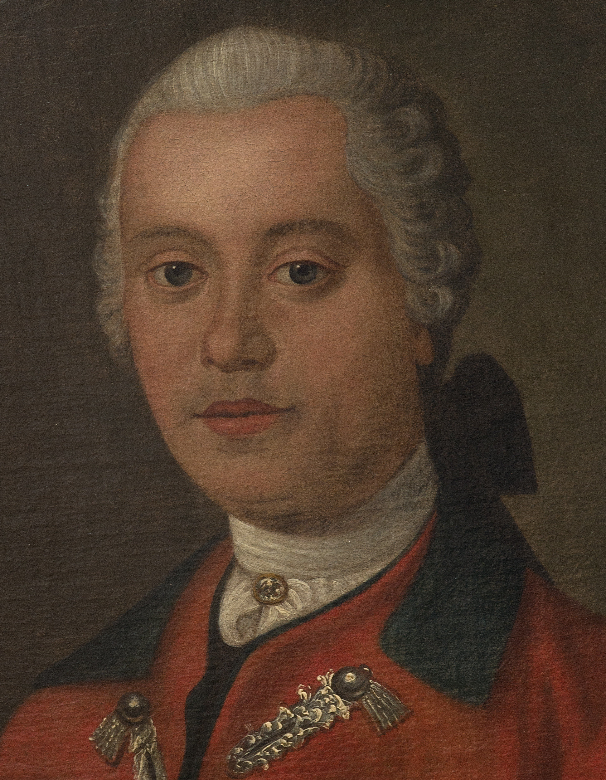 Na ciemnoszarym tle ukazano popiersie (zwrot postaci 3/4 w lewo) młodego mężczyzny w modnej pudrowanej peruce, związanej z tyłu czarną kokardą, w czerwonym fraku mundurowym z ciemnym kołnierzem i srebrnymi haftami przy guzikach i pętlicach. Wkoło szyi hrabia ma zawiązany biały krawat spięty ozdobnym brylantowym guzem. Na lewej piersi portretowanego przypięta gwiazda Orderu Orła Białego, jak pisze Krzysztof Filipow, najstarszego i najwyższego polskiego orderu „w dawnej i obecnej Rzeczypospolitej” (Order Orła Białego, Białystok 1995).