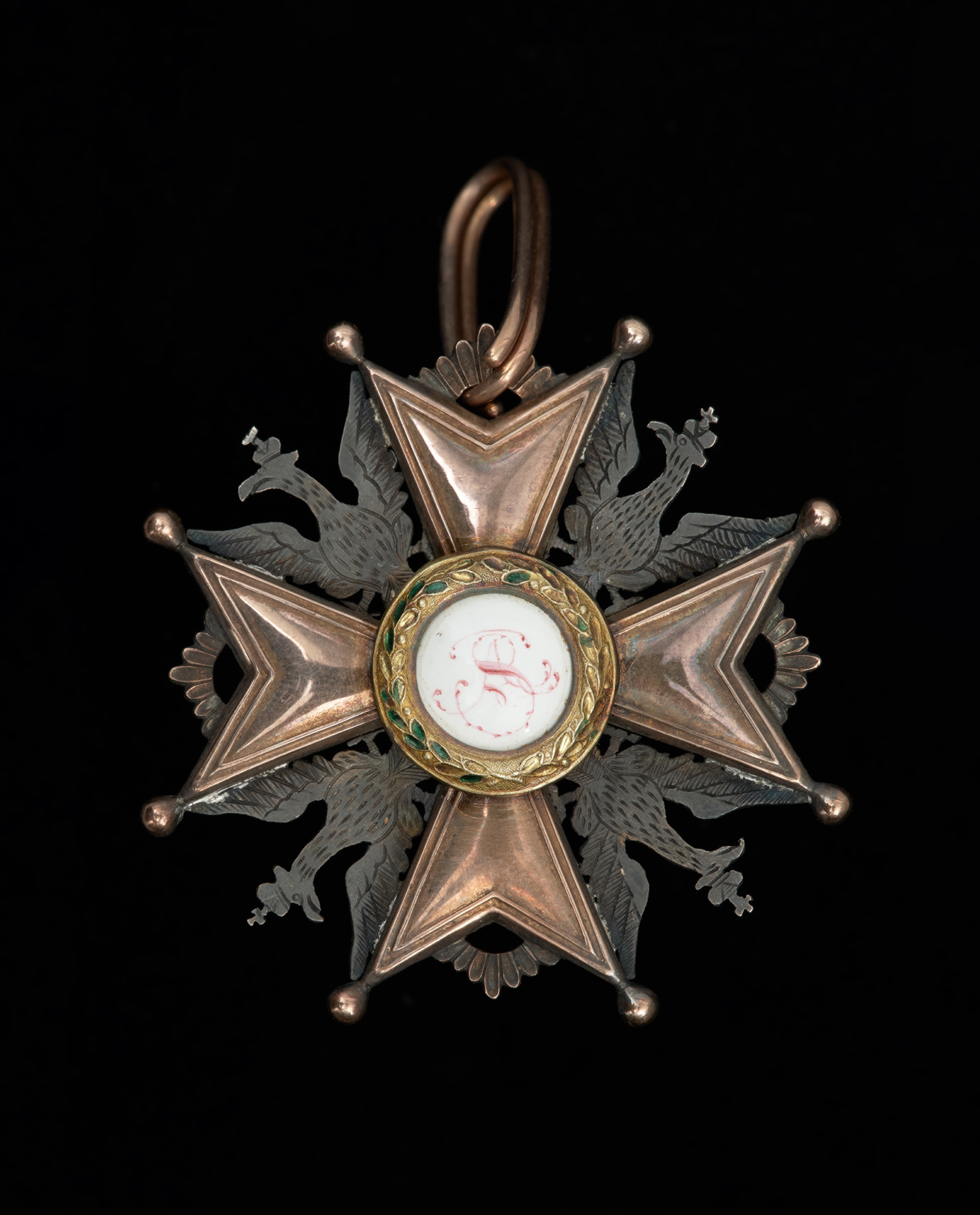 Prezentowany Order Świętego Stanisława I klasy należał do polskiego generała Franciszka Dzierżykraj–Morawskiego (1783–1861), poety, tłumacza, uczestnika wyprawy Napoleona na Moskwę, ministra wojny w czasie powstania listopadowego (1831). Morawski otrzymał to odznaczenie 25 czerwca 1829 roku z okazji koronacji cara Mikołaja I na króla Polski. Order ma formę krzyża maltańskiego z narożami zakończonymi kulkami. Między pokrytymi czerwoną emalią ramionami krzyża osadzono cztery srebrne orły. W tarczy środkowej obwiedzionej wieńcem laurowym na emalii namalowano postać świętego Stanisława w stroju biskupim, z pastorałem w ręku. Po obu stronach postaci umieszczono litery SS (Sanctus Stanislaus). Na odwrocie w okrągłej, biało emaliowanej tarczy otoczonej wieńcem laurowym, znajduje się stylizowany monogram królewski SAR (Stanislaus Augustus Rex). Order Świętego Stanisława I klasy noszony był na czerwonej wstędze zawiązanej na biodrze i przewieszonej z prawego ramienia do lewego boku. Wstęga była podstawowym, wizualnym wyróżnikiem odznaczenia.