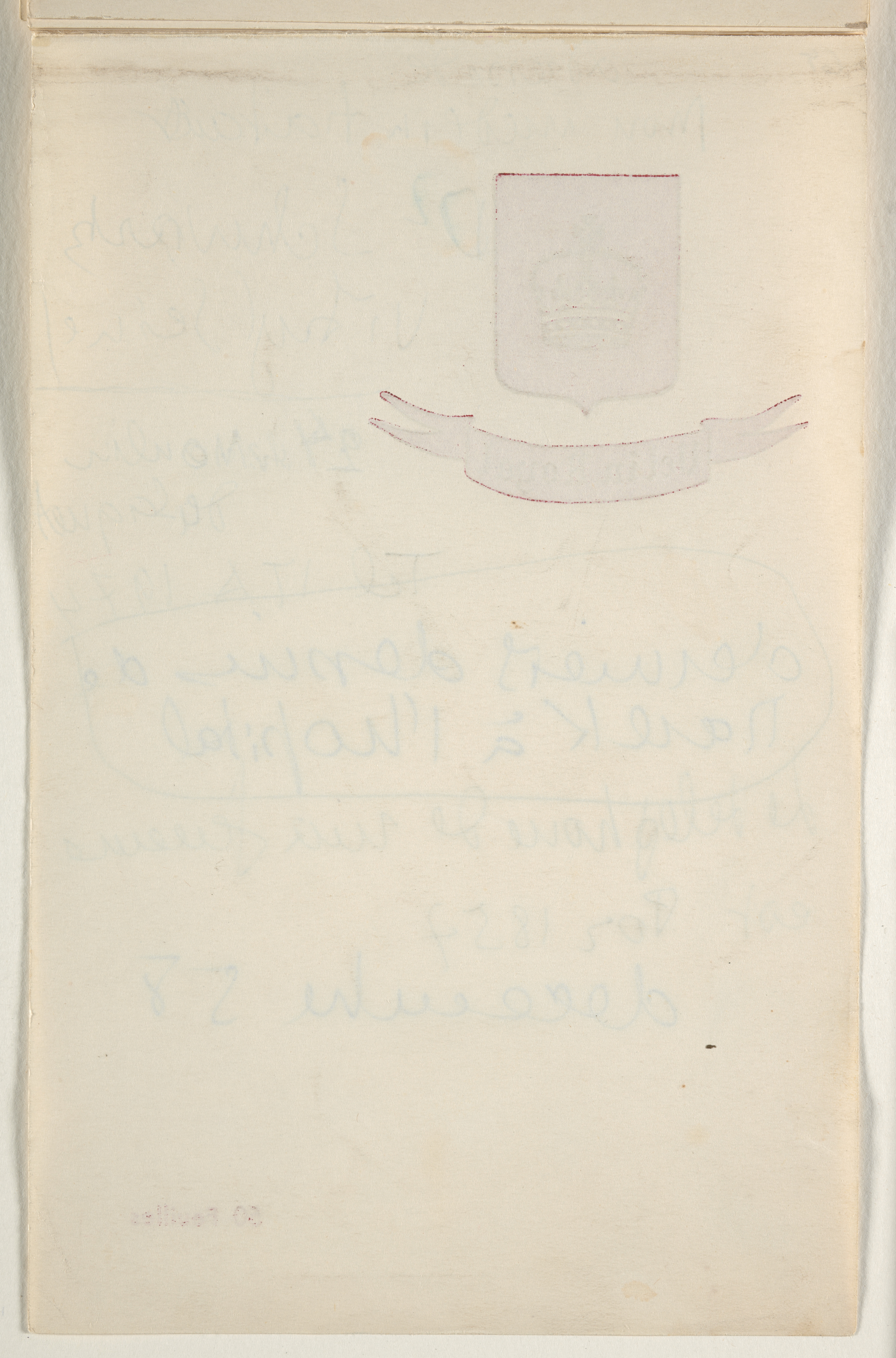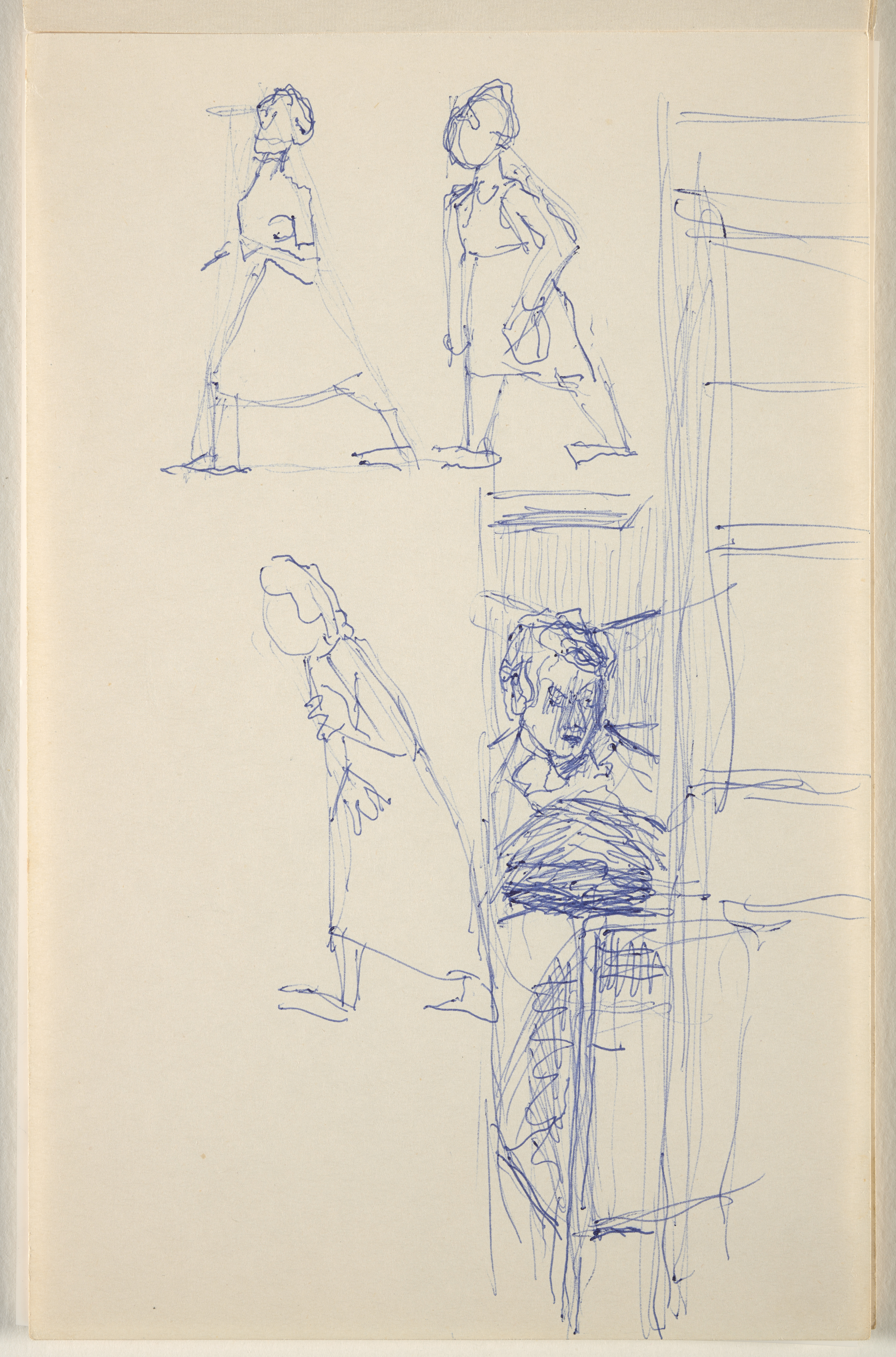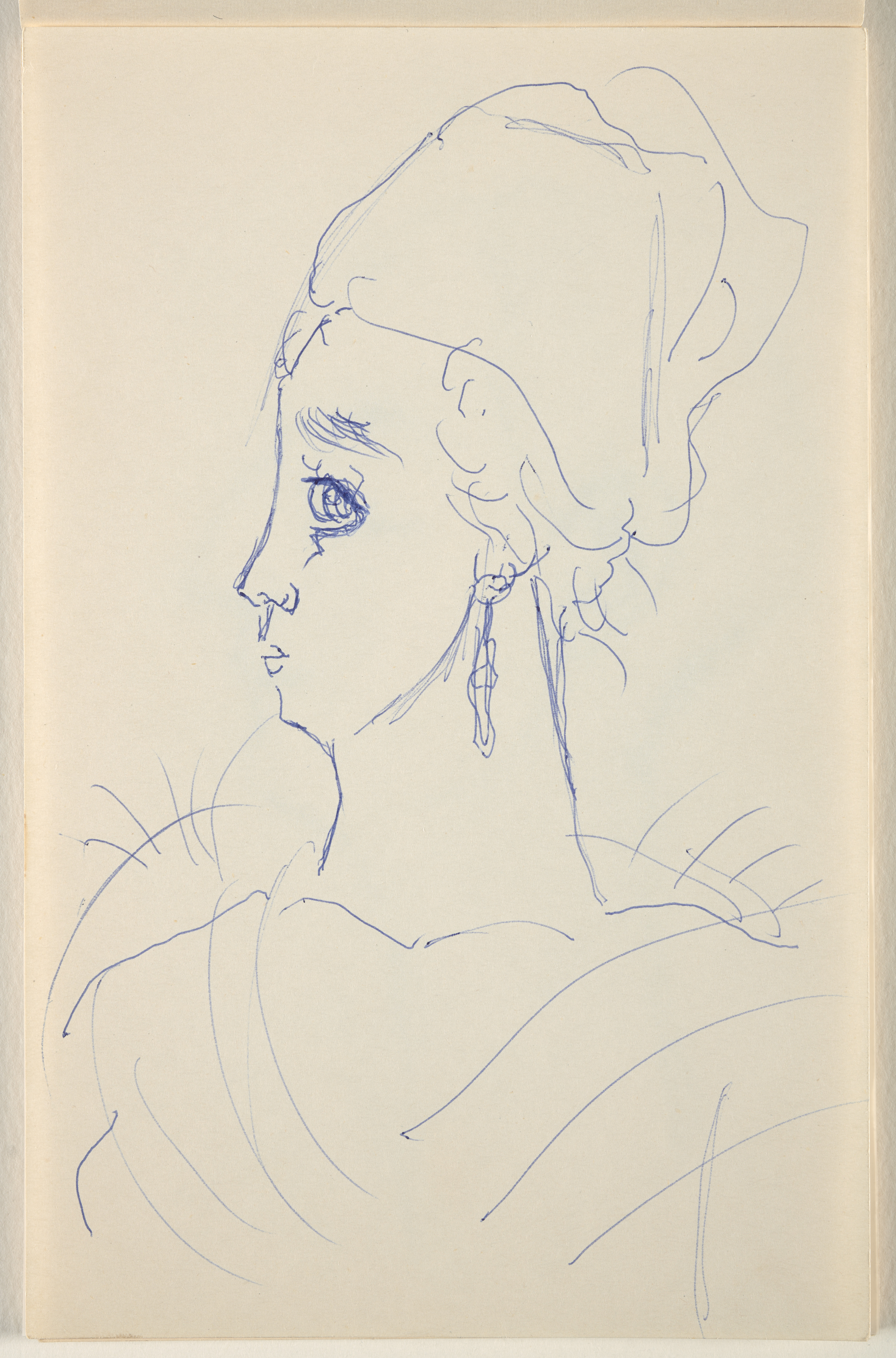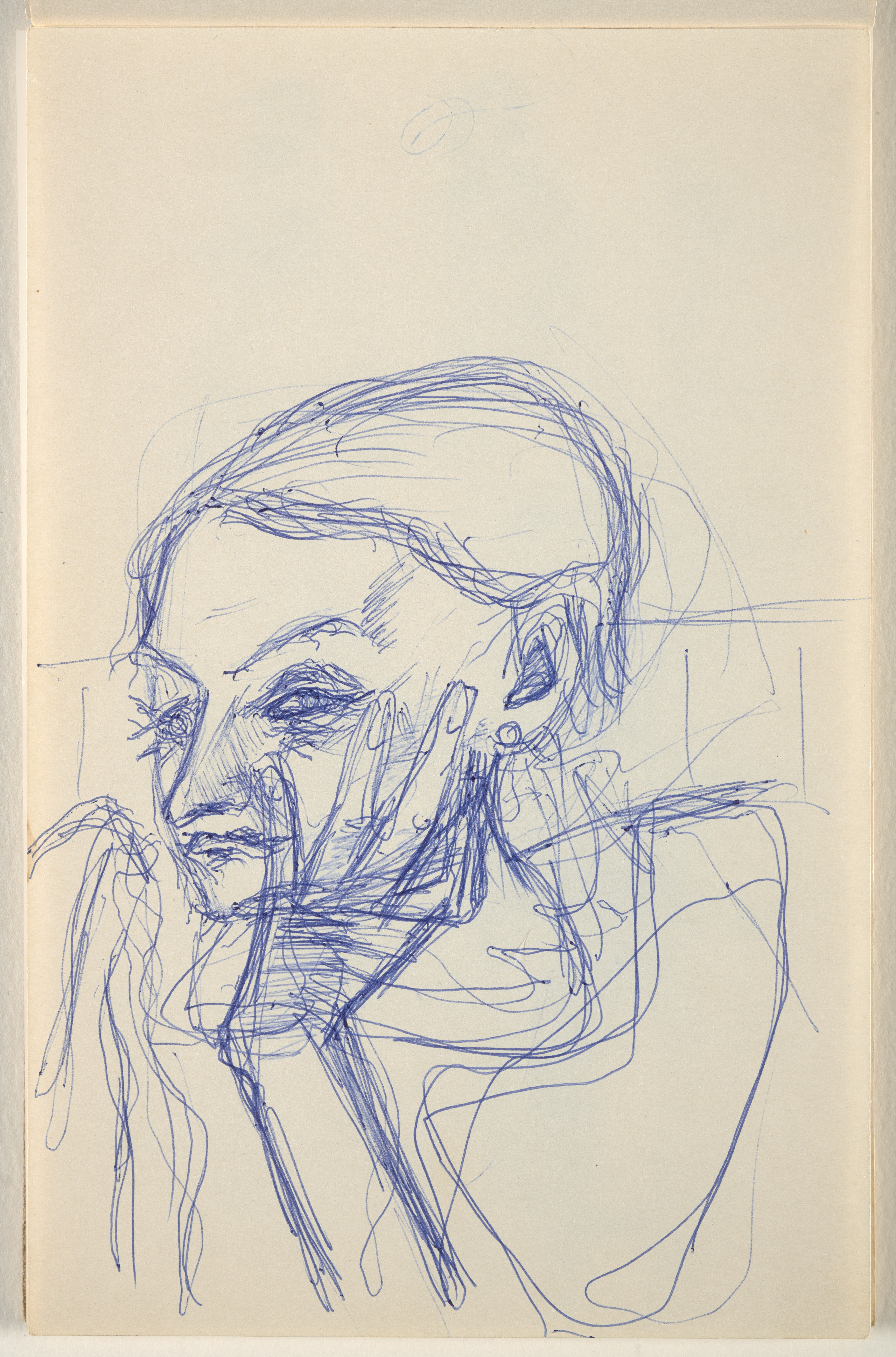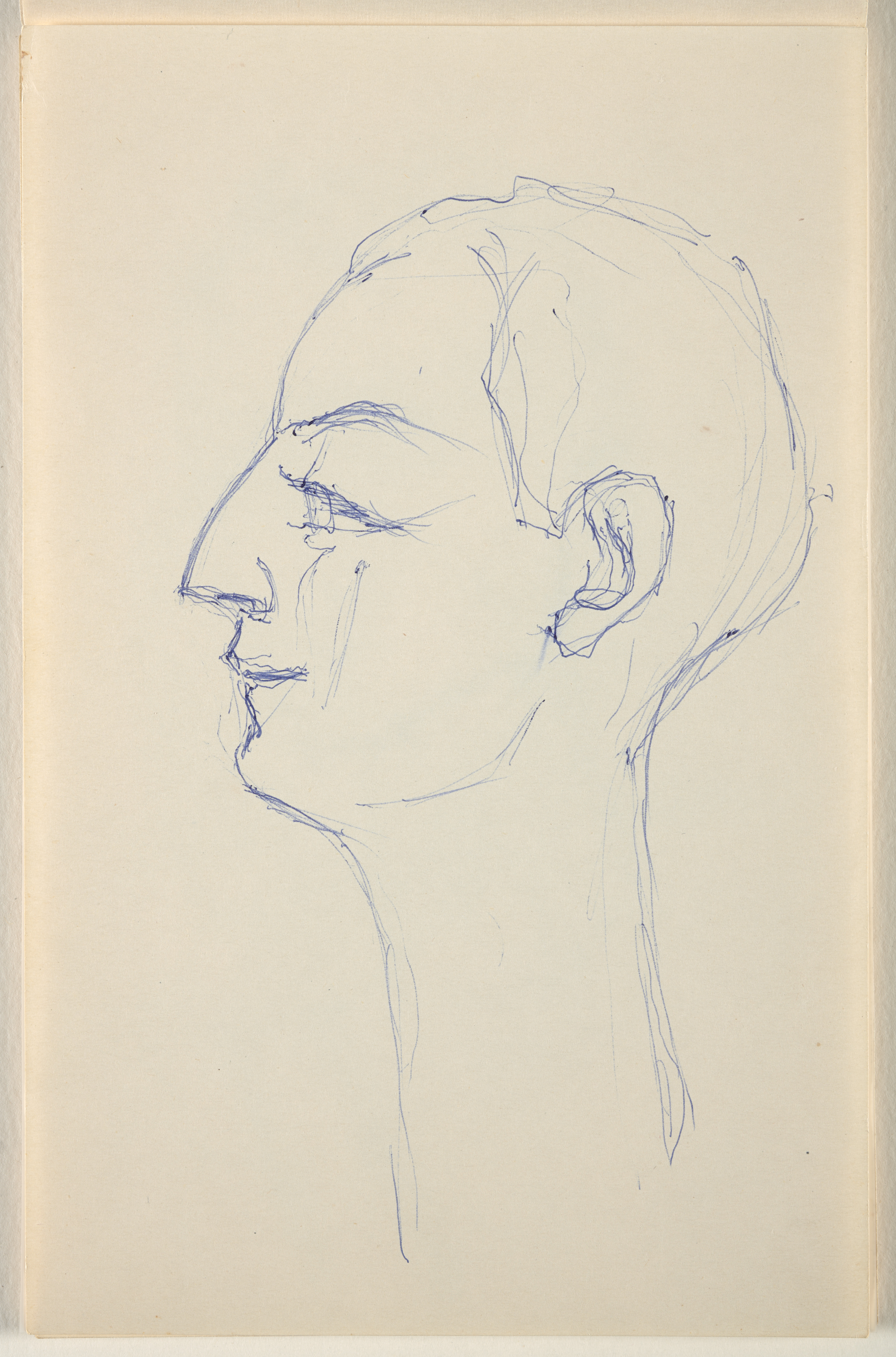 W środku na pojedynczych kartach znajdujemy 6 rysunków wykonanych niebieskim długopisem: autoportret artysty, portrety innych chorych, scenki ze szpitalnego dnia. I przejmującą prośbę słabnącego artysty, napisaną po francusku: „Demandez pardon à mes amis et dis eux de ne pas encore venir me voir car cela me fatigue” [Przeproście moich przyjaciół, ale niech nie przychodzą, ponieważ to mnie męczy].