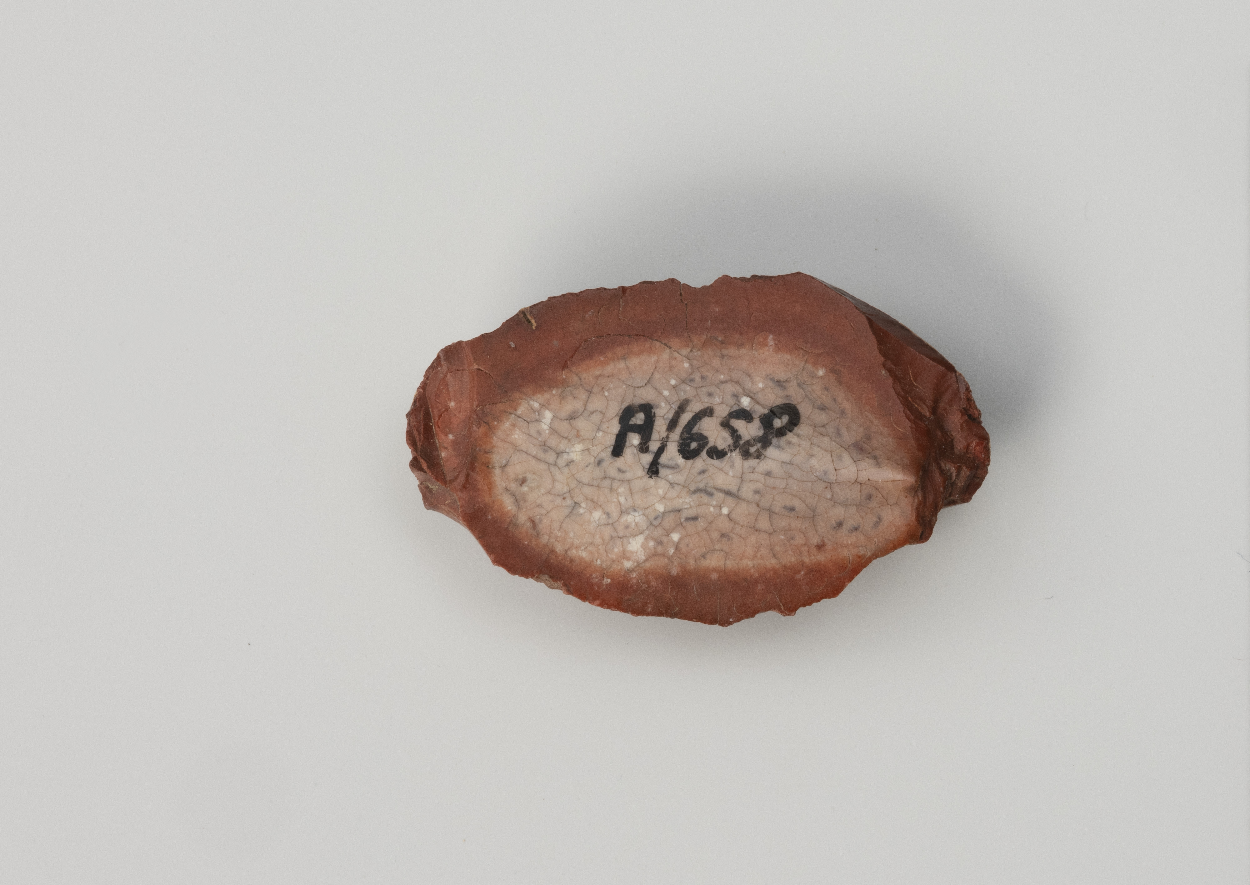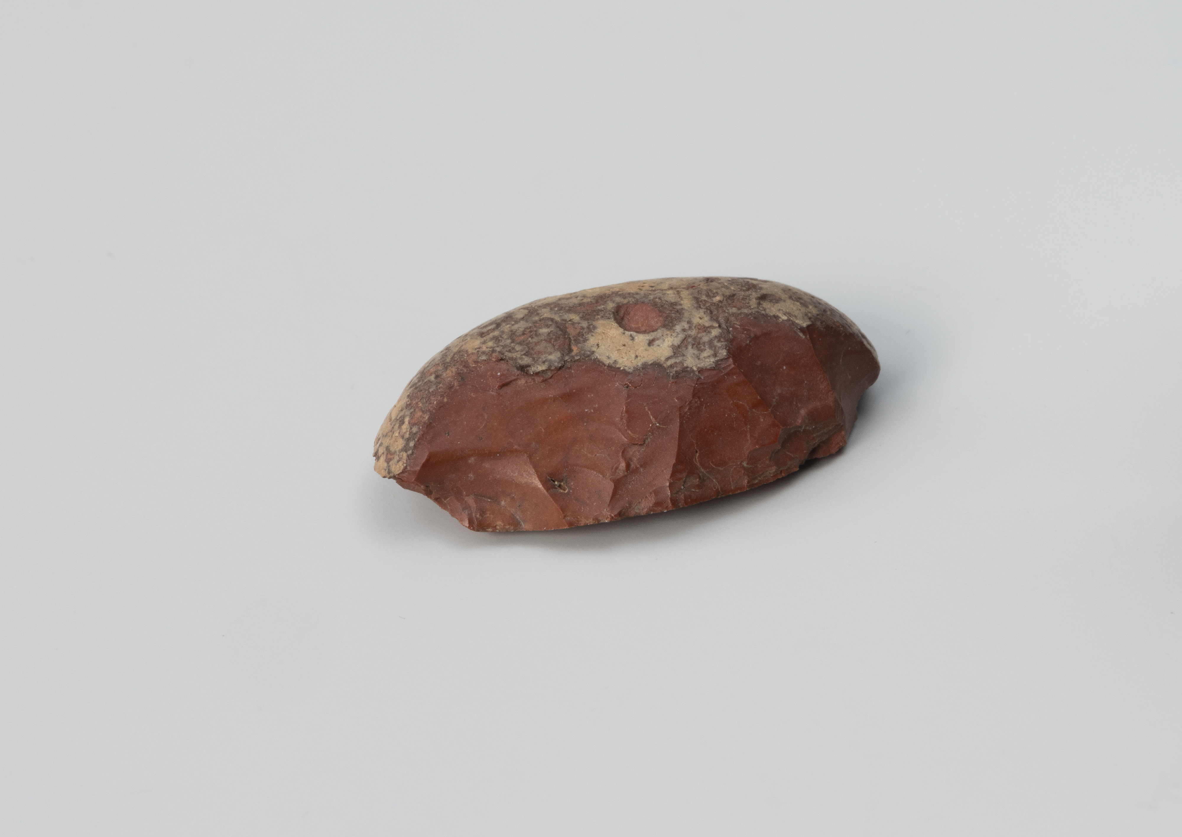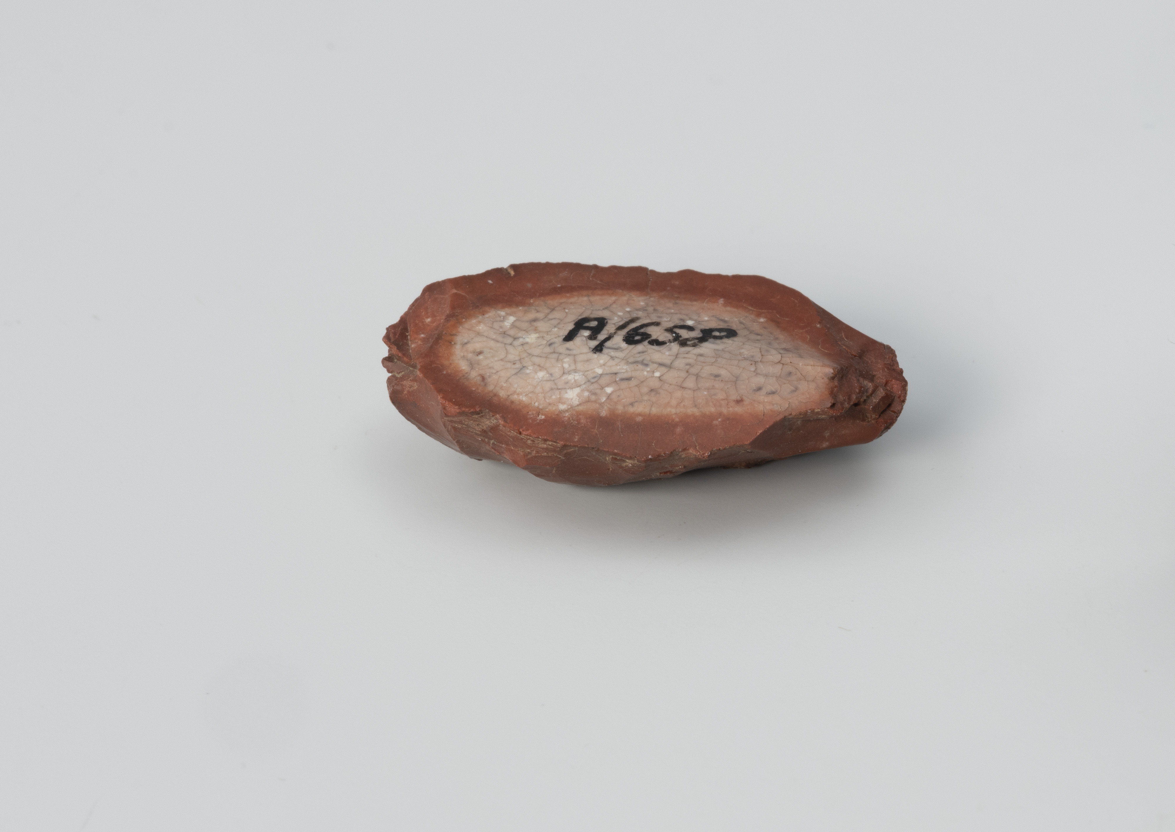 Ze względu na niewielkie rozmiary i często ziarnistą strukturę ich obróbka jest trudna, dlatego pradziejowi krzemieniarze często poddawali je przegrzaniu, co znacząco poprawiało ich właściwości. W odpowiedniej temperaturze krzemienie zmieniały kolor na ciemnopomarańczowy lub czerwony. Nie zatrzymanie tego procesu na czas skutkowało jednak zmianą barwy na biały, czego przykładem jest prezentowany zabytek, który, choć na zewnątrz pozostał czerwony, w środku jest biały.