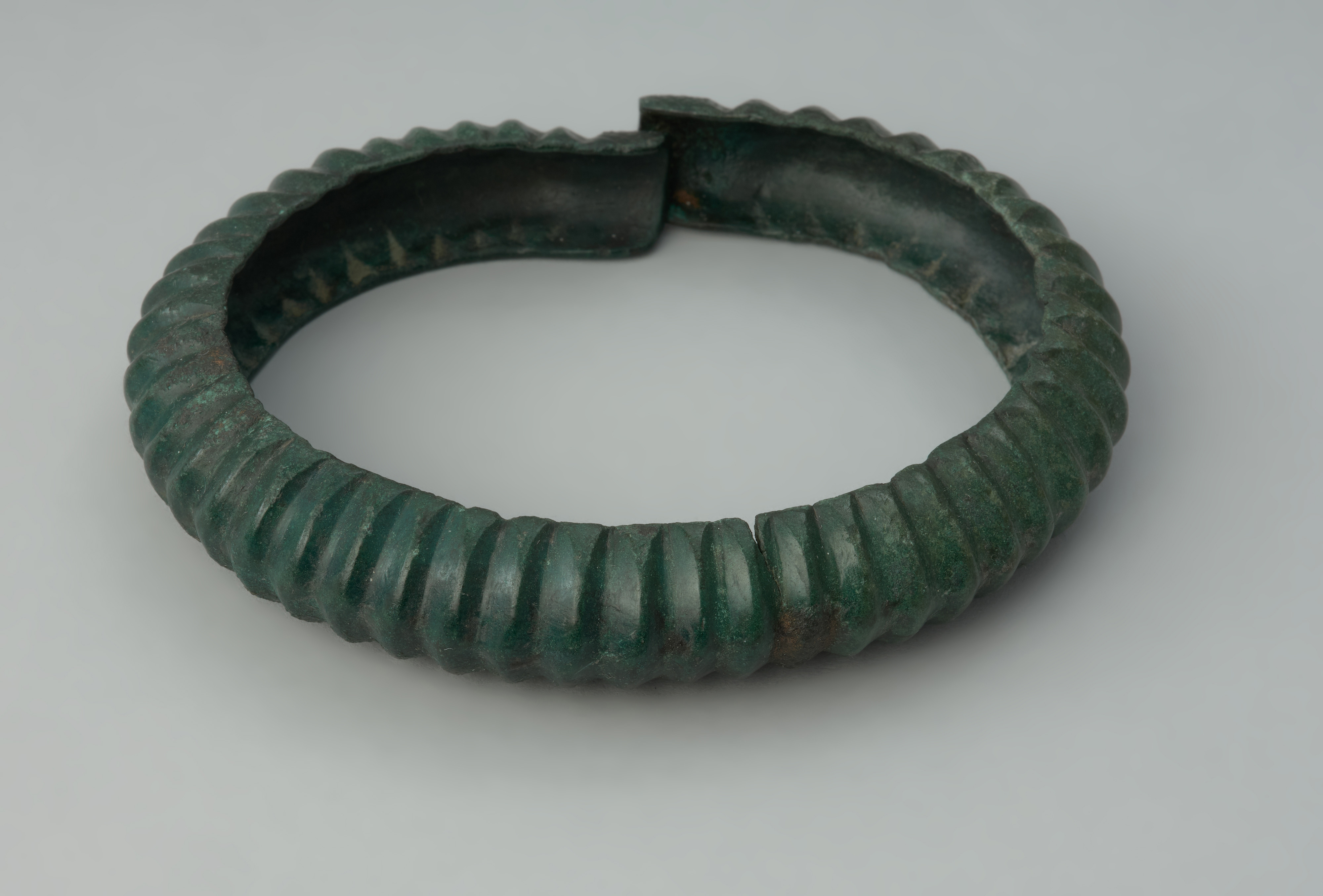 Bransoleta została wykonana z grubej brązowej blachy. Ma owalny kształt, a jej zachodzące lekko na siebie końce są ornamentowane motywem rytej kratki. Pozostałą powierzchnię pokrywa bardzo oryginalne zdobienie w postaci poprzecznego żebrowania. Tak znakomity plastyczny efekt wytwórcy uzyskali dzięki odlaniu bransolety w specjalnej formie. Ten typ ozdób jest rzadki na terenach Polski. Do tej pory odkryto tylko trzy egzemplarze w dwóch skarbach pomorskich i jednym z Wielkopolski. Bransoleta stanowi element skarbu złożonego z jeszcze jednej bransolety żebrowanej, trzech odmiennie zdobionych bransolet oraz czterech siekierek. Depozyt odkryto w 1906 roku przy kopaniu rowów fundamentowych na parceli właściciela tartaku Hermana Poratha. Wszystkie przedmioty leżały razem, bezpośrednio w ziemi, na głębokości około 0,5 m. Przekazano je do zbiorów szczecińskiego Towarzystwa Historii Pomorza i Starożytności. W Szczecinie przechowywane były do sierpnia 1944 roku, po czym wraz z innymi eksponatami o dużej wartości zostały ewakuowane w głąb Niemiec, co było podyktowane ochroną zasobów muzealnych przed zniszczeniem w trakcie nalotów alianckich na miasto oraz zapewne przed wojenną grabieżą. Do zbiorów szczecińskich depozyt powrócił dopiero w 2009 roku w ramach polsko-niemieckiej wymiany zabytków archeologicznych. Depozyt ze Storkowa, datowany na 1. połowę IV okresu epoki brązu (lata ok. 1100–1000 BC) wiąże się z bardzo wczesnym stadium osadnictwa kultury łużyckiej na Pomorzu. Był to niezwykle interesujący etap rozwojowy tej kultury z uwagi na przejściowy charakter. Mieszała się tu bowiem tradycja kultur mogiłowych, wznoszących kurhany i składających swoich zmarłych do ziemi niespalonych, z nowymi trendami kultur kręgu pól popielnicowych, preferujących zakładanie dużych cmentarzysk ciałopalnych.