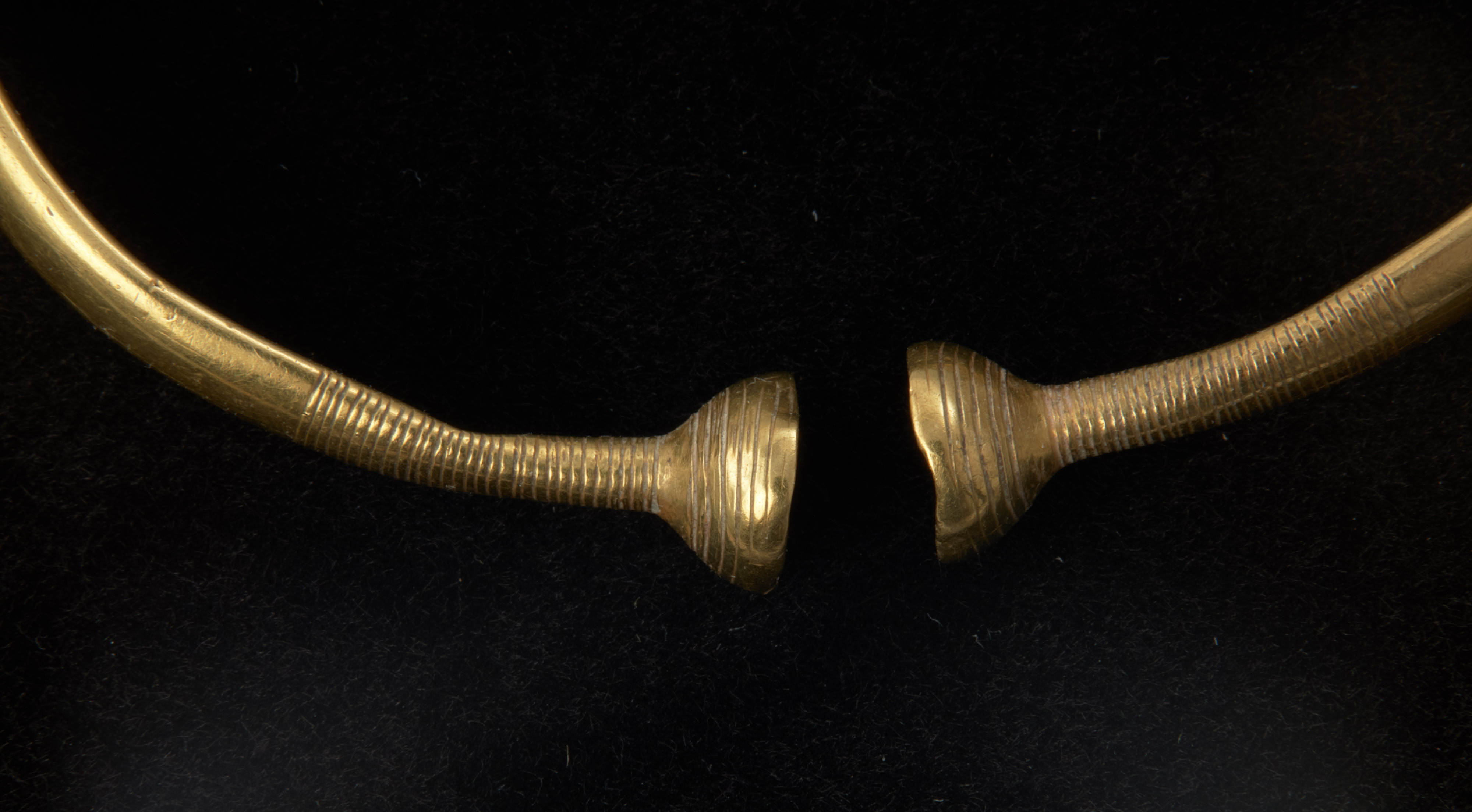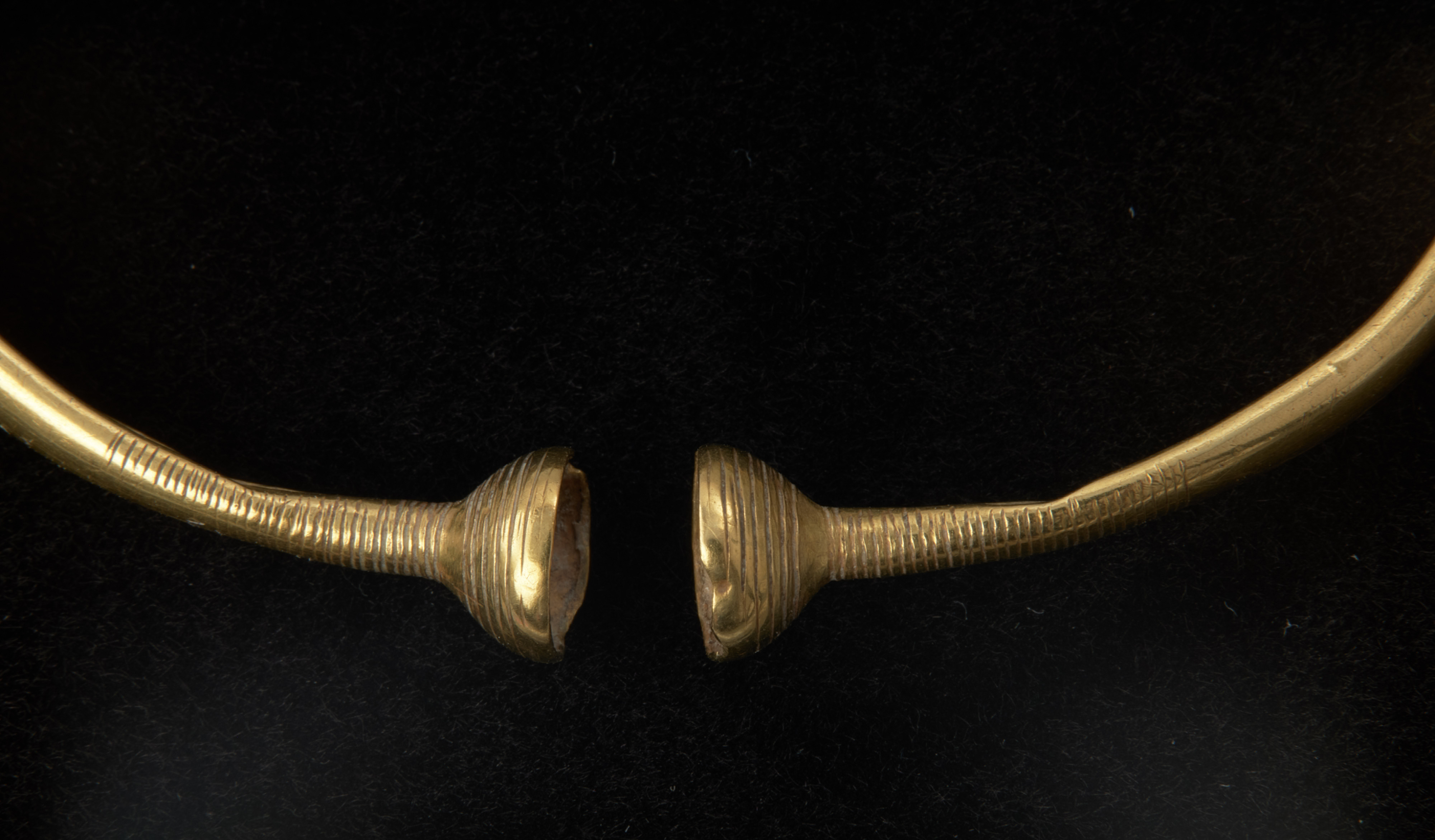Bransoleta wykonana jest ze stosunkowo cienkiej, złotej blaszki. Ten delikatny okaz zdobią grupy poprzecznych nacięć na kabłąku i dookolne ryty na efektownych tzw. pieczątkowych zakończeniach, przypominających niewielkie miseczki lub naparstki. Goldene Eidringe (pierścienie przysięgi) – tak w 1837 roku nazwał po raz pierwszy ten typ bransolet Christian Jürgensen Thomsen. Określenie to przyjęło się w fachowej literaturze. Obręcz pochodzi ze skarbu odkrytego podczas orki, prawdopodobnie około połowy XIX wieku. Składał się z trzech bransolet tego samego typu, które umieszczone były w glinianym naczyniu. Do zbiorów szczecińskiego Towarzystwa Historii i Starożytności Pomorza zakupiono go od właściciela majątku Drehera z Orla. Pod koniec drugiej wojny światowej skarb został ewakuowany na zachód Niemiec. Do Szczecina bransolety powróciły w 2009 roku w efekcie polsko-niemieckiej wymiany dawnych zbiorów archeologicznych. Ozdoby z pieczątkowatymi końcami wywodzą się z kultury nordyjskiej i są charakterystyczne w późnym okresie epoki brązu, głównie dla obszaru południowej Skandynawii (najwięcej znajduje się na wyspach duńskich) oraz strefy meklembursko-brandenbursko-pomorskiej. Na Pomorzu, jeszcze przed 1945 rokiem, odnotowano około 30 bransolet typu Eidringe, wśród których aż 24 wykonano ze złota. Do dziś przetrwały trzy kruszcowe okazy z Orla oraz jeden z Lęborka, obydwa skarby przechowywane są w Muzeum Narodowym w Szczecinie. Pojedyncze złote bransolety mogą znajdować się także w muzeum w Berlinie.