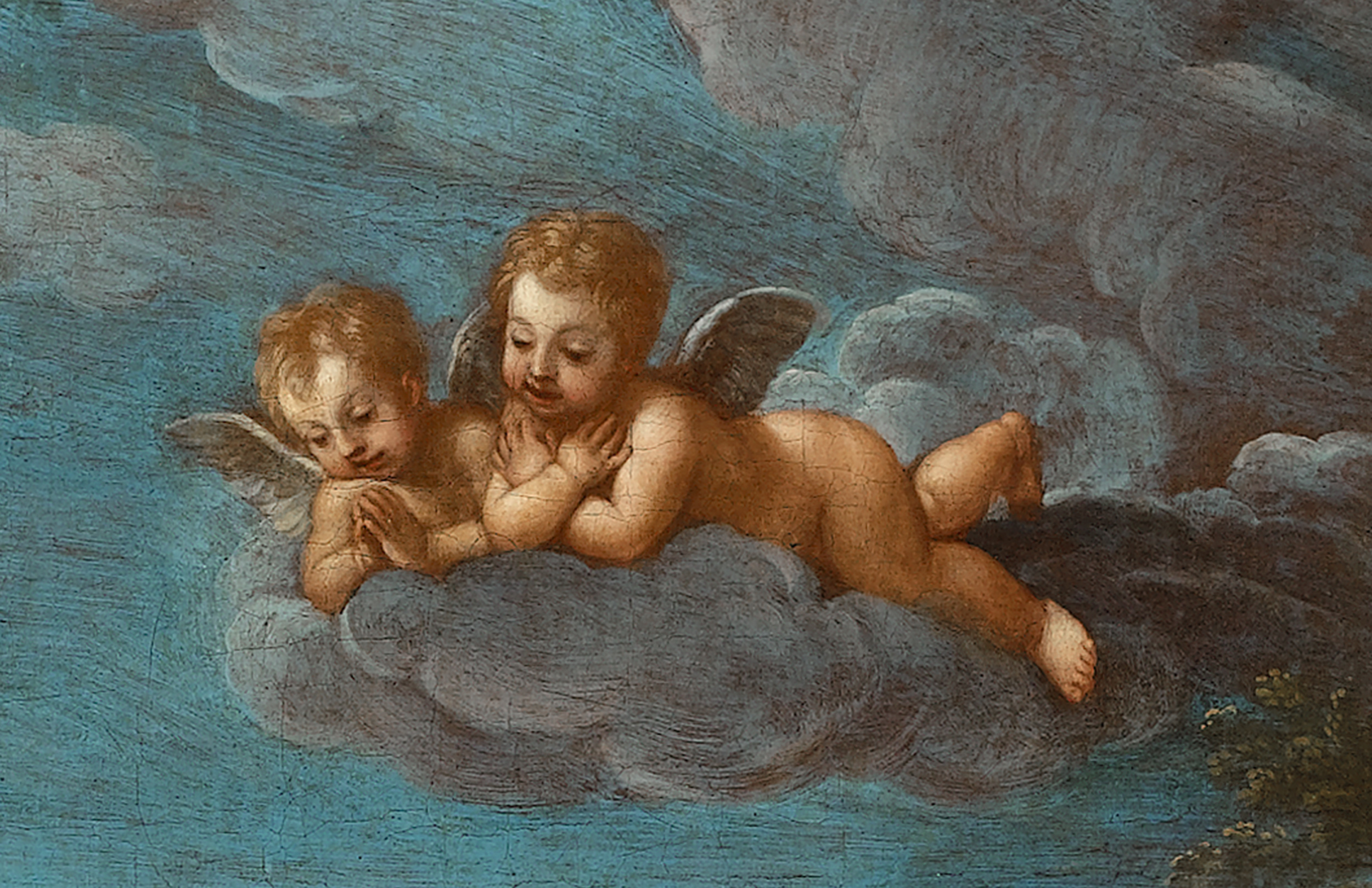 Obraz pochodzi z kolekcji Stanisława Kostki Potockiego, nabyty został w 1808 r. Malarstwo Albaniego Potocki obserwował zresztą ze szczególną uwagą od pierwszych swych podróży. Na kartach Dziennika podróży do Italii w 1779 roku wymienia jego nazwisko dwudziestokrotnie. Tam też opisuje z podziwem kolekcję obrazów zgromadzoną w Palazzo Sampieri w Bolonii. Z obrazami Albaniego wiąże się pewien niepokój dotyczący ich transportu, gdyż zaniepokojony pisze on do zony: „W paczce, którą Spensberger wysłał z Wiednia zamiast dwóch, jest tylko jeden obraz (Albani?)”.Wydaje się jednak, że sprawy przybrały dobry obrót, gdyż dziś w Wilanowie mamy dwa obrazy łączone z nazwiskiem artysty.
