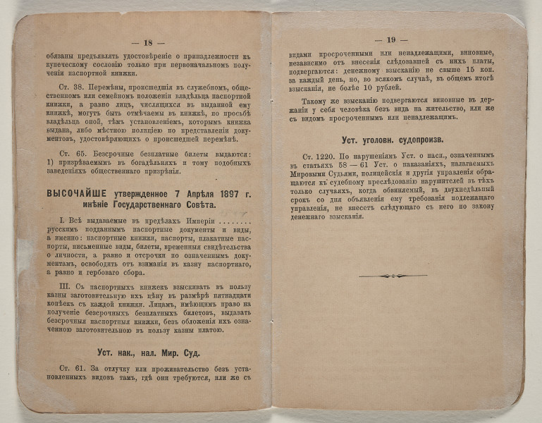 Prawo [Położenie – rodzaj aktu prawnego w Imperium Rosyjskim] o dowodach na zamieszkanie […] Najwyżej zatwierdzone 7 kwietnia 1897 r. zdanie Rady Państwa. […]