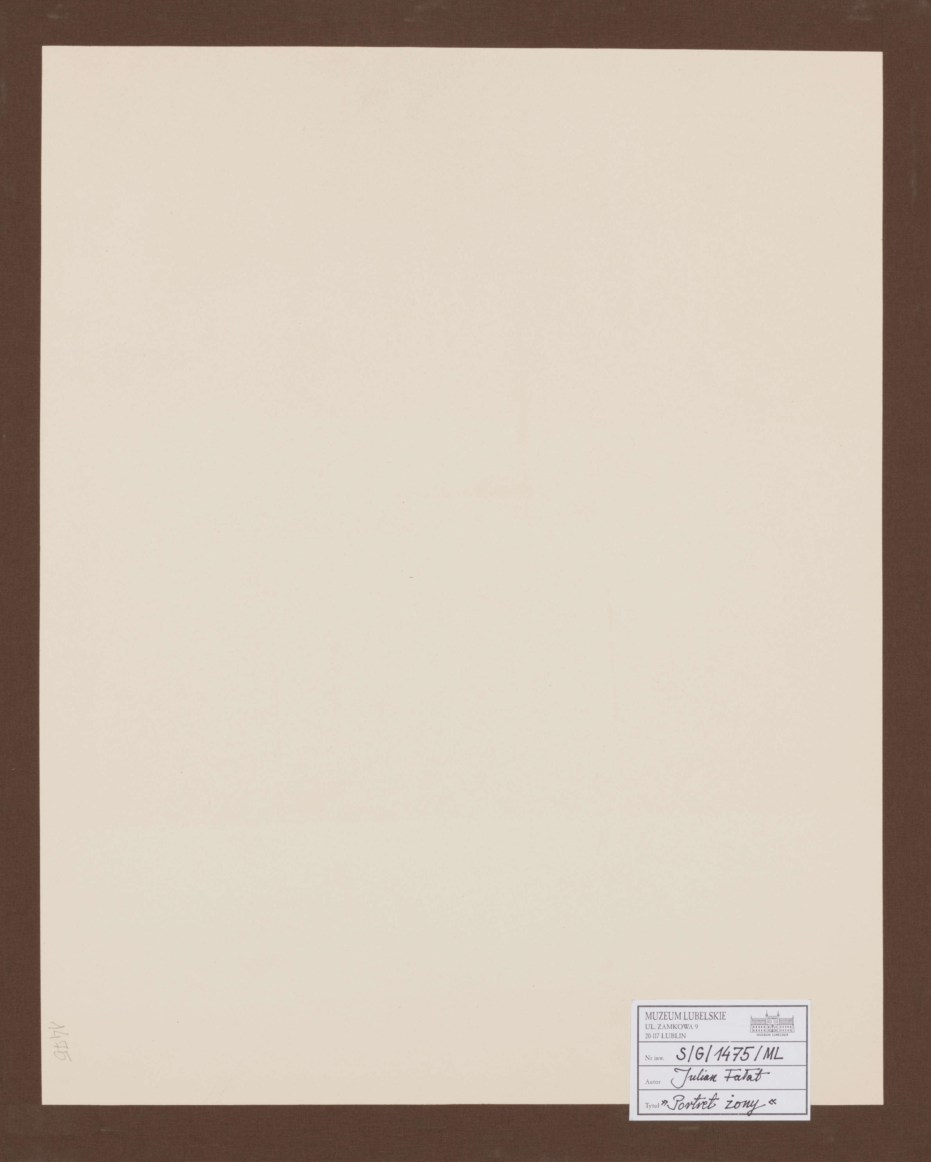 W portrecie żony Fałat zawarł zarówno emocjonalny stosunek do bliskiej osoby, jak i warsztatowe umiejętności oraz nowe poszukiwania artystyczne. Studium portretowanej osoby zostało zaplanowane w niekonwencjonalnej pozie. Kobieta, oparta ramieniem o tył fotela, odwraca się w stronę widza. Jej twarz jest ukazana w zadumie, spogląda w dal. Fałat połączył dynamikę przedstawienia, wykreśloną ukośnym układem oparcia fotela, z rysującym się zamyśleniem na twarzy modelki. Sposób plastycznego opracowania polegał na rozluźnieniu sceny, przełamaniu frontalności portretu, a także pospiesznym, niejako improwizowanym sposobie malowania akwarelą, tworzącą przezroczyste, przenikające się warstwy plam barwnych. Artysta zarazem rozjaśnił najbardziej wymowne obszary porteru – twarz, układ dłoni, dobitnie wyłonił spojrzenie. W swoim studium portretowym adaptował rozwiązania impresjonistów, związane ze swobodnym operowaniem plamą barwną, ale także sięgnął do repertuaru sztuki japońskiej, która fascynowała jego pokolenie – posłużył się wąskim kadrem, delikatnością plamy barwnej, kształtując subtelny, czuły portret bliskiej osoby.