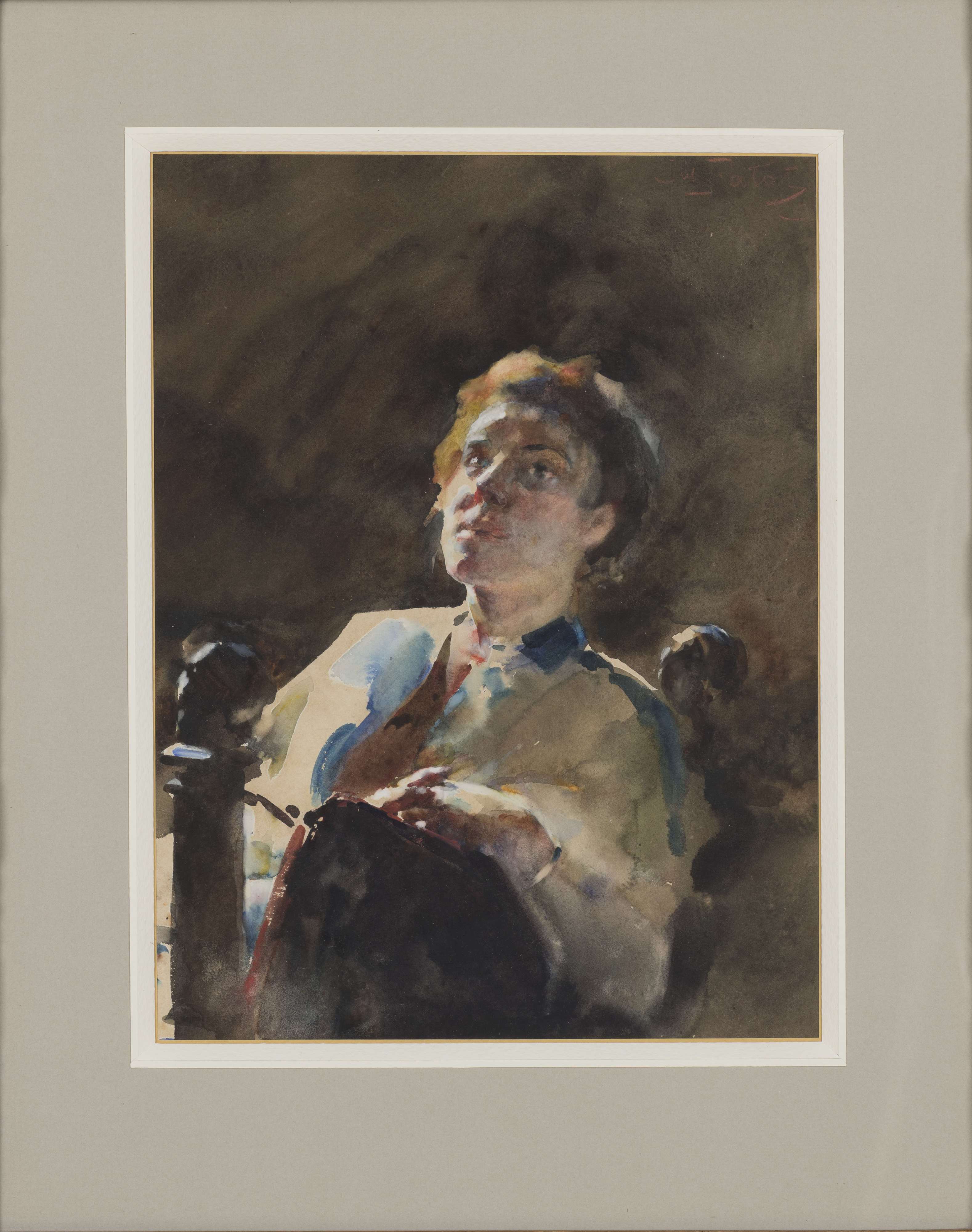 Ważną częścią dorobku artystycznego Juliana Fałata była mistrzowsko opanowana przez niego technika akwareli. Artysta był jednym z najbardziej radykalnych reformatorów krakowskiej Szkoły Sztuk Pięknych, która pod jego kierownictwem przyjęła status Akademii Sztuk Pięknych. W swoim programie dydaktycznym i artystycznym odszedł od tradycyjnej akademickiej hierarchii tematów, eksponując samodzielną rolę pejzażu i osobistych studiów portretowych. W tej konwencji powstał portret żony artysty, Luizy Comello Stuckenfeld, młodej Włoszki spokrewnionej z Habsburgami, która poślubiła Fałata w 1900 roku w Kętach. Miała wtedy dwadzieścia jeden lat, on czterdzieści siedem.