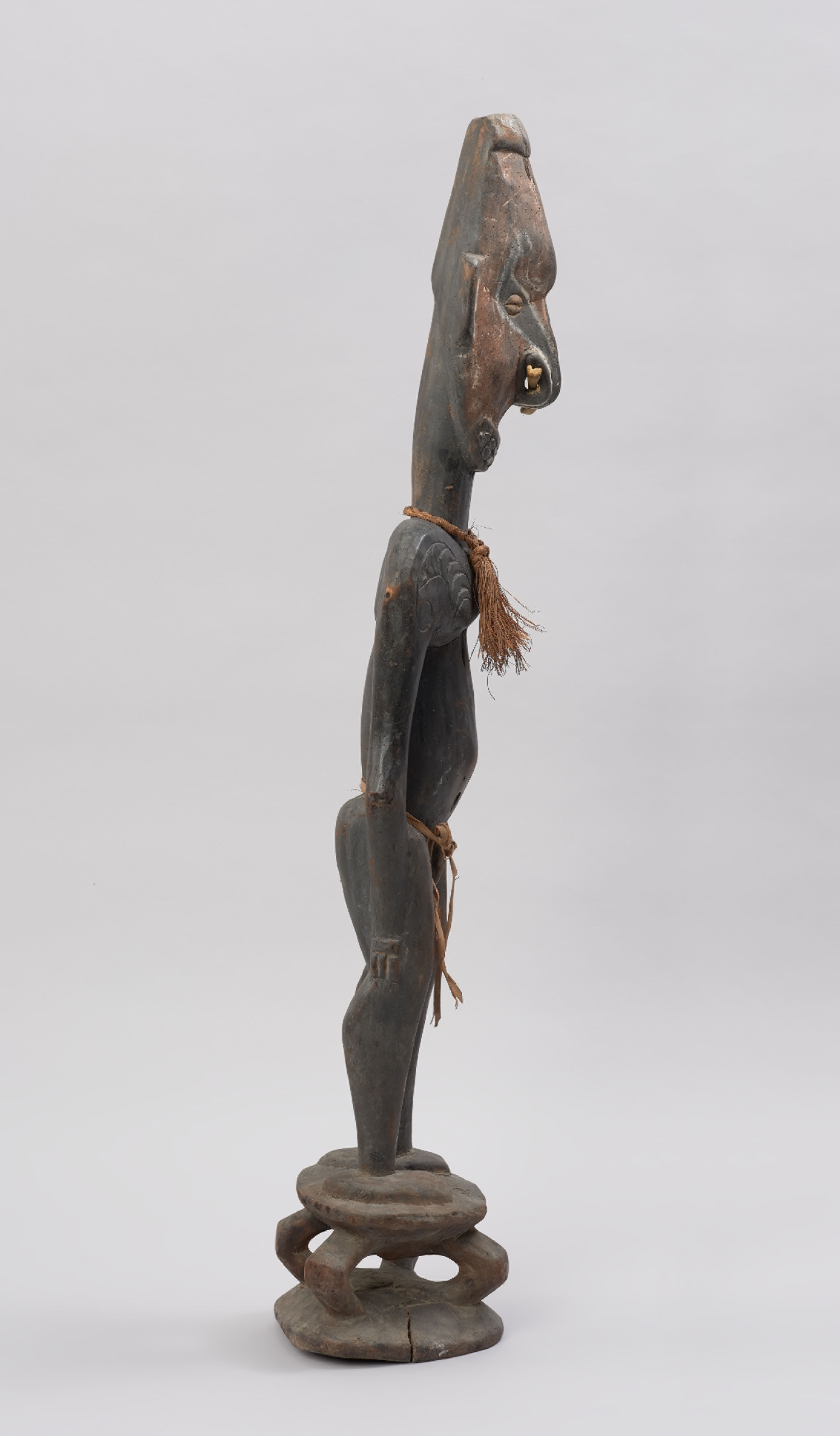 Prezentowaną figurę przodka wyrzeźbiono w dorzeczu Sepiku, w regionie zwanym Sepikiem Środkowym, gdzie rzeźba jest najbardziej popularną formą twórczości artystycznej. Rzemiosło to związane jest głównie z produkcją przedmiotów kultowych, które wykonują wyłącznie wtajemniczeni mężczyźni. Muzeum Narodowe w Szczecinie zakupiło rzeźbę w 1995 roku od małżeństwa etnologów Moniki i Mieczysława Strzechowskich, którzy tak opisują sztukę tego regionu: tu niemal każda wioska stworzyła własny, oryginalny styl, który jednak pozostaje w ramach pewnej wspólnej konwencji (…) gdzie podstawowym modelem zawsze jest człowiek. Duża głowa sprawia niekiedy wrażenie płaskiego talerza, kiedy indziej jest nienaturalnie wydłużona. Oczy przeważnie okrągłe (…) często inkrustowane muszlami. Nosy krótkie kotwicowe, z wyraźnie zaznaczonymi nozdrzami. Rzeźby przedstawiające przodków w sztuce papuaskiej zazwyczaj mają nieproporcjonalnie duże głowy w stosunku do reszty ciała, które często wydaje się być przestawione bardzo schematycznie. Według papuaskich artystów głowa symbolizuje siły duchowe człowieka, dlatego jest tak silnie akcentowana. Wierzono bowiem, iż koncentrujące się w czaszce człowieka siły, które uwalniane są w momencie śmierci, zapewnią dobrobyt i powodzenie całej społeczności. Z wierzeń tych wyrasta znany w całej Melanezji kult czaszek. Aby nie utracić cennych mocy kultowych czaszek wykonywano szereg zabiegów zabezpieczających. Uważano bowiem, że duchy przodków nie mogą mieszkać w starych i uszkodzonych czaszkach. Rozpadające się czaszki trzeba było zastąpić nowymi „pojemnikami”, zazwyczaj drewnianymi lub maskami. Dusza przodka, która po śmierci zamieszkiwała w czaszce przenosiła się do drewnianego wizerunku, który automatycznie stawał się potężnym obiektem kultowym. Do zastępowania czaszek rzeźbami i maskami przyczyniły się również władze kolonialne i misyjne, które wprowadziły na Nowej Gwinei europejskie praktyki pochówku zmarłych i zakazały wykorzystywania ich głów.