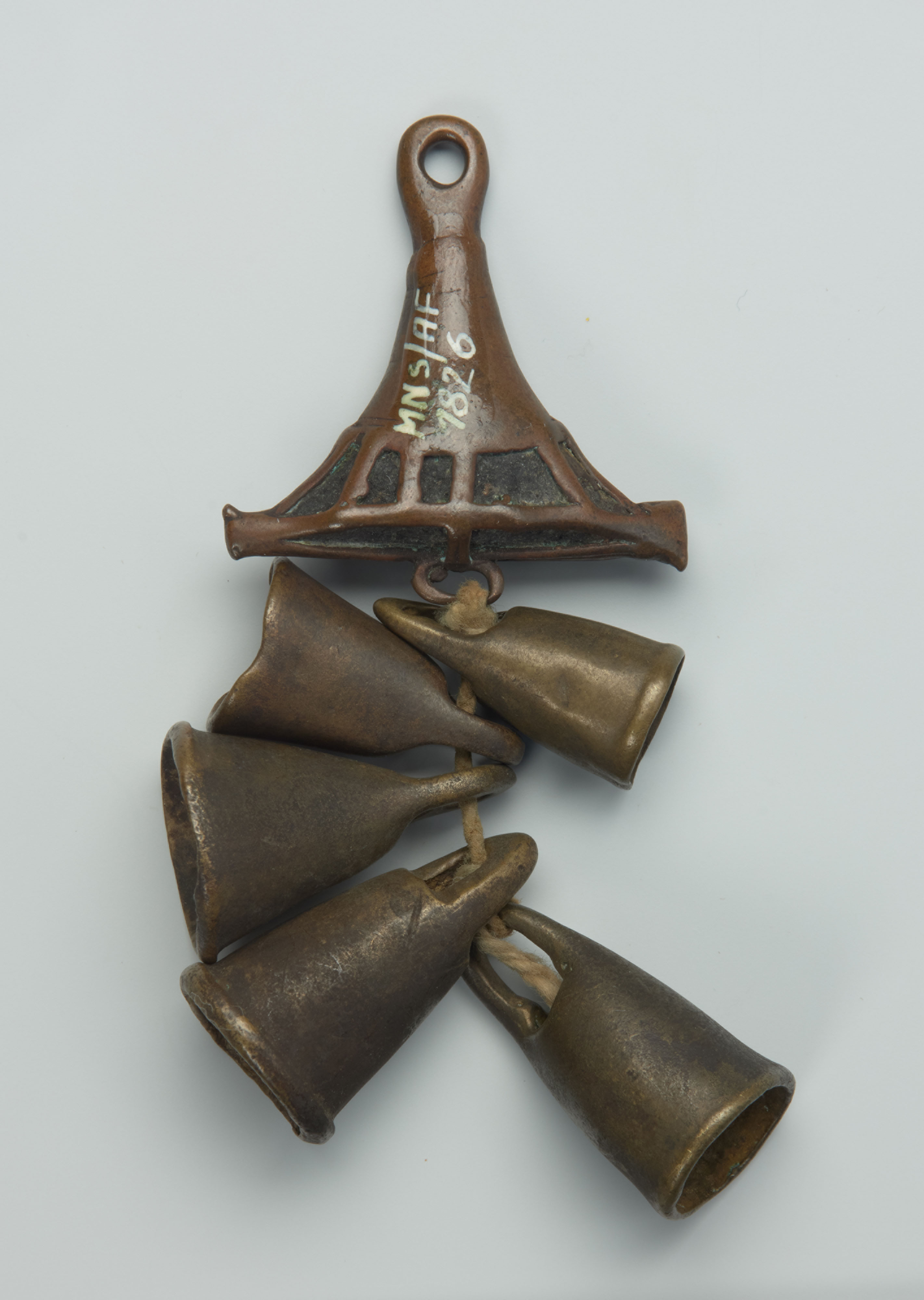 Prezentowany przedmiot kształtem przypomina wisiorek, do którego przyczepiono dzwoneczki. Dogonowie uważają go za obiekt tellemski. Został odlany z brązu metodą na wosk tracony. Artysta najpierw wykonuje woskowy prototyp wyrobu, który następnie oblepia gliną i po wyschnięciu wypala w piecu. Po wystudzeniu pozostaje gliniana, pusta forma, którą wypełnia płynnym metalem. Wyrób jest gotowy po zastygnięciu metalu i usunięciu gliny.