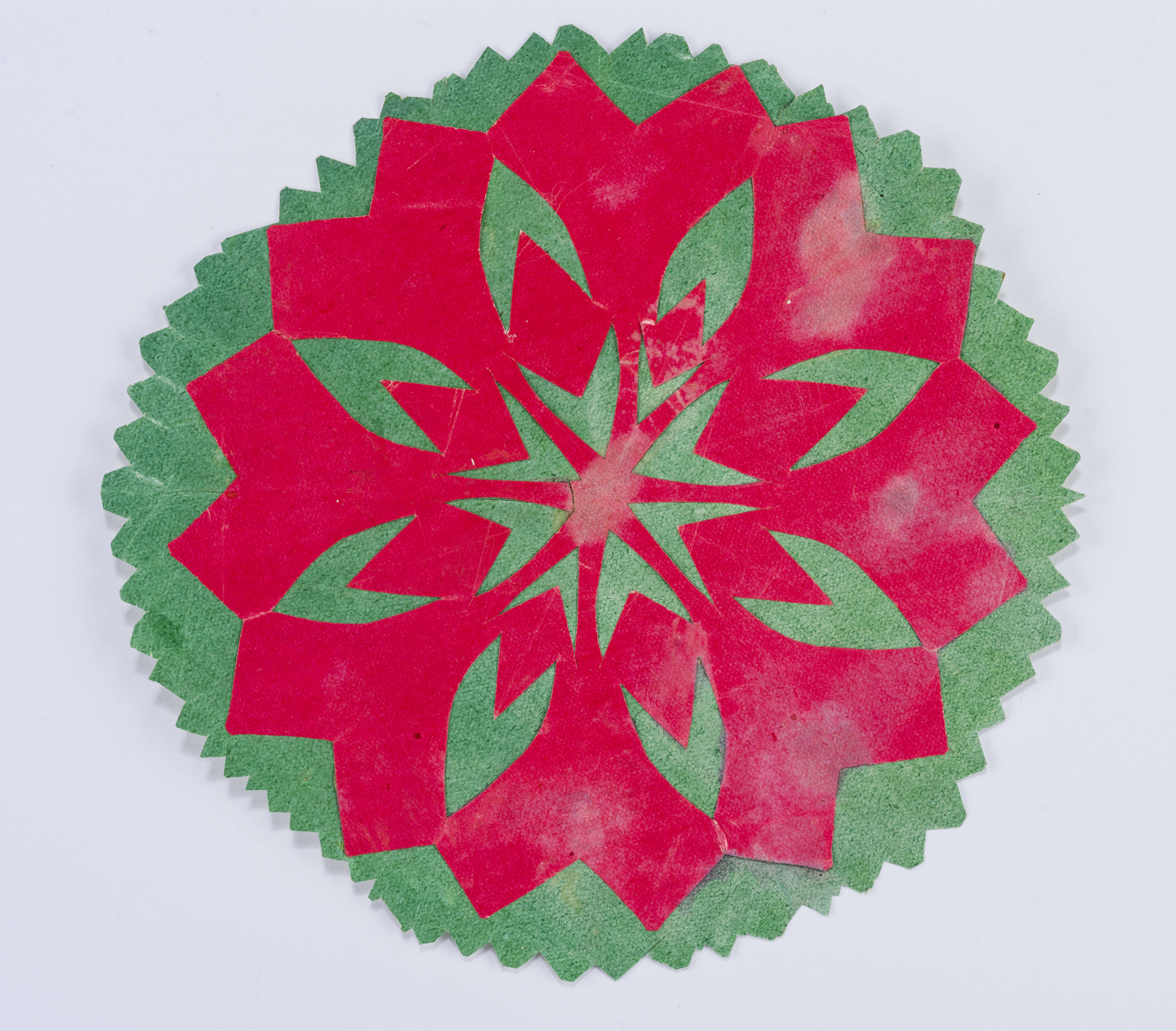 Tradycyjne wycinanki lubelskie na tle innych polskich wycinanek stanowią odrębną grupę. Płaskie monochromatyczne formy wycięte z jednego arkusza papieru glansowanego z połyskiem, czasem zwykłego barwionego domowym sposobem (patrz: E/17672/ML), stanowiły zwartą kompozycję z nieskomplikowanie wyciętymi ornamentami. W początkowym okresie były mało ażurowe. Miały układ pasowo-wstęgowy, złożony z rytmicznie powtarzających się motywów lalek lub drzewek, oraz geometryczny – kolisty albo kwadratowy. W formach kwadratowych obrzeża były gładkie bądź ząbkowane, nierzadko kwadrat przekształcał się w formę krzyżową. Przeważał w nich ornament w postaci rombów, trójkątów, owali, strzałek czy zawijasów (patrz: E/436/ML). Z czasem powiększono powierzchnię wycięć, zwłaszcza w partiach zewnętrznych, oraz pojawiły się stylizowane motywy roślinne przypominające liściasto-kwiatowe gałązki.