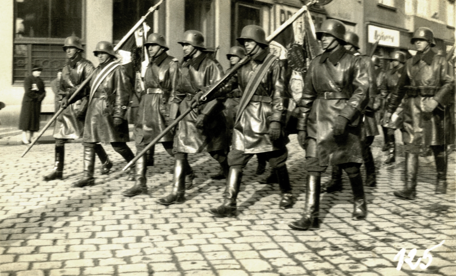 Podobnie umundurowani są Strzelcy 10 PSK i 24 Pułku Ułanów (DRM-573) podczas defilady w Rzeszowie (ul. 3 Maja obchody święta 3 maja w 1938 lub 1939 rokiem), defiladę prowadzą poczty 10 PSK i 24 Ułanów z Kraśnika.
