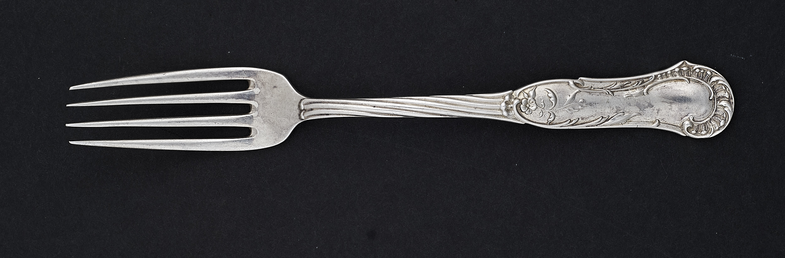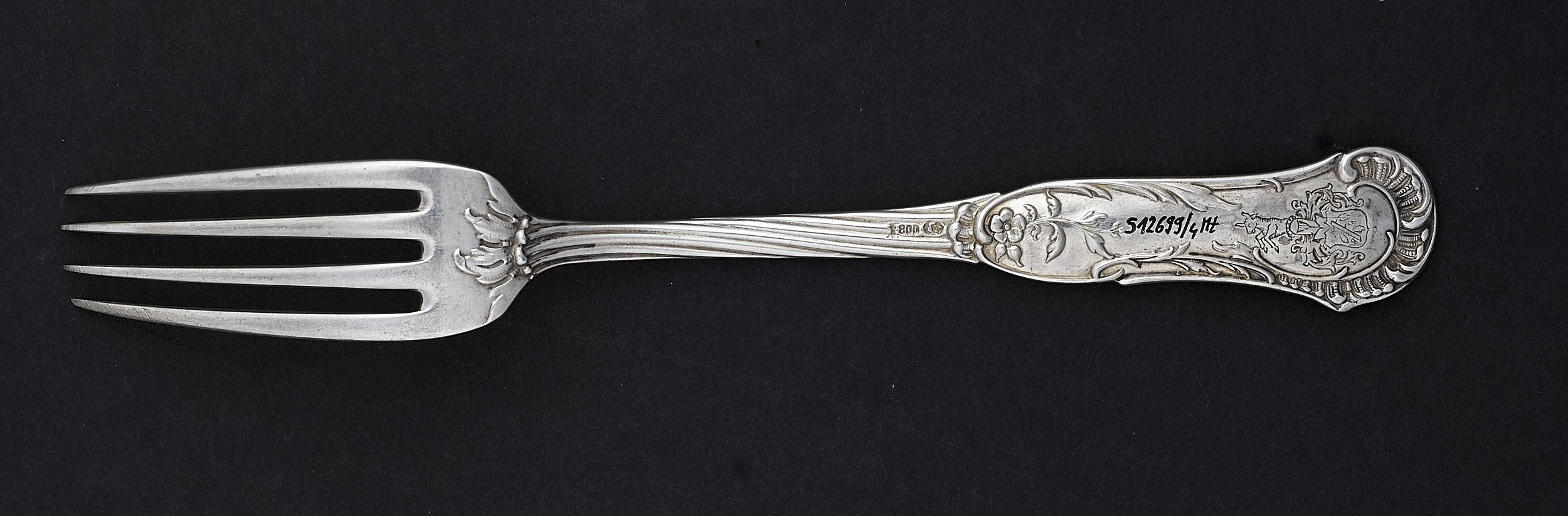 Widelec pochodzi z kompletu na sześć osób liczącego łącznie 36 elementów. W jego skład poza sześcioma widelcami stołowymi wchodzi: