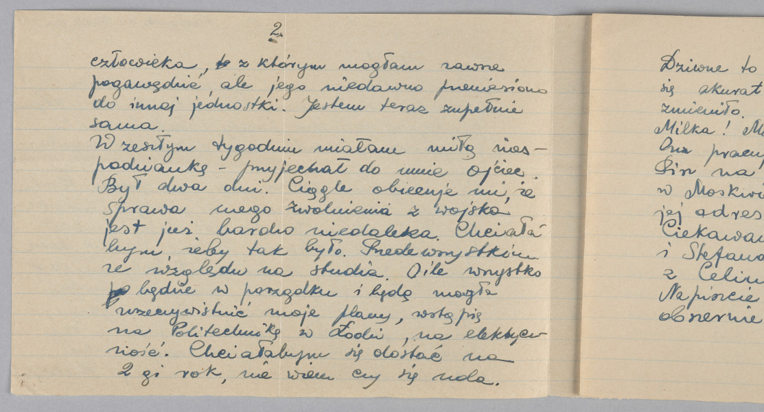 „Od 3 tygodni jestem już na terenie Polski. Stoimy na garnizonie w małym miasteczku kujawskim. Nudzę się potwornie. Po prostu nie mam do kogo słowa przemówić. Towarzysze pracy są […] obcy mi zupełnie, miałam jednego bliskiego człowieka, z którym mogłam zawsze pogawędzić, ale jego niedawno przeniesiono do innej jednostki. Jestem teraz zupełnie sama”.