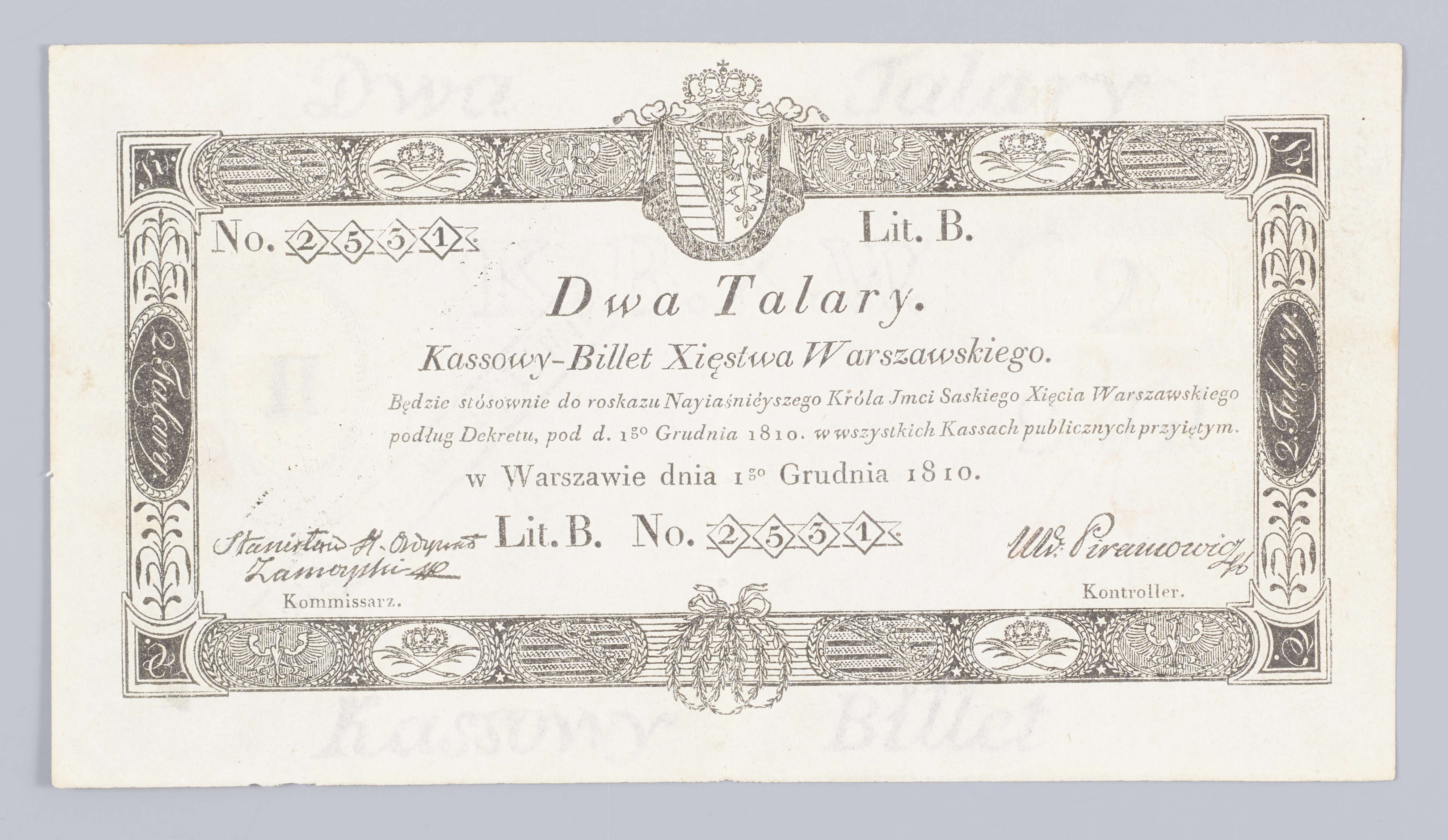 Jest częścią kolekcji: Pieniądz papierowy insurekcji kościuszkowskiej i Księstwa Warszawskiego