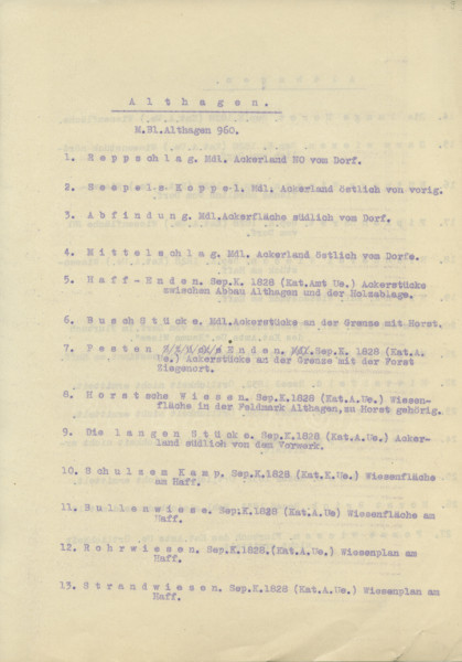 Spis został wykonany w ramach zainicjowanego przez pomorskiego językoznawcę dr. Roberta Holstena (1862–1954) projektu, polegającego na zebraniu przez nauczycieli i regionalistów z przedwojennej prowincji Pomorze (od Rugii do Lęborka) współczesnych ludowych i archiwalnych nazw obiektów fizjograficznych naturalnych i antropogenicznych oraz miejsc zamieszkanych i niezamieszkanych. Zgromadzony zespół archiwaliów (spisy i mapy, na których naniesiono lokalizację obiektów – Flurnamen Sammlung) obejmuje niematerialne dziedzictwo kulturowe regionu w zakresie onomastyki.