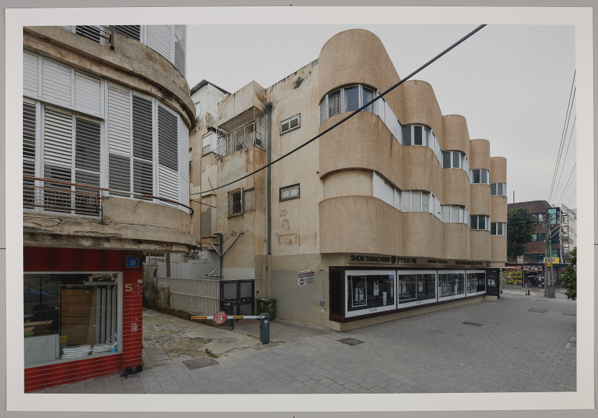 Druga w projekcie „Gdynia – Tel Awiw” fotografia budynku, który znajduje się u zbiegu ulic Króla Jerzego 53 i Dizengoffa 48 w Tel Awiwie – zwanego Domem Hornsteina (zob. pierwszą: MPOLIN-M690). Widok boku oraz części tylnej budynku. „Fale” elewacji znajdującej się od strony ulicy sięgają od drugiej kondygnacji do szczytu budynku i podzielone są w poziomie dwoma rzędami okien. Dolną kondygnację budynku tworzą witryny sklepowe.