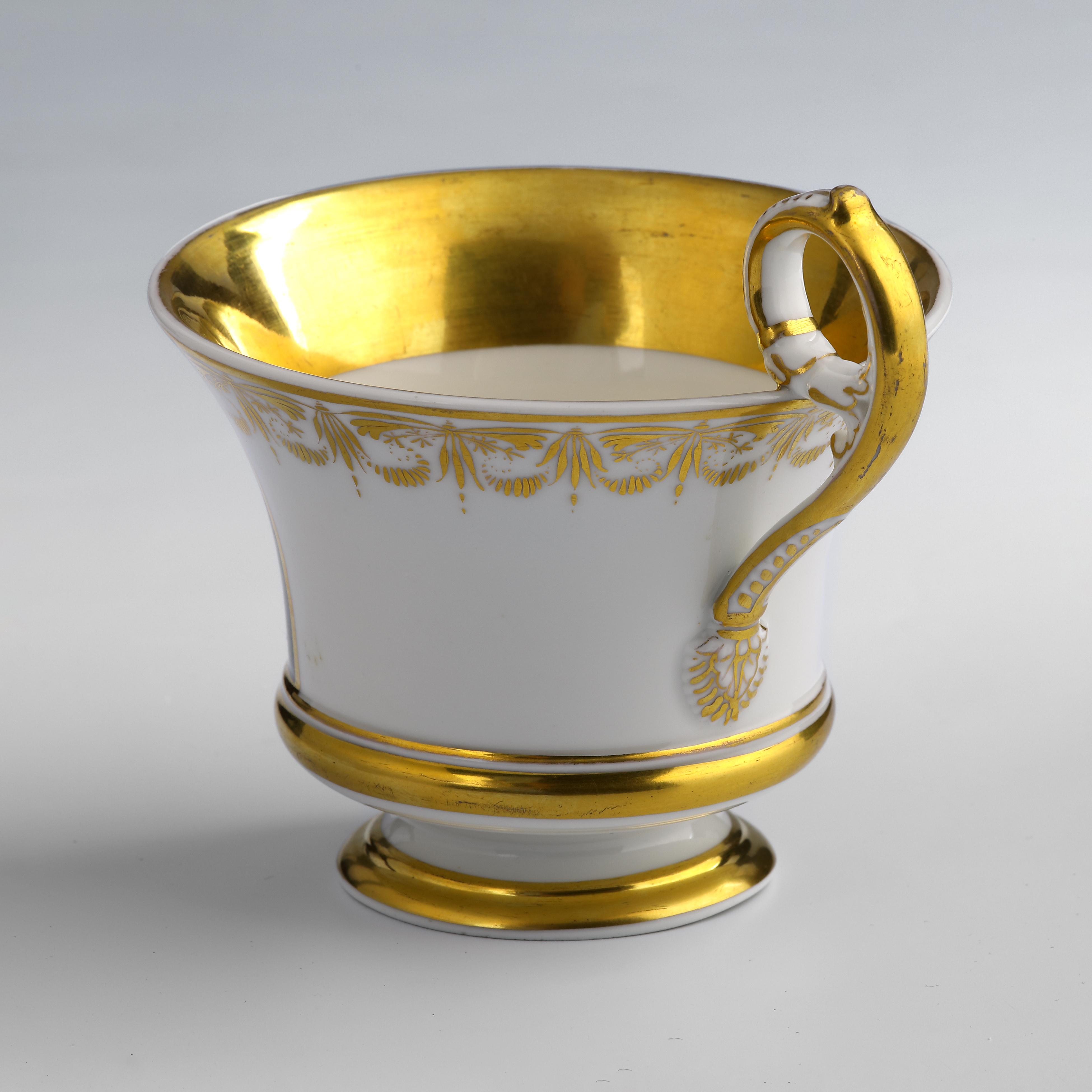 Porcelanowe filiżanki z poł. XIX wieku są fascynującym przykładem sztuki użytkowej i rzemiosła artystycznego. W tym właśnie okresie nastąpił znaczny rozwój produkcji porcelany i ceramiki, co wpłynęło na różnorodność form, wzorów i technik zdobniczych. Filiżanki z tego czasu często były nie tylko przedmiotami codziennego użytku, ale także elementami dekoracyjnymi. Stanowiły również symbol statusu społecznego oraz oznakę dobrego gustu. Zdobiono je ręcznie malowanymi wzorami lub barwnymi nadrukami ceramicznymi, które mogły obejmować motywy florystyczne i ornamentalne, jak również krajobrazy miejskie lub wiejskie.