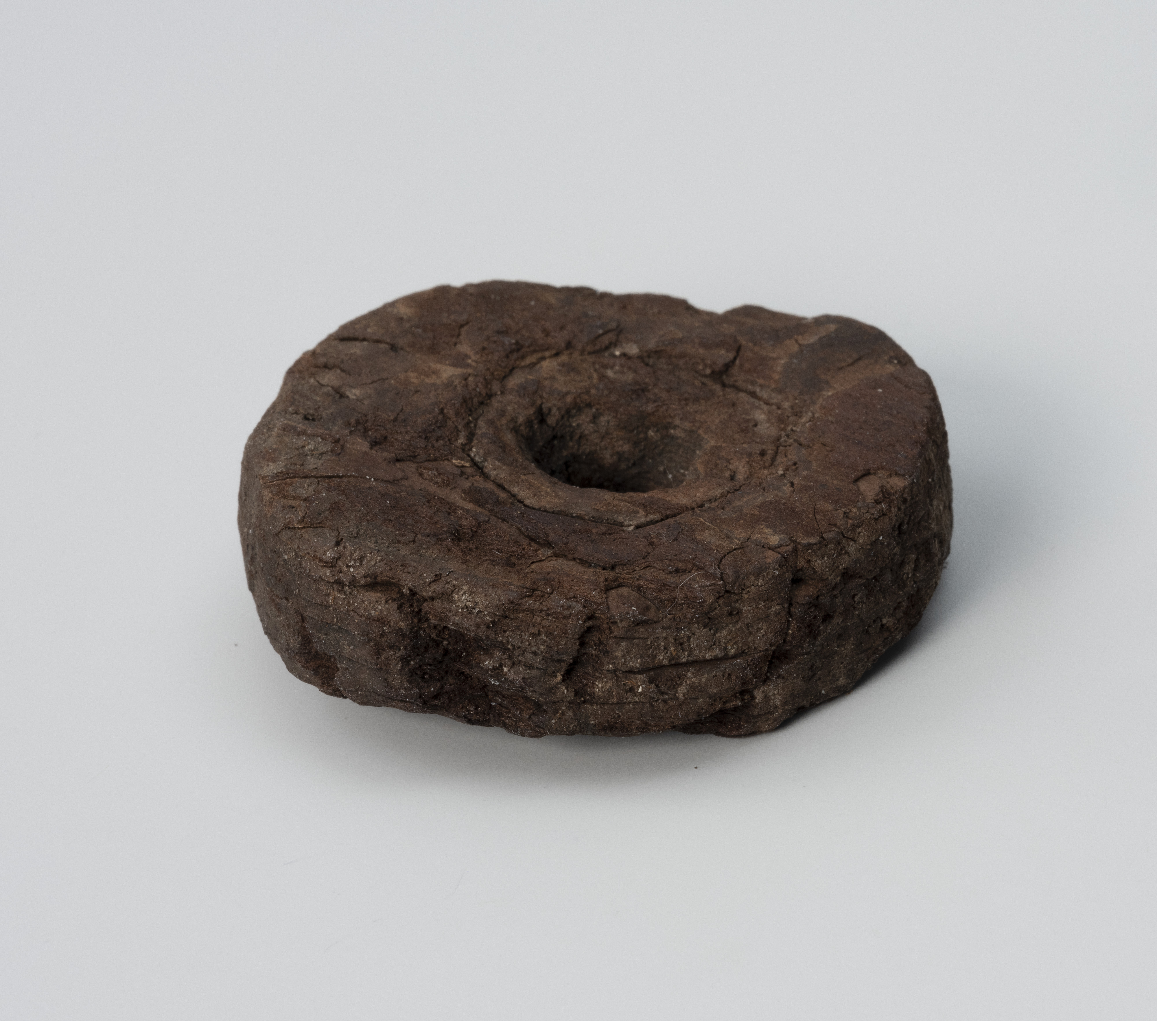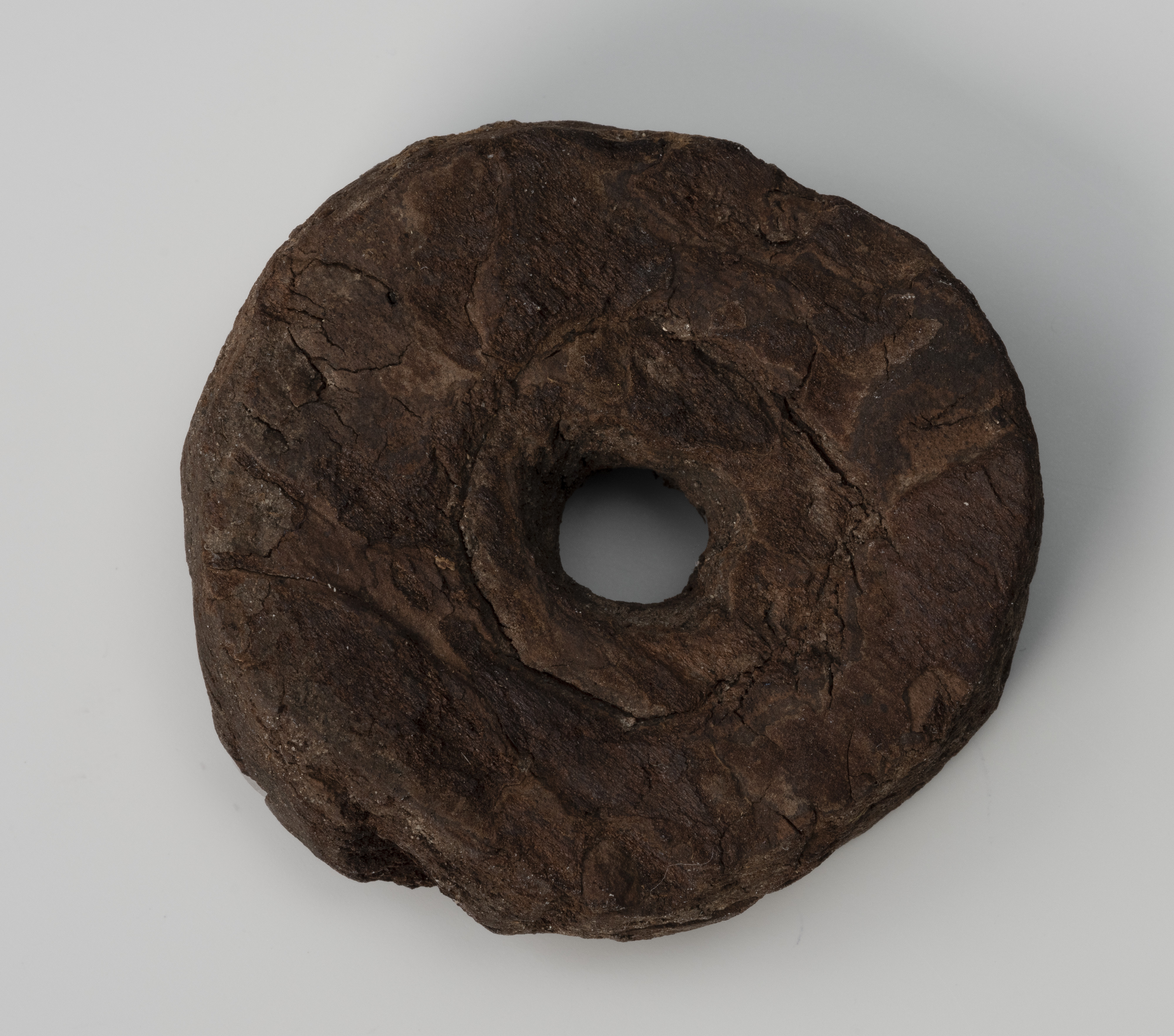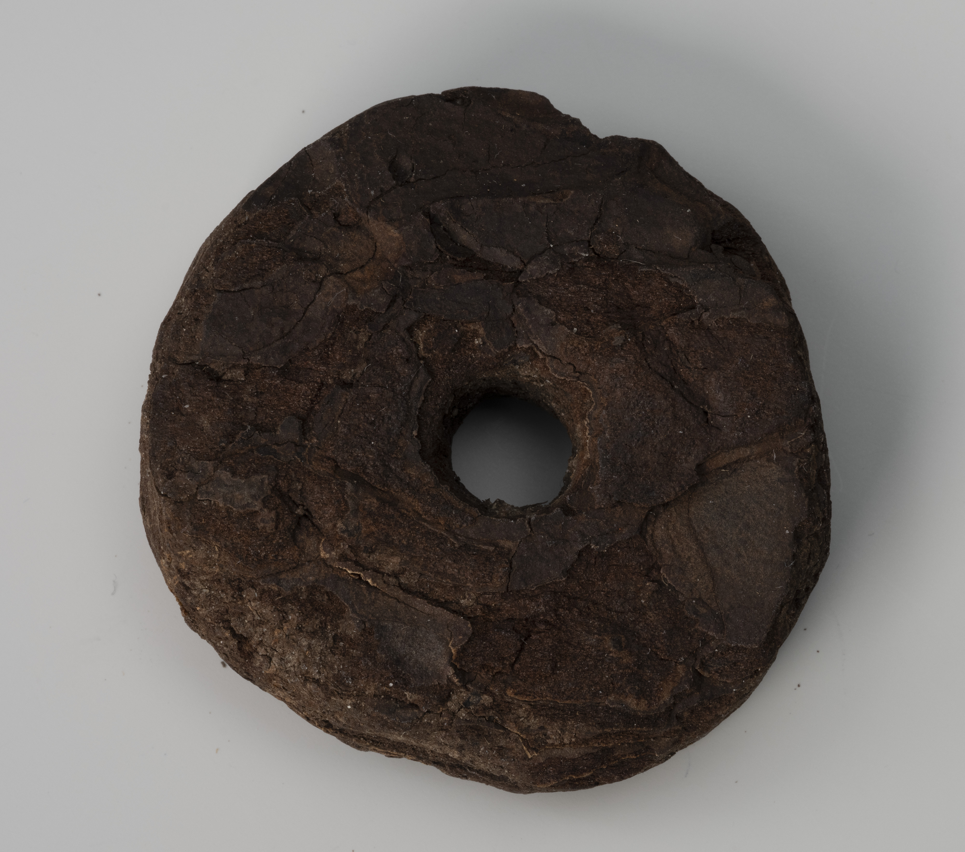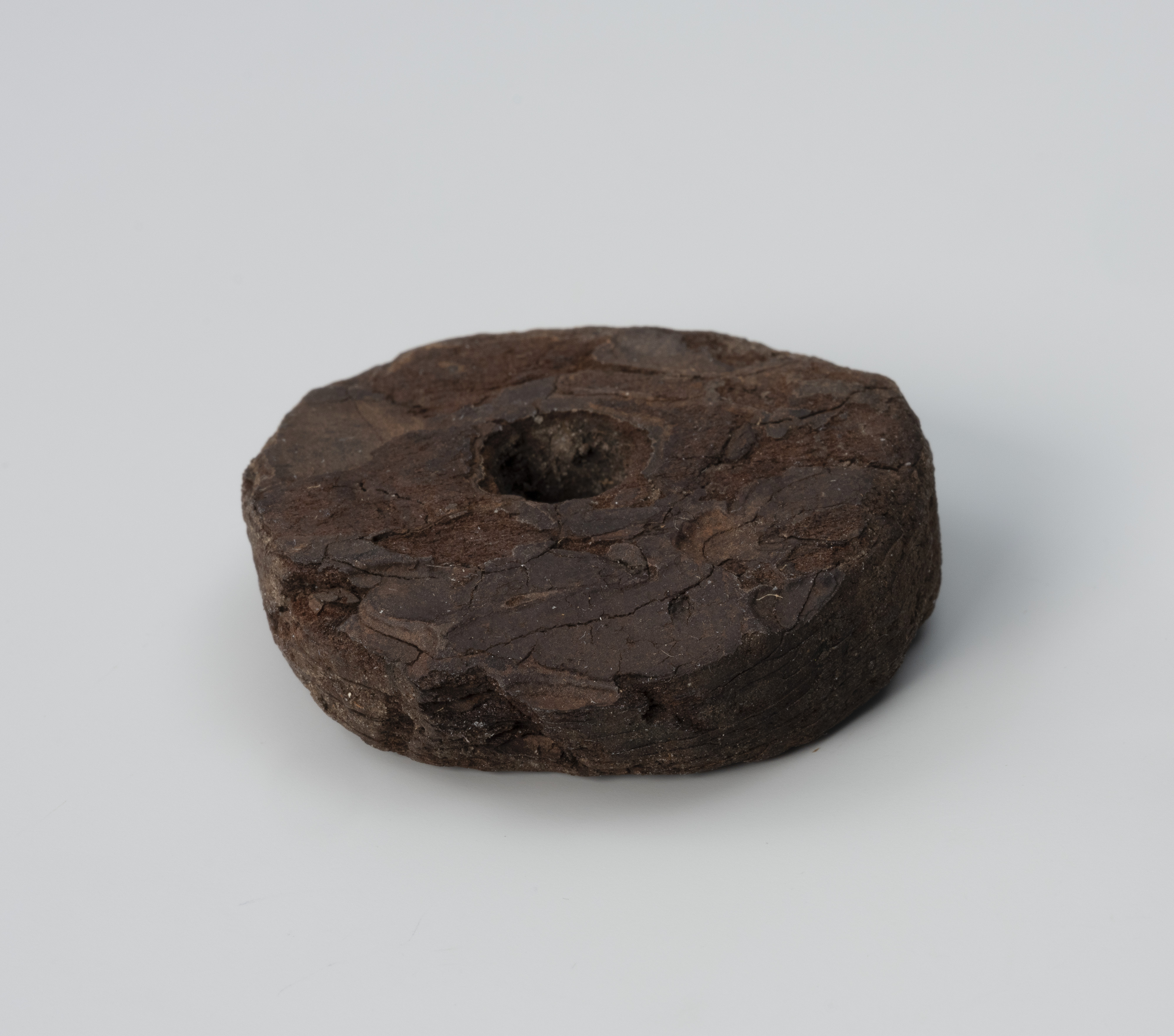 Prezentowany pływak odkryto w 1962 roku podczas badań wykopaliskowych prowadzonych w Kamieniu Pomorskim (województwo zachodniopomorskie). Wykonano go z kawałka kory drzewa iglastego. Kształtem zbliżony do nieregularnego koła. Na środku znajduje się otwór przelotowy.