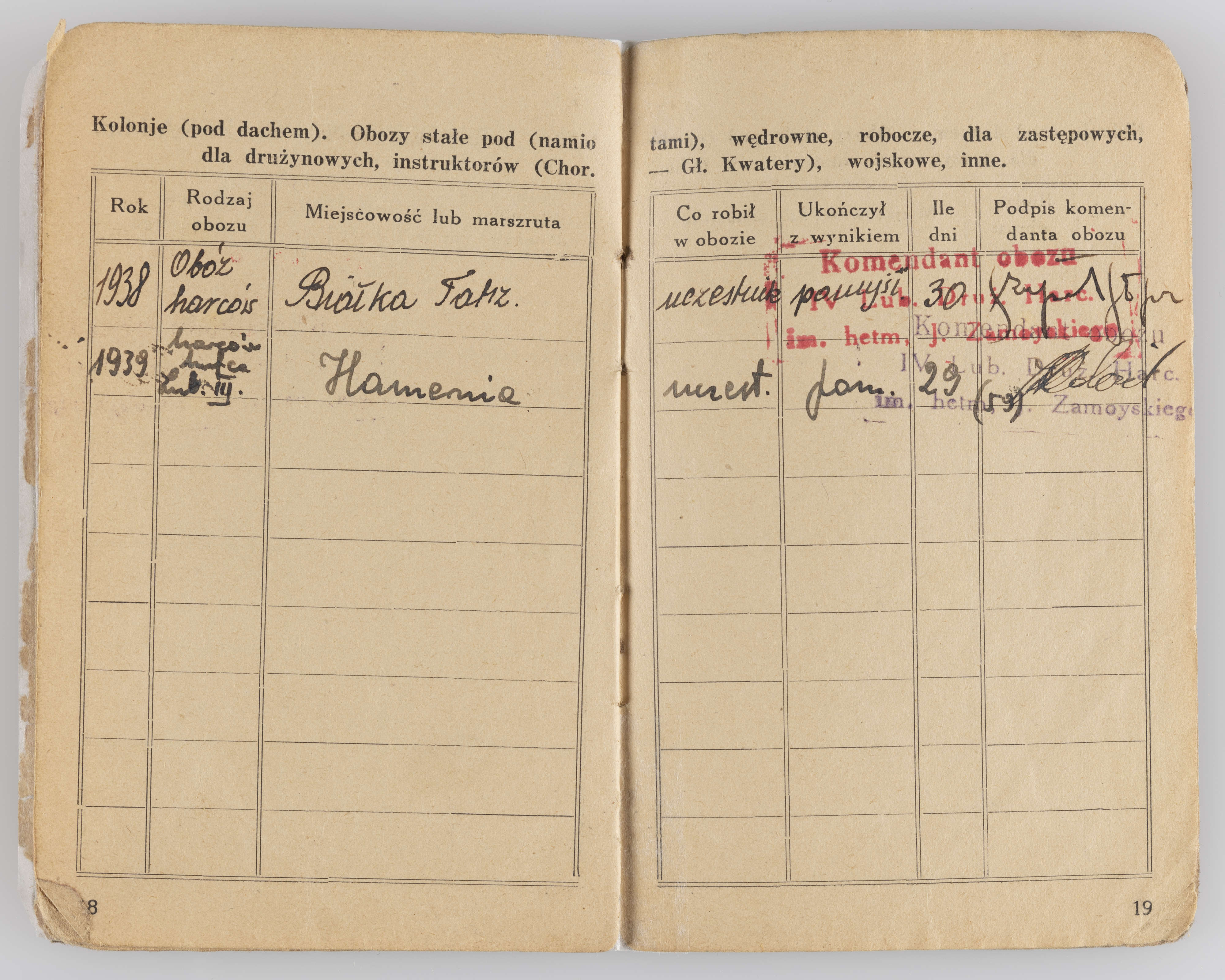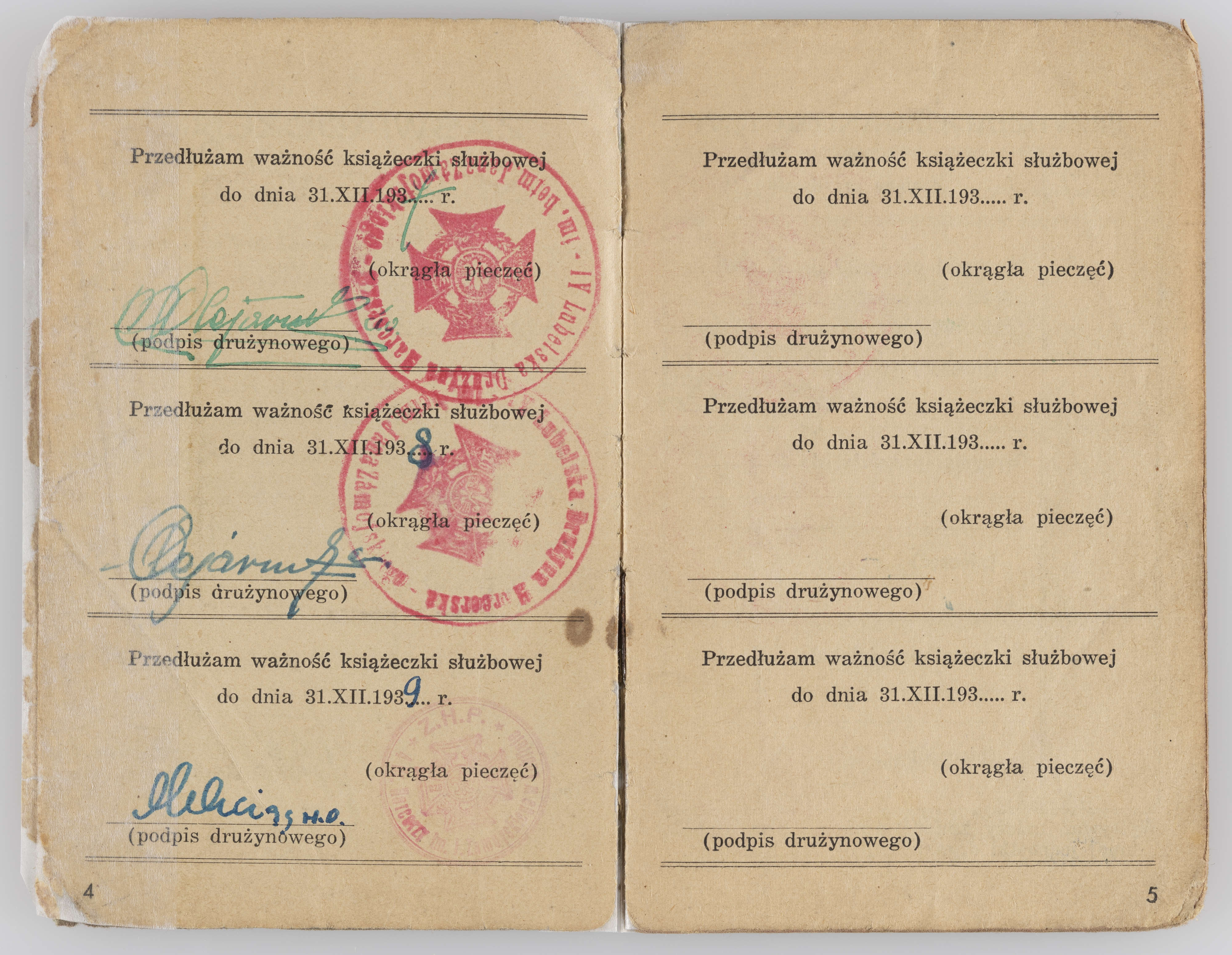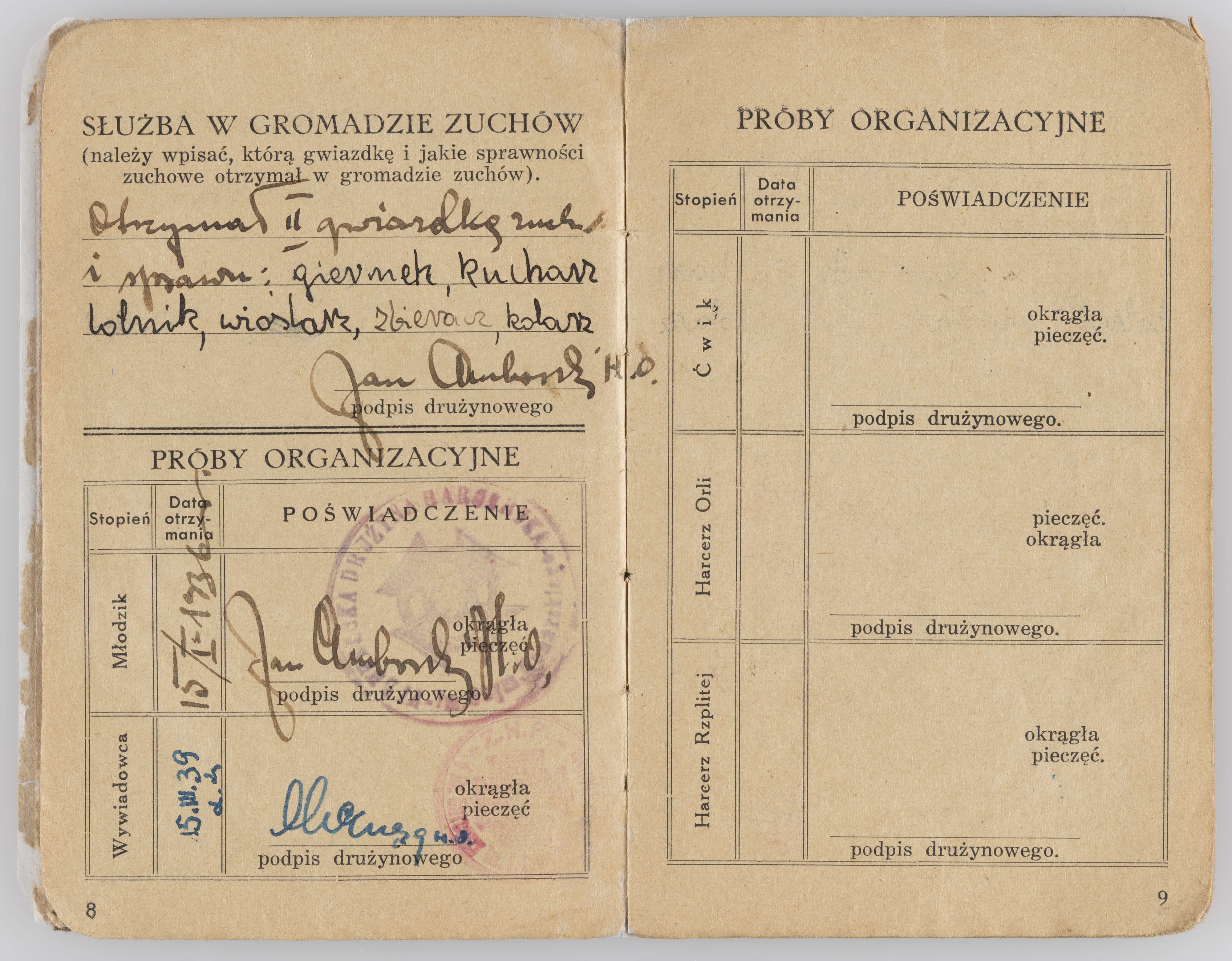 Książeczka służbowa Związku nie tylko zaświadczała o członkostwie, przydziale i wykazie służby danego harcerza, ale także gromadzono w niej informacje o jego osiągnięciach: zdobytych sprawnościach (Stefan Maksymowicz uzyskał sprawności, między innymi, giermka, kucharza, lotnika, wioślarza, zbieracza, kolarza, tropera, gońca i pływaka), stopniach otrzymanych w próbach organizacyjnych (Stefan Maksymowicz został mianowany wywiadowcą 15 marca 1939 roku), przyznanych odznakach sportowych, a także zapisywano informacje o zdrowiu harcerza i koloniach oraz obozach, w których uczestniczył posiadacz książeczki.