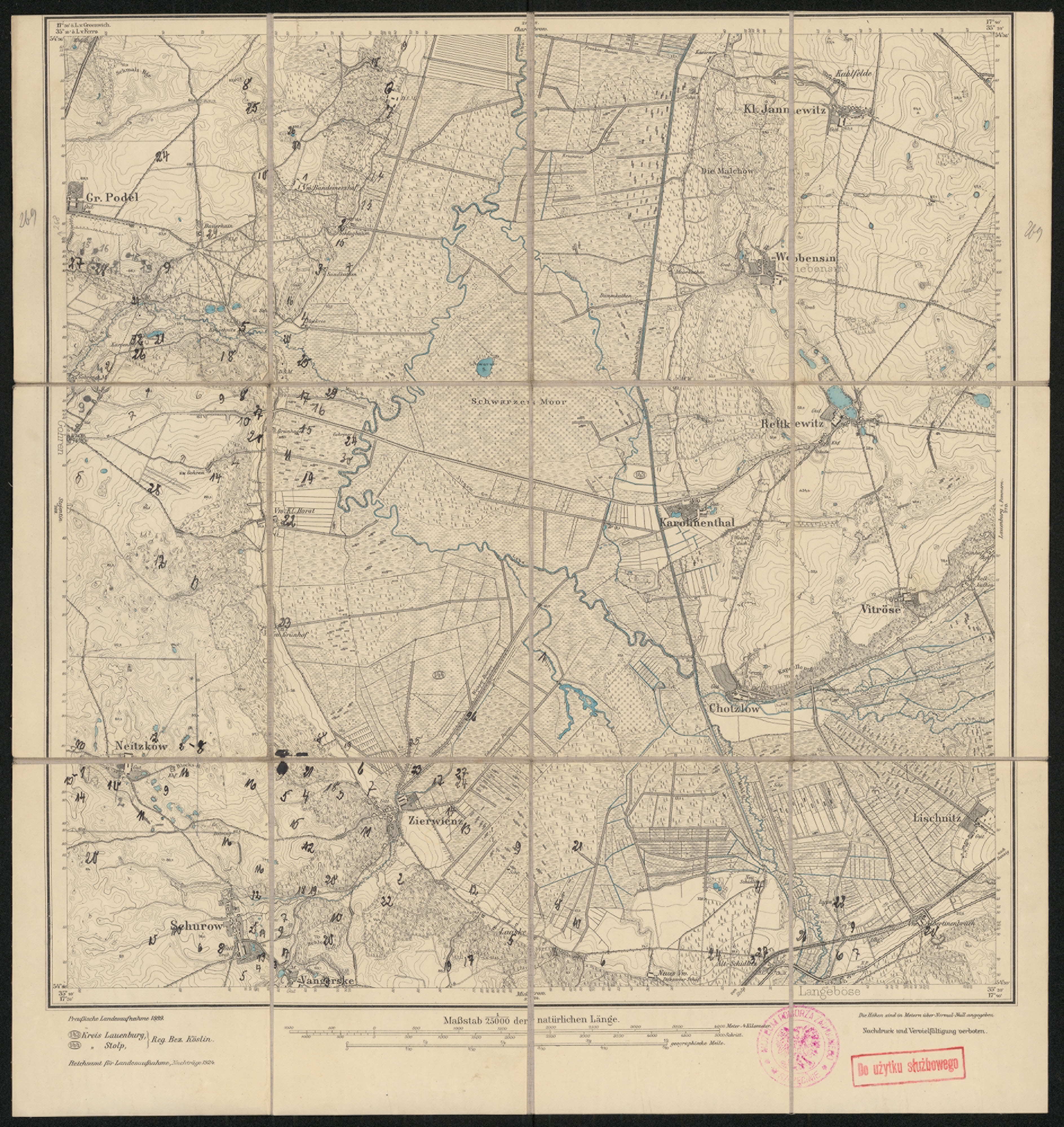 Mapa jest załącznikiem do spisu toponimów, wykonanego w ramach zainicjowanego przez pomorskiego językoznawcę dr. Roberta Holstena (1862–1954) projektu, polegającego na zebraniu z przedwojennej prowincji Pomorze w wyniku wywiadów terenowych i kwerendy źródeł nazw obiektów fizjograficznych naturalnych i antropogenicznych oraz miejsc zamieszkanych i niezamieszkanych. Mapy topograficzne typu Meßtischblatt w skali 1:25 000 charakteryzują się bardzo wysoką szczegółowością i dokładnością odwzorowania topografii terenu.