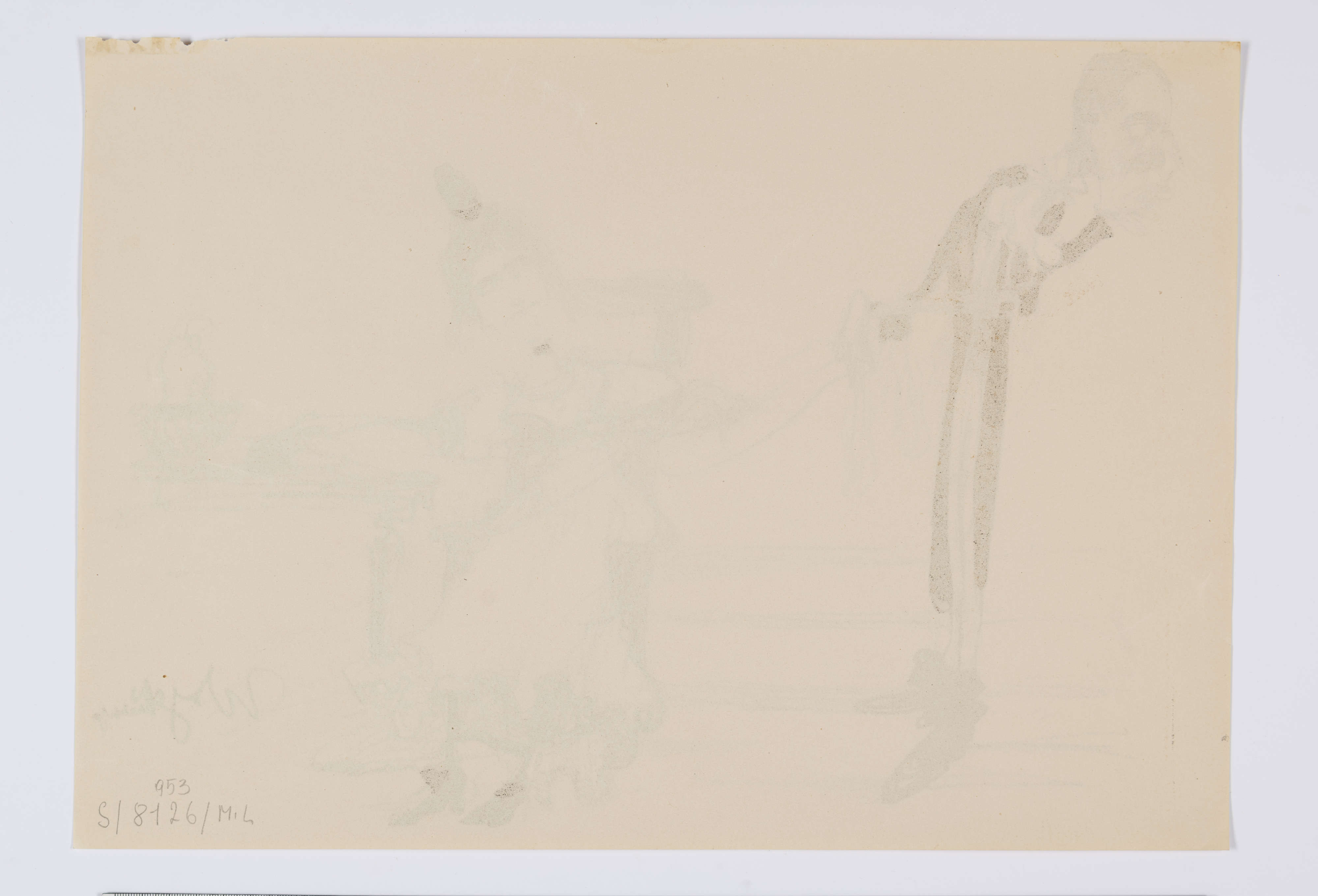 Witold Wojtkiewicz sportretował Jadwigę Stanisławę Mrozowską-Toeplitz i Andrzeja Mielewskiego w rolach Klary i Albina w sztuce Śluby panieńskie Aleksandra Fredry. Oboje artyści byli związani między innymi z Teatrem Miejskim w Krakowie. Mielewski, właśc. Andrzej Sidor (Sydor) (1867–1916) – jako reżyser teatralny i aktor współpracował ze Stanisławem Wyspiańskim i Tadeuszem Pawlikowskim. Jadwiga Mrozowska (1880–1966) poza Krakowem grywała na scenach Warszawy, Łodzi, Wilna, Grodna. W 1907 roku wyjechała do Włoch. Jej pasją było podróżowanie. Podczas ekspedycji do Azji odkryła między innymi przełęcz w Pamirze, którą nazwano jej nazwiskiem.