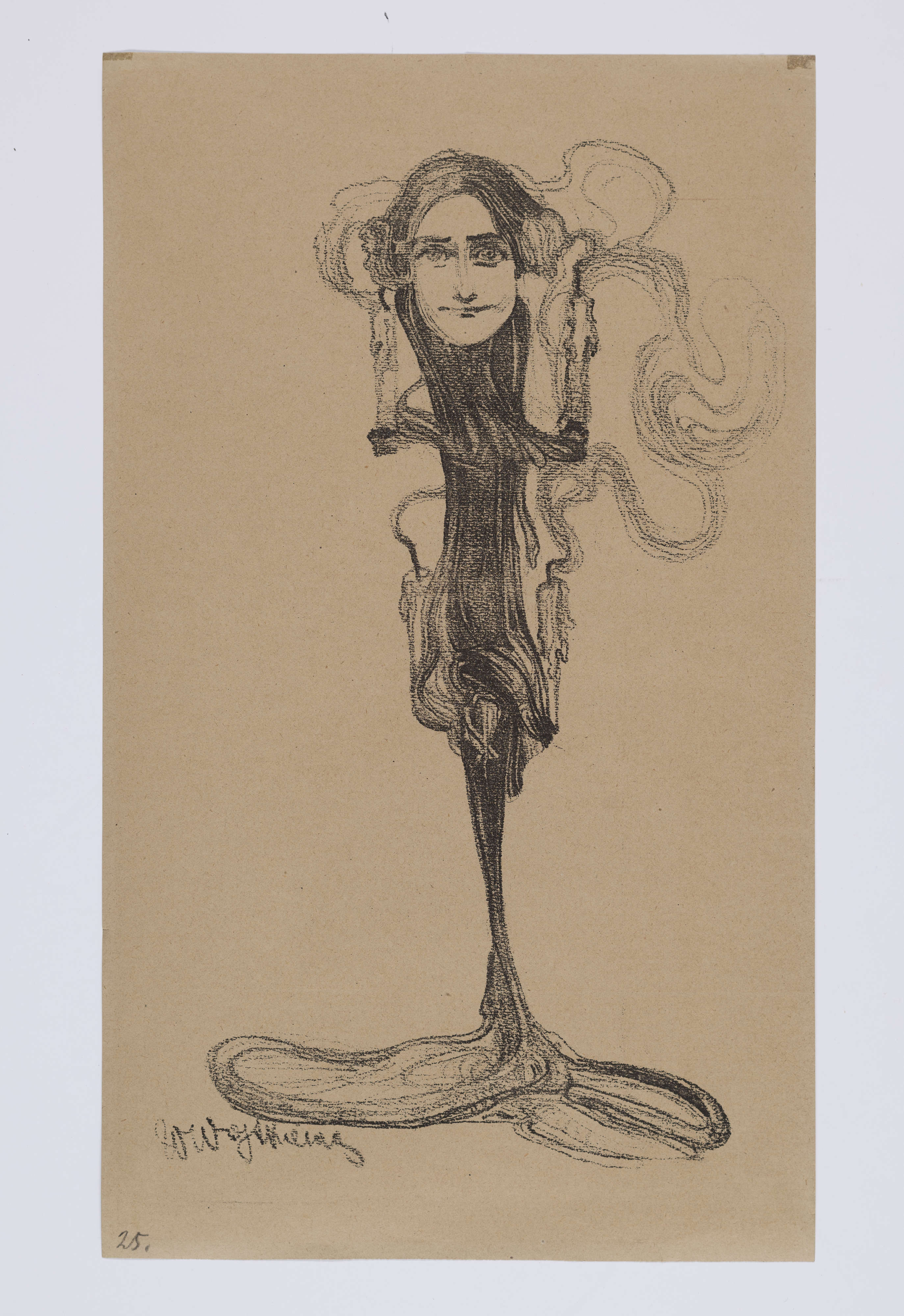Grafika pochodzi z Teki Melpomeny wydanej w 1904 roku w Krakowie pod kierunkiem S. Szreniawy-Rzeckiego. Teka zawiera blisko 40 karykatur litograficznych w ujęciu satyrycznym ukazujących aktorów scen krakowskich. Opracowali je młodopolscy artyści: W. Bystrzyński, K. Frycz, S. Kuczborski, A. Procajłowicz, S. Szreniawa-Rzecki, K. Sichulski, W. Wojtkiewicz – bywalcy słynnej Jamy Michalika. Odbito je bezpłatnie dzięki Zenonowi Pruszyńskiemu prowadzącemu słynny krakowski zakład litograficzny, a środki pozyskane ze sprzedaży teki miały zasilić fundusz emerytalny teatru.