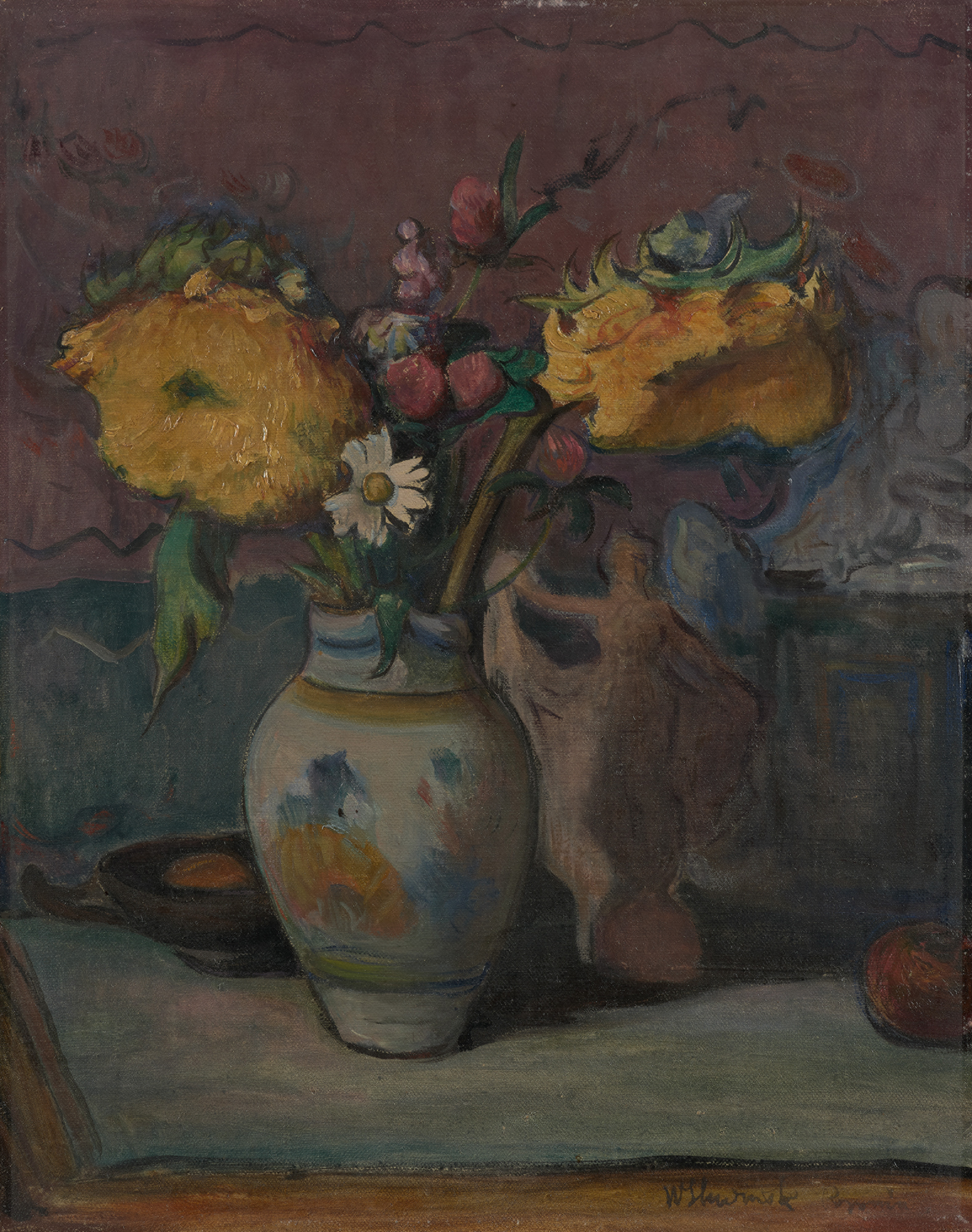 Choć nie mamy potwierdzenia, że Ślewiński widział płótna van Gogha, patrząc jednak na szczeciński obraz oraz wziąwszy pod uwagę zbieg dat i powiązanie ze wspólnym mistrzem-przyjacielem, można sądzić, że żółte kwiaty w wazonie powstały jako wynik inspiracji działami van Gogha.
