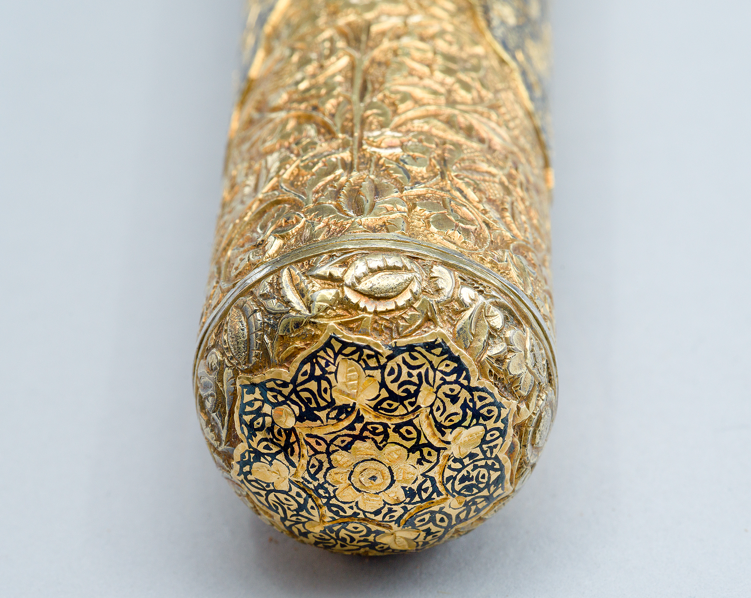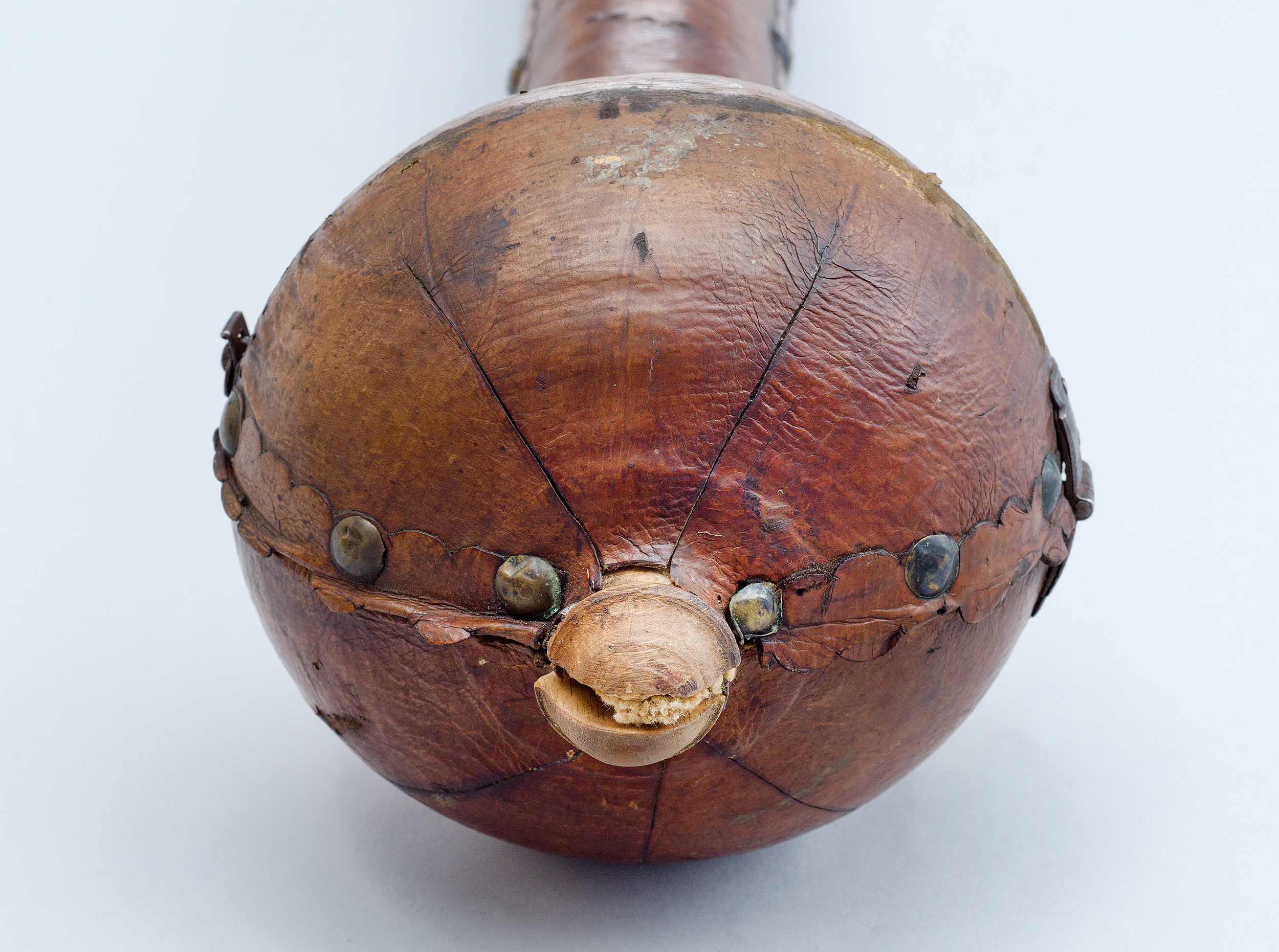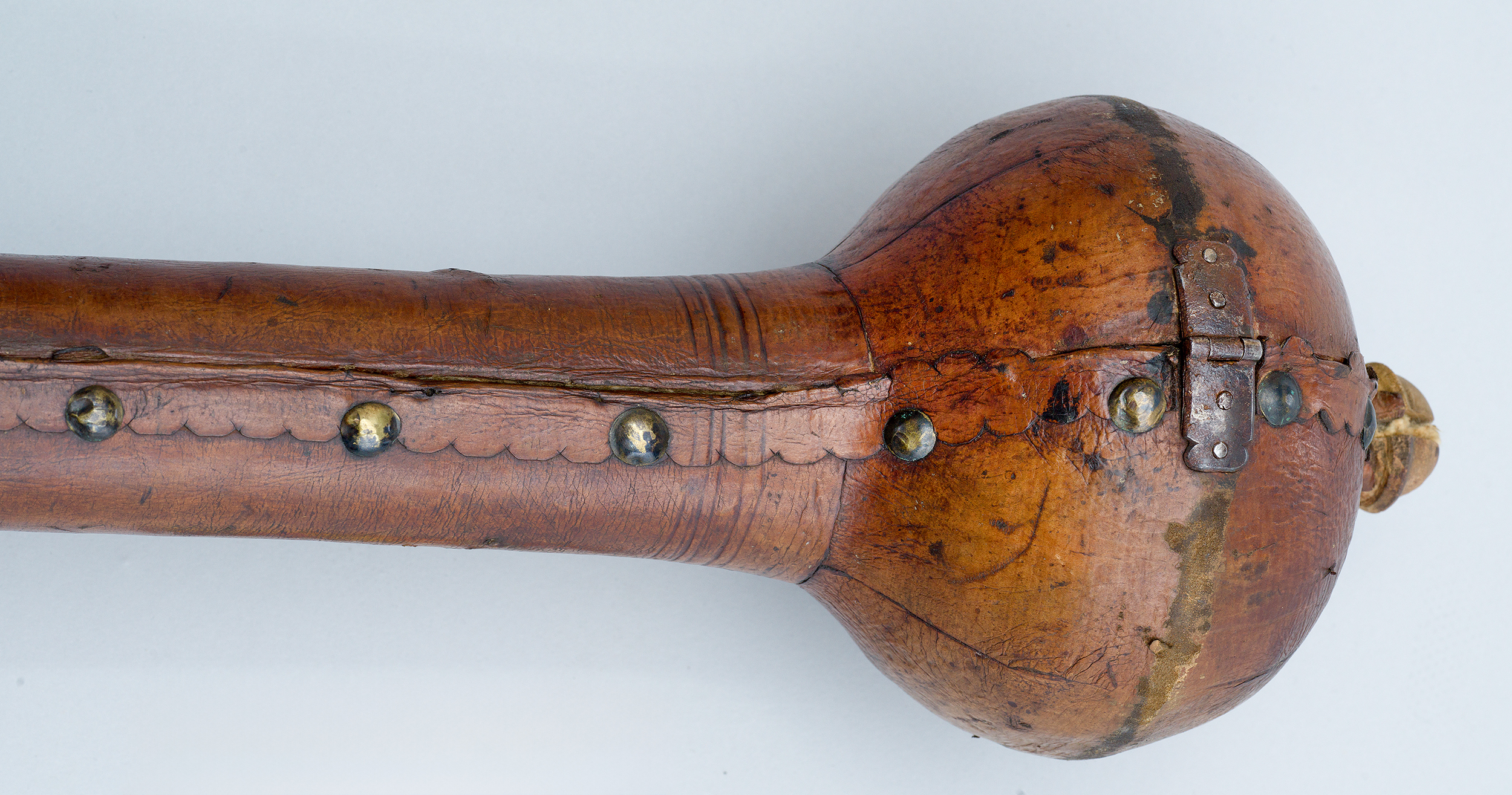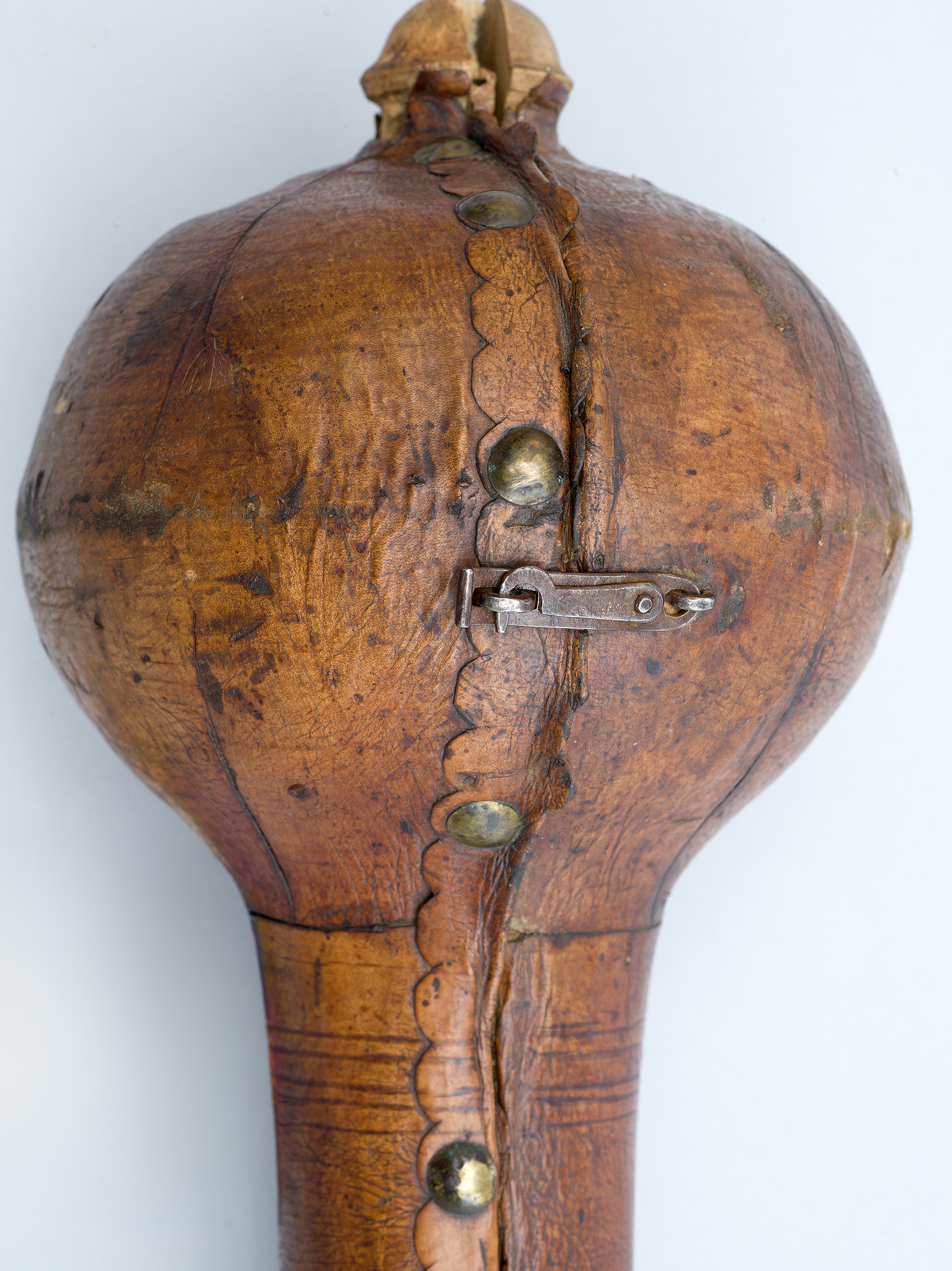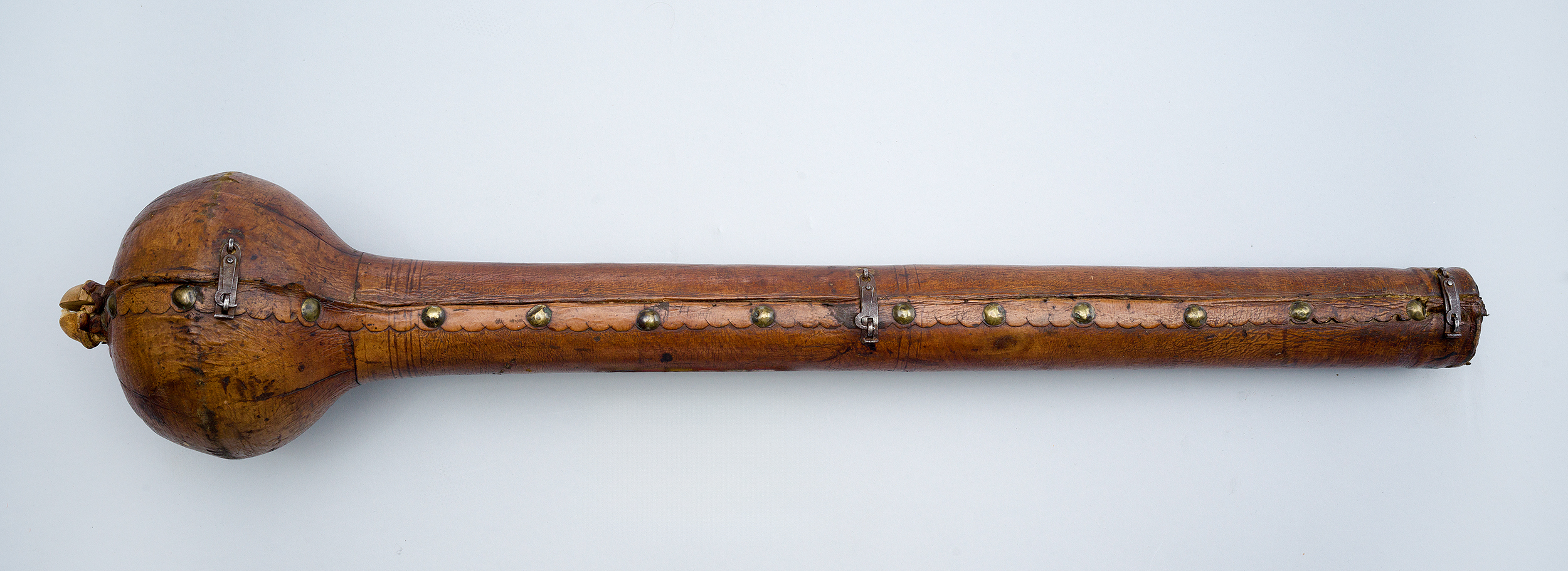Futerał – z zewnątrz kryty brązową skórą, wewnątrz grubą tkaniną bawełnianą – składa się z dwóch części. Z jednej strony spięty jest zawiasami, a z drugiej – zapinany na skobelki z haczykami.