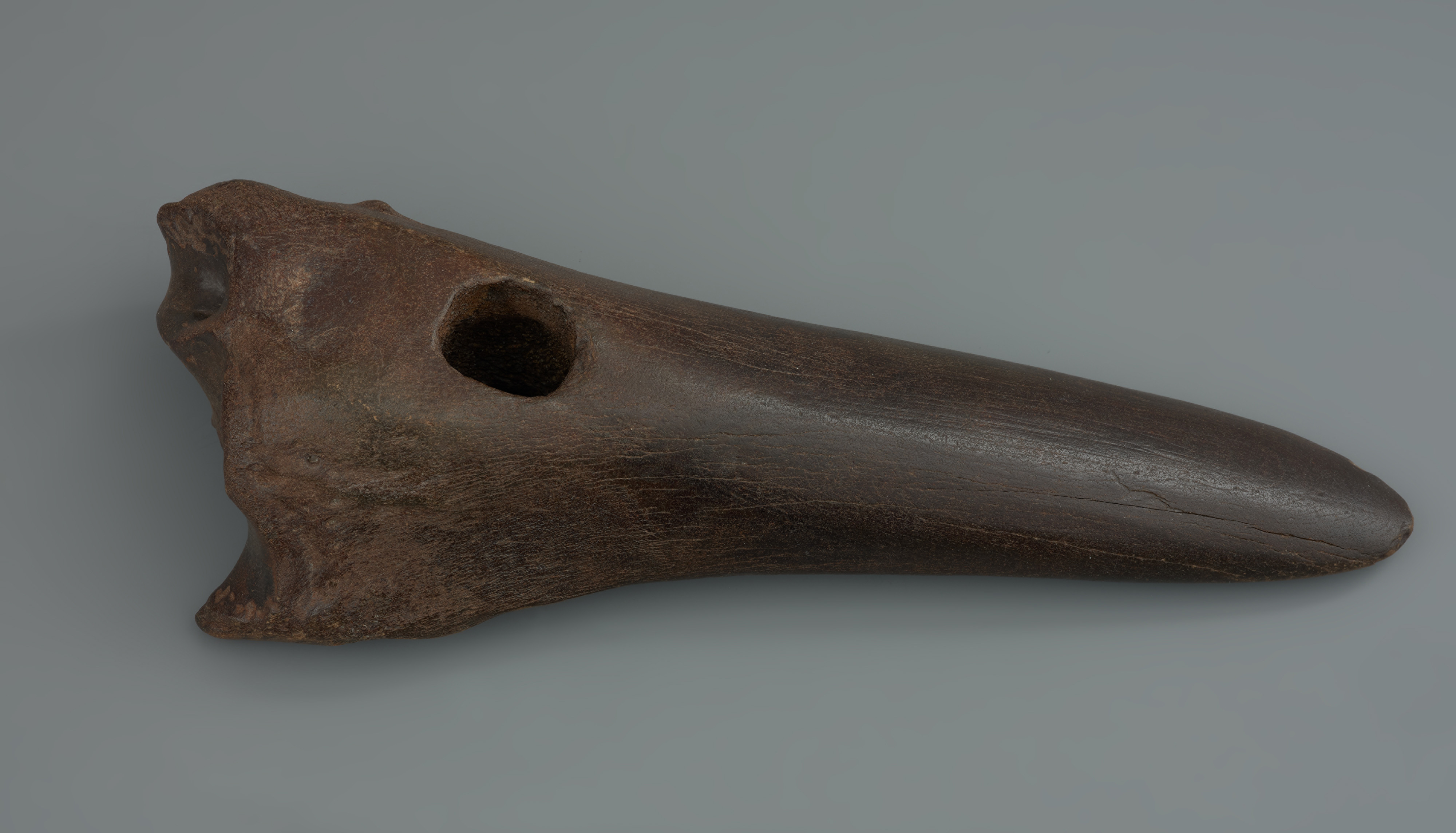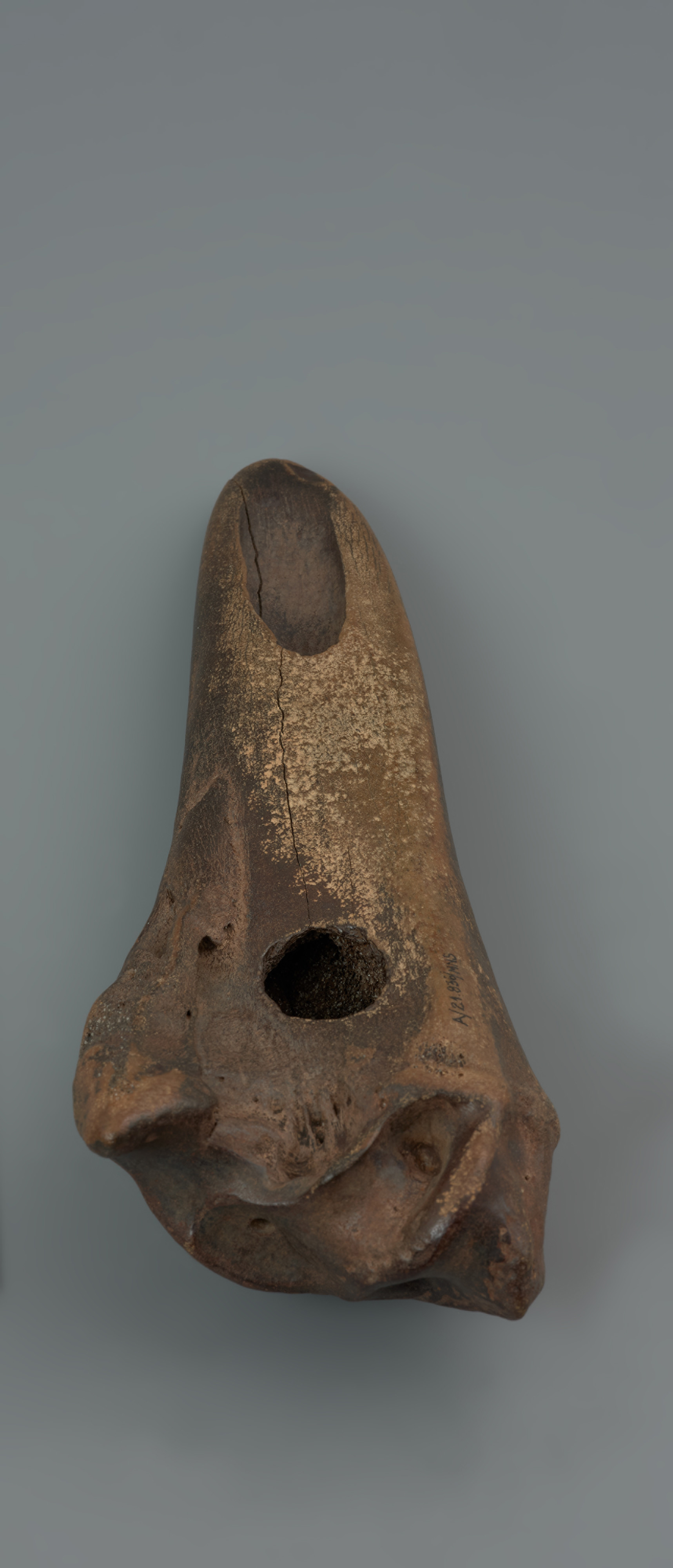 Motyka wykonana z kości dużego ssaka, prawdopodobnie tura, pochodzi z Pogorzelicy, pow. gryficki. Odkrył ją przypadkowo w 1971 roku uczeń szkoły w podstawowej z Brzegu Dolnego na Dolnym Śląsku przebywający na wakacjach nad morzem. Początkowo trafiła do zbiorów dawnego Muzeum Archeologicznego we Wrocławiu, w styczniu 1972 roku została przekazana do zbiorów Muzeum Narodowego w Szczecinie. Proces produkcji motyki rozpoczyna odcięcie zbędnego elementu – główki kości, kończy przewiercenie otworu na osadzenie trzonka. Sposobu kształtowania ostrza nie można precyzyjnie odtworzyć ze względu na wyświecenia i zagładzenia powierzchni powstałe w trakcie użytkowania, a także podczas wielowiekowego zalegania w ziemi lub w wodzie. Wydaje się prawdopodobne, że motyka odkryta w Pogorzelicy miała kontakt z wodą morską, obijała się o kamienie i ścierała na piasku. Ma to związek ze zmianami poziomu morza prowadzącymi do zalania rozległego obszaru Zatoki Pomorskiej od wyspy Bornholm po obecne polskie wybrzeże. Dlatego wyroby ludności ze starszej epoki kamienia z różnych surowców są wyławiane przez sieci rybackie w trakcie połowów lub wyrzucane przez fale na brzeg. Motyki z kości dużych ssaków znane są z kilku stanowisk, między innymi z Trudnej, pow. złotowski, oraz w Hohen Viecheln, Lkr. Nordwestmecklenburg, Meklemburgia-Pomorze Przednie. Od motyki Pogorzelicy różnią się obecnością bogatej ornamentyki.
