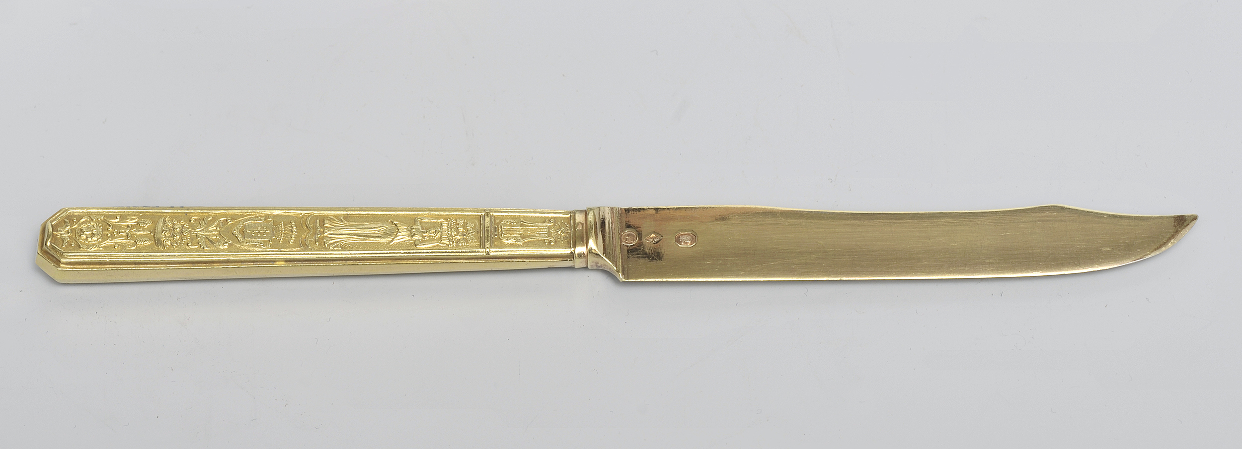 Prezentowany sztuciec jest jednym z siedemdziesięciu dwóch noży deserowych zachowanych w wilanowskiej kolekcji. Co ciekawe, cały komplet na  72  osób wykonany został przez dwóch złotników. Łyżki i widelce wykonał Dominique F. Naudin, a noże Martin G. Biennais.