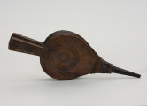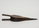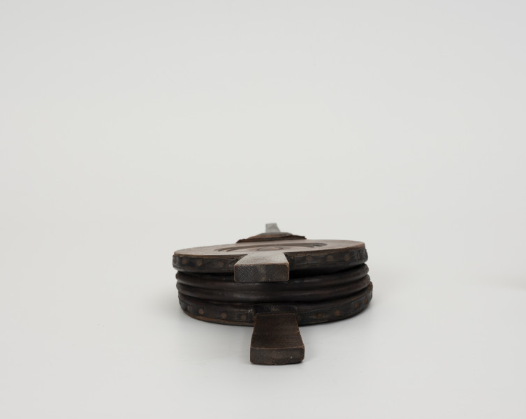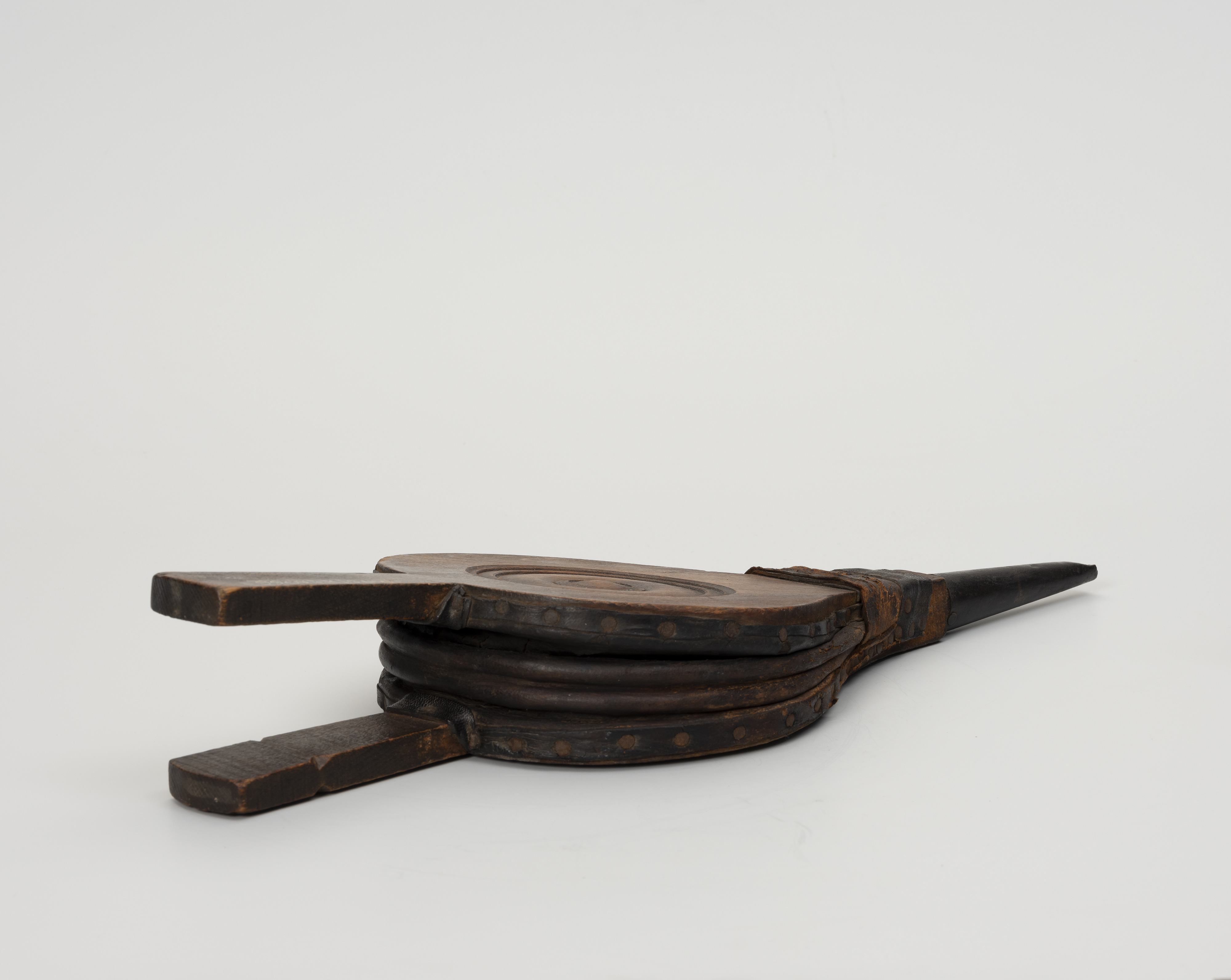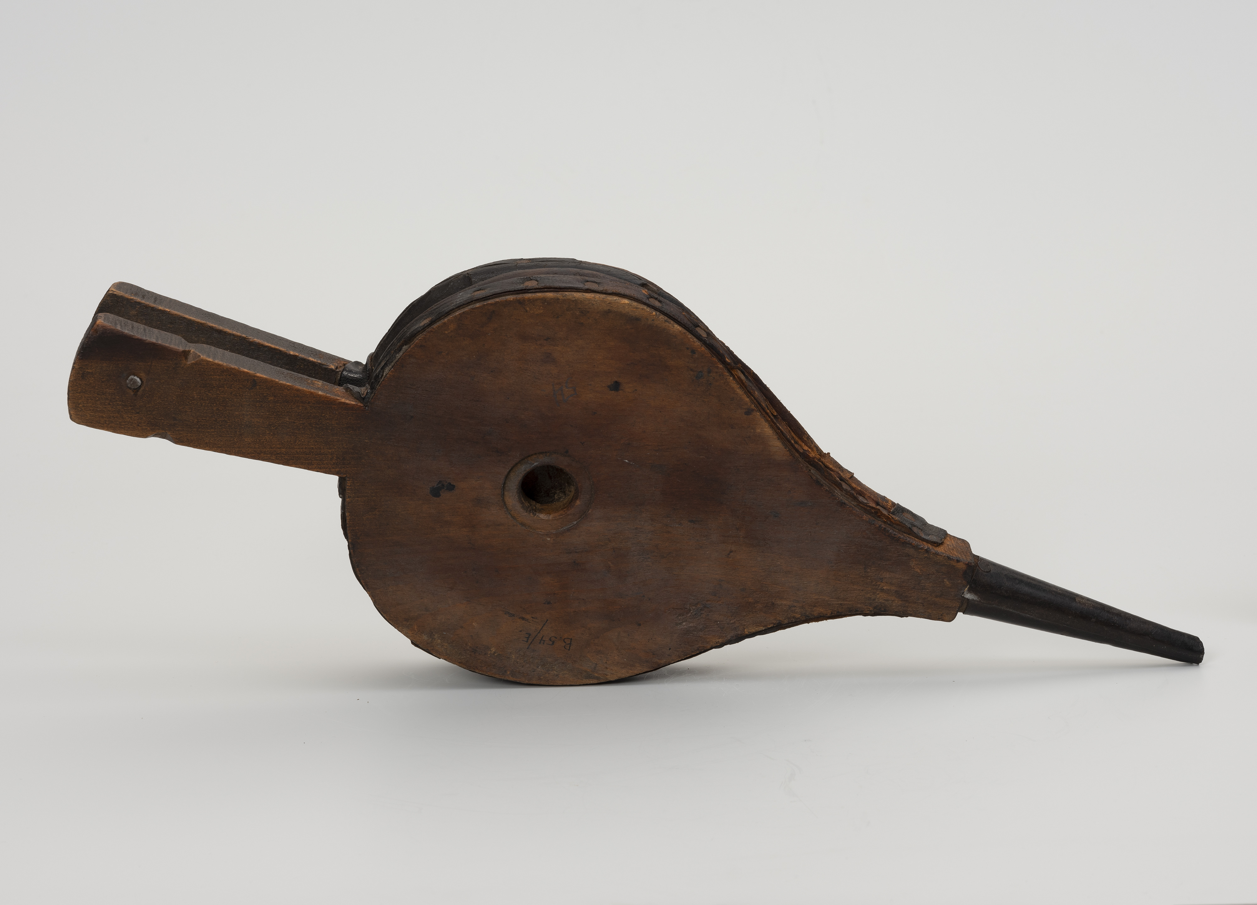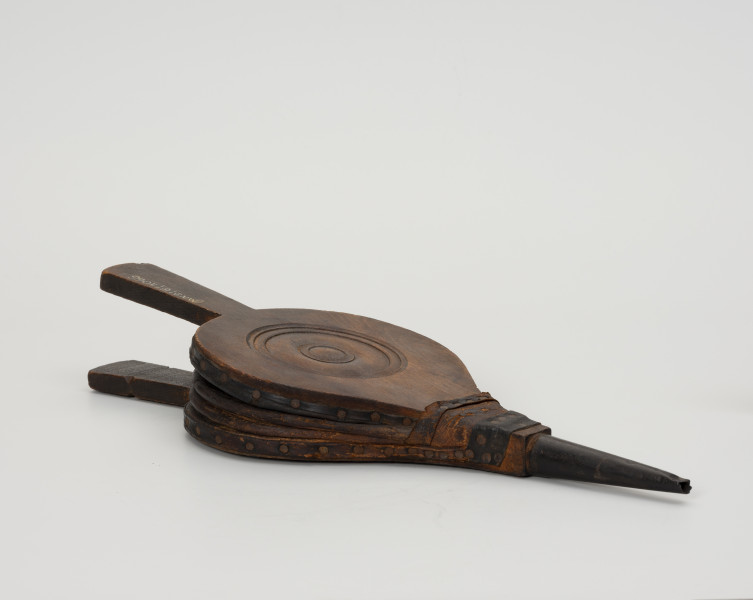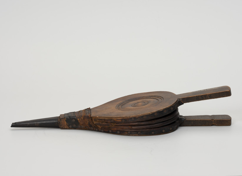 Prezentowany, jednokomorowy, niewielki miech z pierwszej połowy XX w. wykonany został z ręcznie wyprawionej skóry. Ma typową formę elastycznego woreczka mocowanego za pomocą nitów do drewnianej obudowy.
