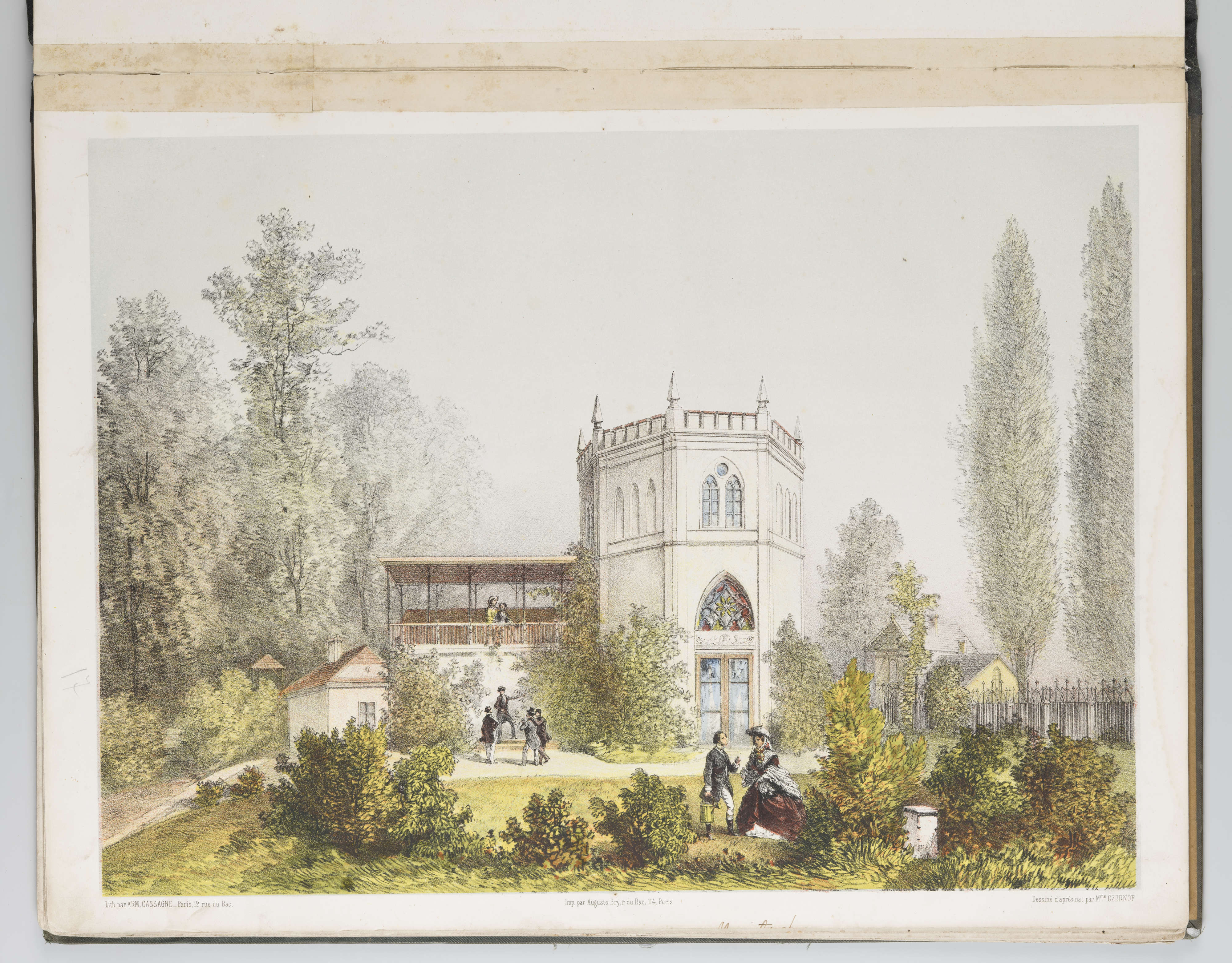Barwna kompozycja graficzna przedstawia pejzaż architektoniczny z Puław. Karta pochodzi z wydawnictwa litograficznego Album des vues de l’Institut Alexandra du jardin et des environs de Novo Alexandra (Pulawy), opublikowanego w Paryżu w 1858 roku. Księga zawiera dwadzieścia cztery litografie wykonane przez A. T. Cassagne’a. Autorką rysunkowych i akwarelowych pierwowzorów była uzdolniona rysowniczka Barbara z Grotenów Czernof. W latach 50. XIX wieku pracowała jako przełożona i nauczycielka rysunku w Aleksandryjskim Instytucie Wychowania Panien w Puławach. Zakład mieścił się w skonfiskowanym po 1831 roku przez Rosjan majątku Czartoryskich. Artystka wykonała wiele prac ukazujących zakątki dawnej siedziby i widoki okolicznych miejscowości.