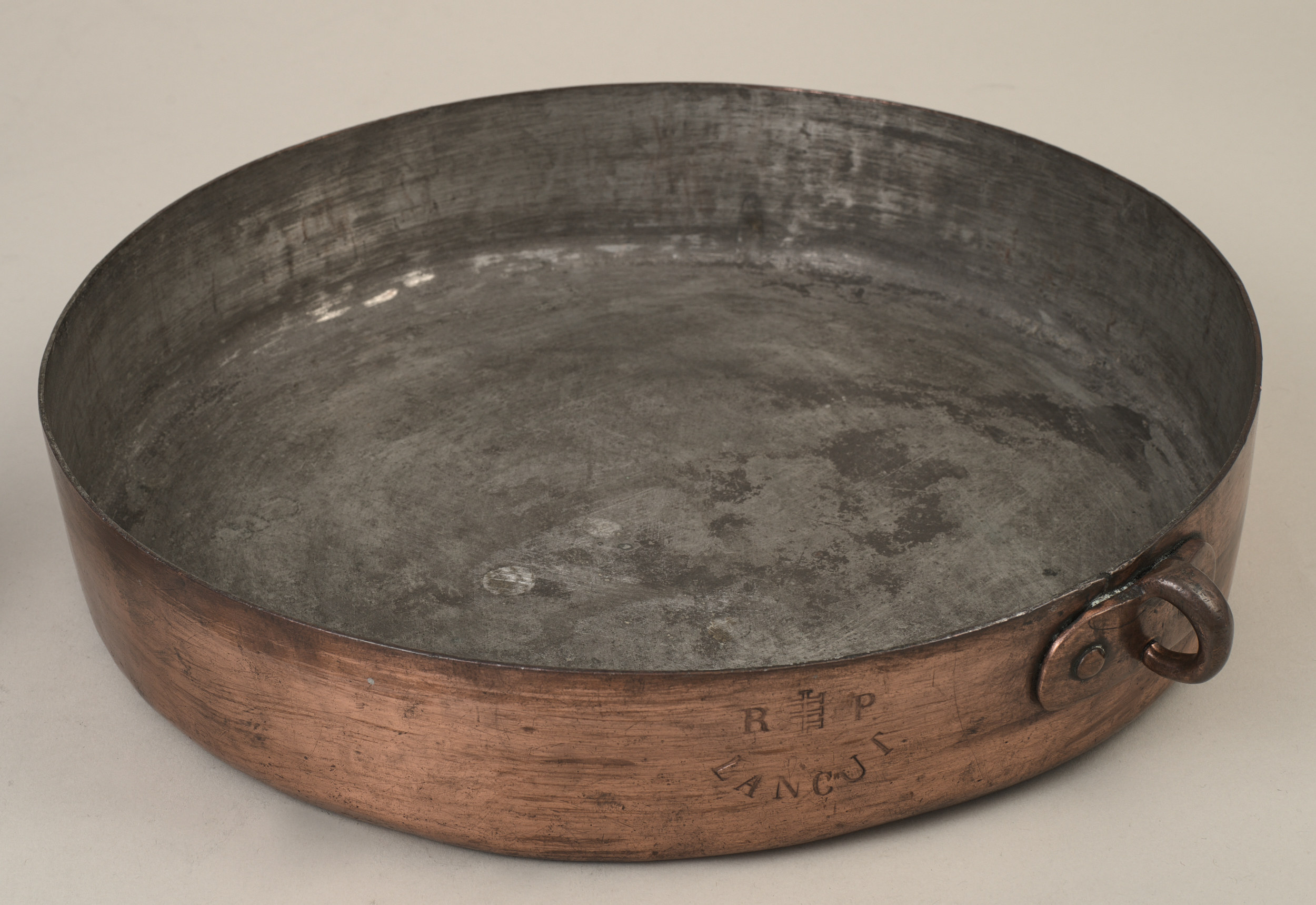 Tortownica duża na ciasto biszkoptowe z blachy miedzianej, z XIX wieku, z kolekcji Potockich. Naczynie w kształcie niskiego walca o zaokrąglonym brzegu dolnym. Przy górnym brzegu naczynia przynitowana dwoma nitami prostokątna blaszka nad nią uszko w kształcie pętelki z miedzianego drucika. Na ściance wybite litery „R P” między herbem Pilawa, pod spodem napis „LANCUT”. Naczynie w środku bielone (cynowane). Omawiana tortownica eksponowana jest na Korytarzu Wschodnim II p, gdzie zgromadzone są wyroby (naczynia) z miedzi, będące w znacznej części pozostałościami po niezachowanych kuchniach zamkowych.