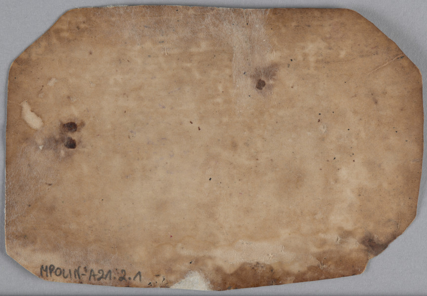 Wszystkie rogi ścięte do skosów. Na odwrocie ślady po karcie albumu, do której zdjęcie było niegdyś przyklejone.