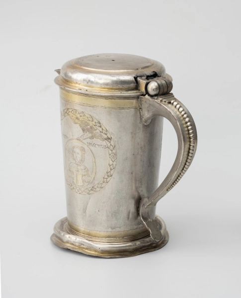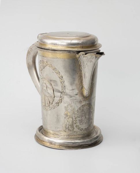 Dzban na wino komunijne, pochodzący z kościoła św. Ducha w Stargardzie, ozdobiony został w nietypowy sposób. Po bokach w wieńcach z liści laurowych widoczne są dwa medaliony trzymane przez wysuwającą się z obłoków rękę Boga. W jednym z nich ukazano mężczyznę z długimi, lekko falującymi włosami, ubranego w modny w 2. połowie XVII wieku wams z wyłożonym kołnierzem, w drugim – młodą kobietę, w sukni z dużym dekoltem odsłaniającym ramiona i bufiastymi rękawami. Zgodnie z inskrypcjami portrety przedstawiają fundatorów naczynia – Theophila Pipera (1620–1676) oraz jego żonę Elisabethę, z domu Brüsewitz. Theophil był zamożnym patrycjuszem, zajmującym się handlem suknem, jako starszy gildii sukienników przez kilka lat pełnił funkcję dyrektora stargardzkich stowarzyszeń kupieckich i rzemieślniczych. Jego małżonka pochodziła ze starego, szlacheckiego rodu von Brüsewitzów, wywodzącego się z Meklemburgii i mającego majątki również na Pomorzu.