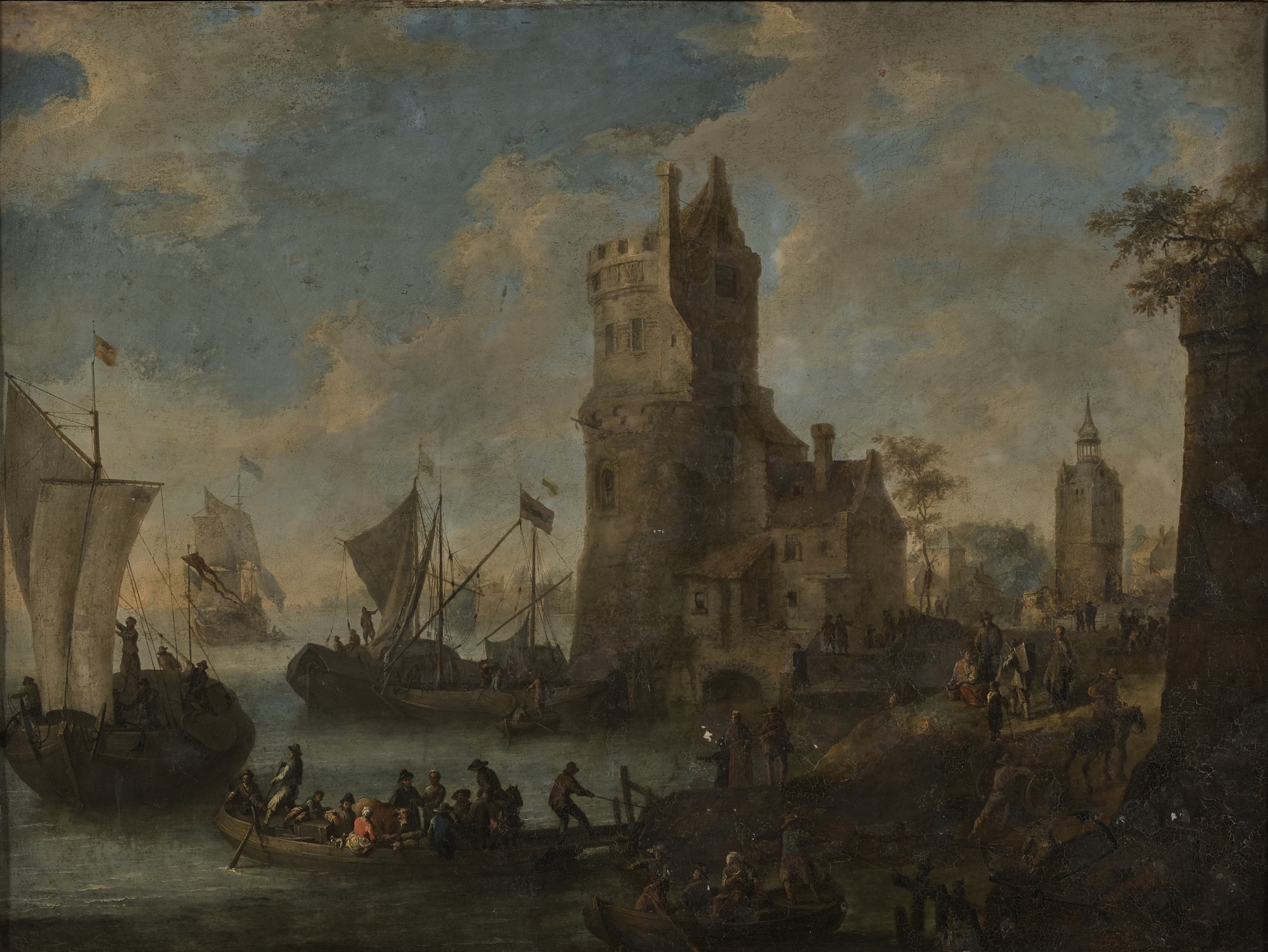 Obraz z kolekcji muzealnej przedstawia przystań z okrętami. Kolorystyka jasna, przeważają tony niebieskawe i szaro – beżowe. Po lewej stronie obrazu morze, ciągnące się aż po horyzont, po prawej wybrzeże o falistej linii brzegowej, tworzącej małą zatoczkę. Na brzegu wznosi się kamienna baszta z przybudówką, a w głębi latarnia morska. Na morzu żaglowce i łodzie z ludźmi na pokładzie, grupki ludzi stoją na brzegu. Obraz ujęty w szeroką, drewnianą, profilowaną, złoconą ramę, ozdobioną trzema rodzajami ornamentów w układzie pasowym. Obraz jest malowany na blasze miedzianej, pochodzi z ok. pol. XVII w i przypisywany jest Bonawenturze Peetersowi. Bonaventura Peeters (ur, w lipcu 1614 r w Antwerpii, zm. w lipcu 1652 r w Hoboken) to malarz okresu baroku, pochodził z rodziny malarzy, przez całe życie był związany z Antwerpią, gdzie pracował z dwoma swymi braćmi – malarzami i gdzie należał do gildii św. Łukasza. Uważany jest za najlepszego flamandzkiego marynistę XVII w, bo właśnie obrazy o tematyce morskiej (tak zwane „mariny”) były jego ulubionymi . Często malował sztormy, bitwy morskie czy katastrofy lub pejzaże związane z wodą. Obraz łańcucki eksponowany jest w Sali Kolumnowej na I p. Zamku Łańcuckiego.