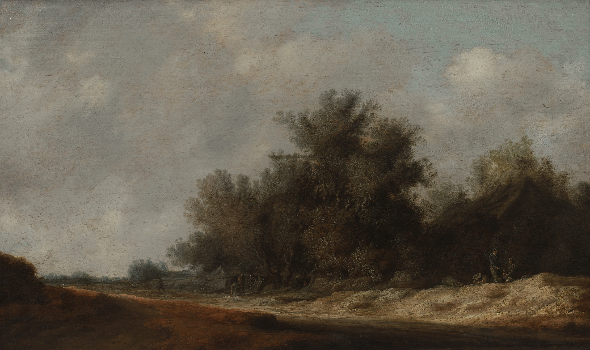Jesiennoruda tonacja barwna, równie znamienna jak repertuar użytych motywów: piaszczysta droga wijąca się wśród wydm i zabudowań wiejskich po kres horyzontu, anonimowe postacie wieśniaków pochłoniętych sprawami życia codziennego, z ledwie zarysowaną sylwetką oddalającego się samotnego wędrowca oraz wszechobecna nuta romantycznej nostalgii – wszystko to jest przejawem swoiście holenderskiego rozumienia natury. W dziele o subtelnych półtonach i urzekającej harmonii kolorystycznej, uchwycił Ruysdael świetliste szare niebo z przebłyskującym skrawkiem błękitu ponad złocistymi wydmami tak, że pejzaż traci dawny narracyjny charakter a pozbawiony dramatyzmu nabiera rysu kontemplacyjnego.