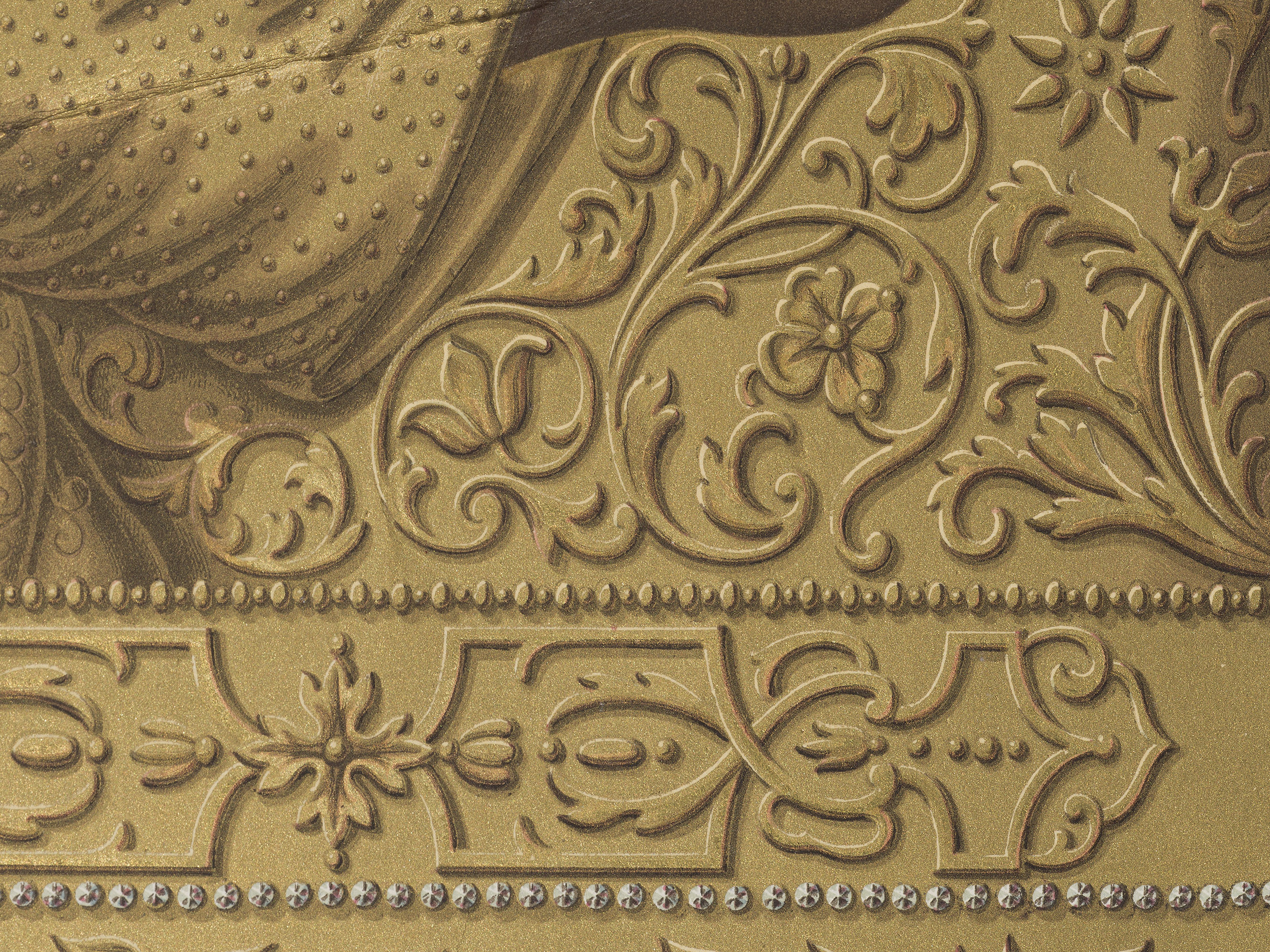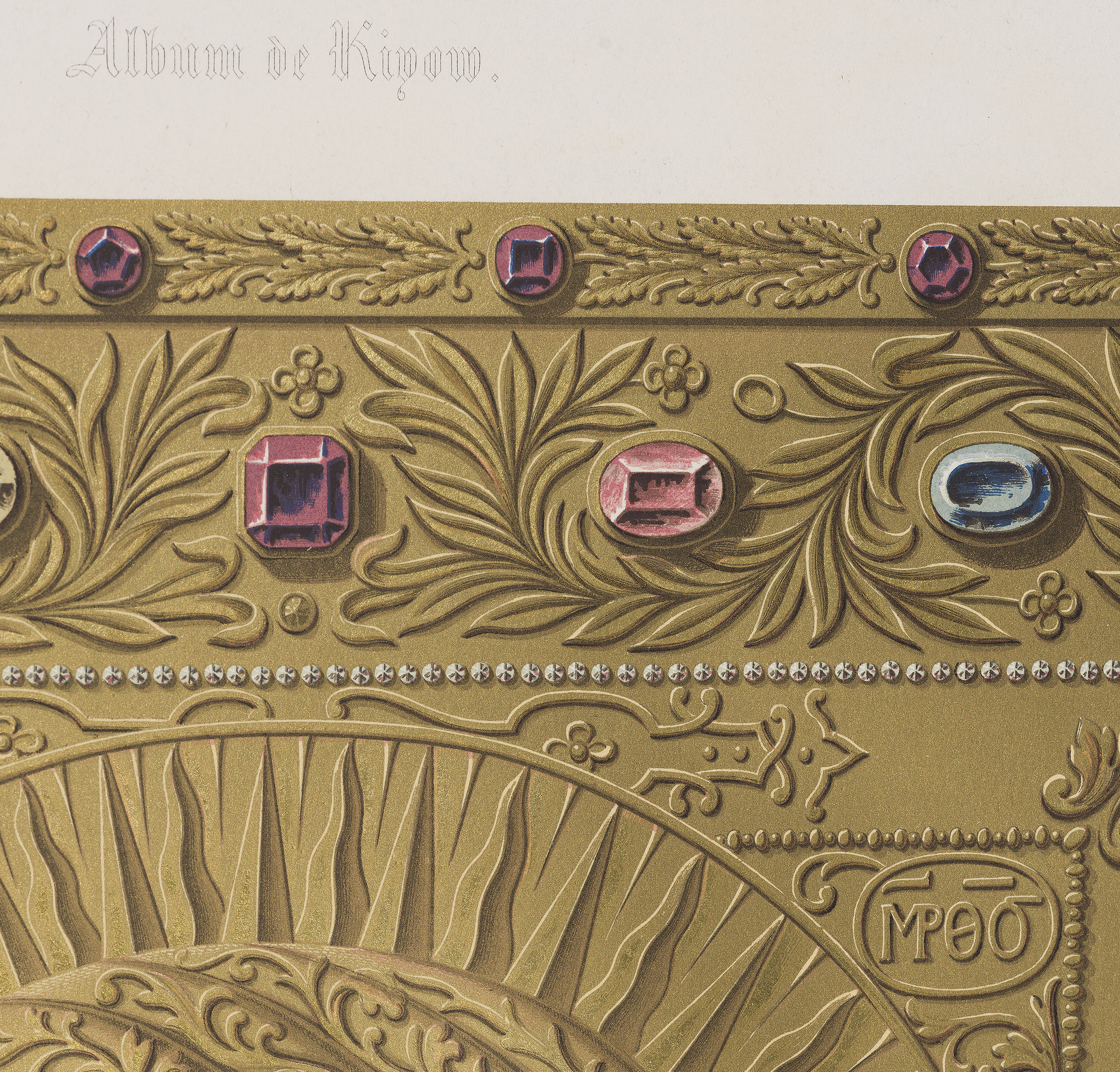 „Album Wileńskie”, znany też pod nazwą „Album de Wilna” to zainicjowania w latach 40. XIX wieku seria wydawnicza, której pomysłodawcą oraz twórcą był Jan Kazimierz Wilczyński (1806-1885). Przedmiotem serii były być szeroko pojęte „starożytności”;tematy odnoszące się do materialnego dziedzictwa, przede wszystkim Wielkiego Księstwa Litewskiego – sławne miejsca kultu, obrazy słynące łaskami, ilustracje dokumentujące dzieje Rzeczpospolitej, portrety zasłużonych postaci. Seria wydawana była w poszytach. Powstanie listopadowe wybuchło kiedy Wilczyński był w Paryżu. Osobiste zainteresowania, być może również sytuacja polityczna wynikła na bieżących wydarzeń w kraju, kontakt z Polakami żyjącymi w Paryżu, spowodowały, że porzucił zawód lekarza, i zwrócił się w stronę tematów historycznych oraz dokumentacji dziedzictwa kulturalnego Rzeczpospolitej. Na takich właśnie podstawach formowała się koncepcja Albumu Wileńskiego. Dzięki szerokiej dostępności reprodukowanych dzieł, historia oraz historia sztuki trafiały pod strzechy, konsolidując poczucie wspólnoty w społeczeństwie silnie odczuwającym represje popowstaniowe. Niniejsze przedstawienie pochodzi z serii Albumu zatytułowanej „Album Kijowskie”, wydanego ok. 1850 roku. Jest to reprodukcja ikony NP. Marii z Dzieciątkiem Jezus, która osłonięta jest dekoracyjną, złotą plakietą inkrustowaną szlachetnymi kamieniami. Pod wizerunkiem znajduje się opis cyrylicą, którego treść w tłumaczeniu to: Prawdziwy wizerunek Matki Bożej, przed którą św. męcznnik Igor Olegowicz kniaź kijowski i czernichowski modlił się w momencie swej śmierci w r. 1148, i która do dnia dzisiejszego znajduje się w Kijowsko Peczerskiej Ławrze. (tłum. za: J. Jaworska, Album Wileńskie i jego wydawca Jan Kazimierz Wilczyński w świetle korespondencji z Konstantym Świdzińskim, Rocznik MNW, 1972, s. 371). Odbitka zawiera również informacje o autorach, odbite pod samym wizerunkiem, z lewej i prawej strony; od l.: H. Moulin lith., p.d.: Chromolith. Lemercier, r. de Seine, 57, à Paris. Kolejne poszyty Albumu Wileńskiego przygotowywane były i wydawana w Paryżu, w drukarni Lemerciera lub Drouarta. Zapewniło im to wysoką jakość artystyczną i wydawniczą, a walory te możemy dostrzec na omawianej chromolitografii.