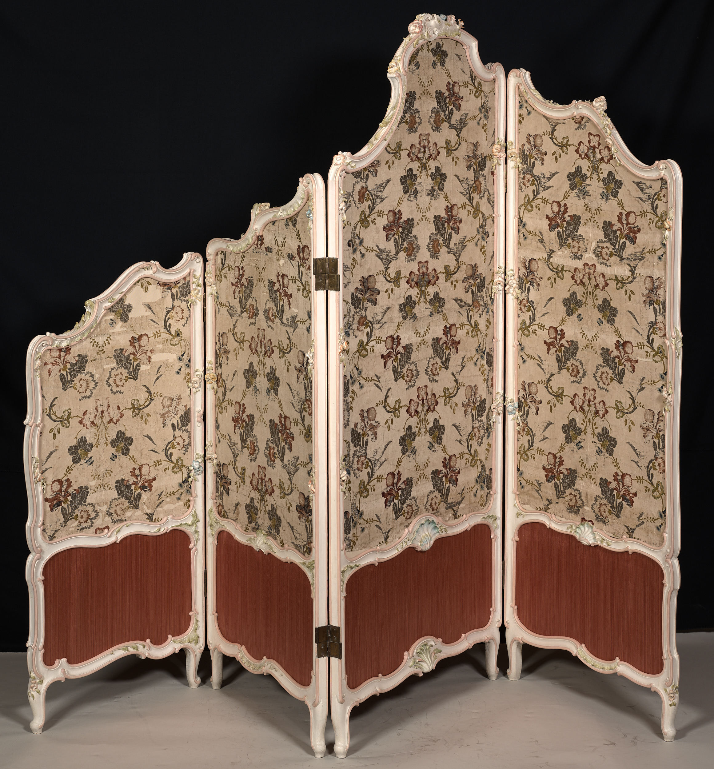 Parawan składa się zazwyczaj z kilku przegubowo łączonych skrzydeł. Mebel spełnia rolę ruchomej ścianki służącej do zasłonięcia lub wygrodzenia przestrzeni. Jest to jeden z najbardziej funkcjonalnych i poręcznych sprzętów stosowanych we wnętrzach mieszkalnych. Jego nazwa pochodzi z włoskiego para vento tłumaczonego jako osłonę od wiatru. Francuzi zapożyczyli termin i spopularyzowali pod nazwą „paravent”. Parawany pochodzą z Chin. W Europie sprzęty te pojawiły się prawdopodobnie w XVI w., gdy wyprawy odkrywców i kupców rozbudziły fascynację Dalekim Wschodem. W epoce baroku i rokoka, na skutek zainteresowania szeroko pojętą kulturą orientu, wzrosło zapotrzebowanie na dalekowschodnie wyroby rzemiosła lub ich europejskie naśladownictwa. W Europie parawany cieszyły się największą popularnością w XVIII i XIX w., a ich stylistyka ulegała przeobrażeniom, w zależności do aktualnie panującej na gruncie europejskim mody. Widać to między innymi w epoce francuskiej regencji oraz rokoka, które naśladowała cała Europa. W prezentowanym parawanie, prowadzona falistą niespokojną linią górna krawędź mebla zaciera częściowo jego szkieletową konstrukcję, ozdobioną typowymi dla stylu rokoka snycerowanymi ornamentami. W XIX w., gdy w sztuka i rzemiosło europejskie zdominowane były retrospektywnym podejściem do minionych epok, na równi z innymi powróciła okresowo moda na rokoko w wydaniu neostylu, jak widać na prezentowanym przykładzie.