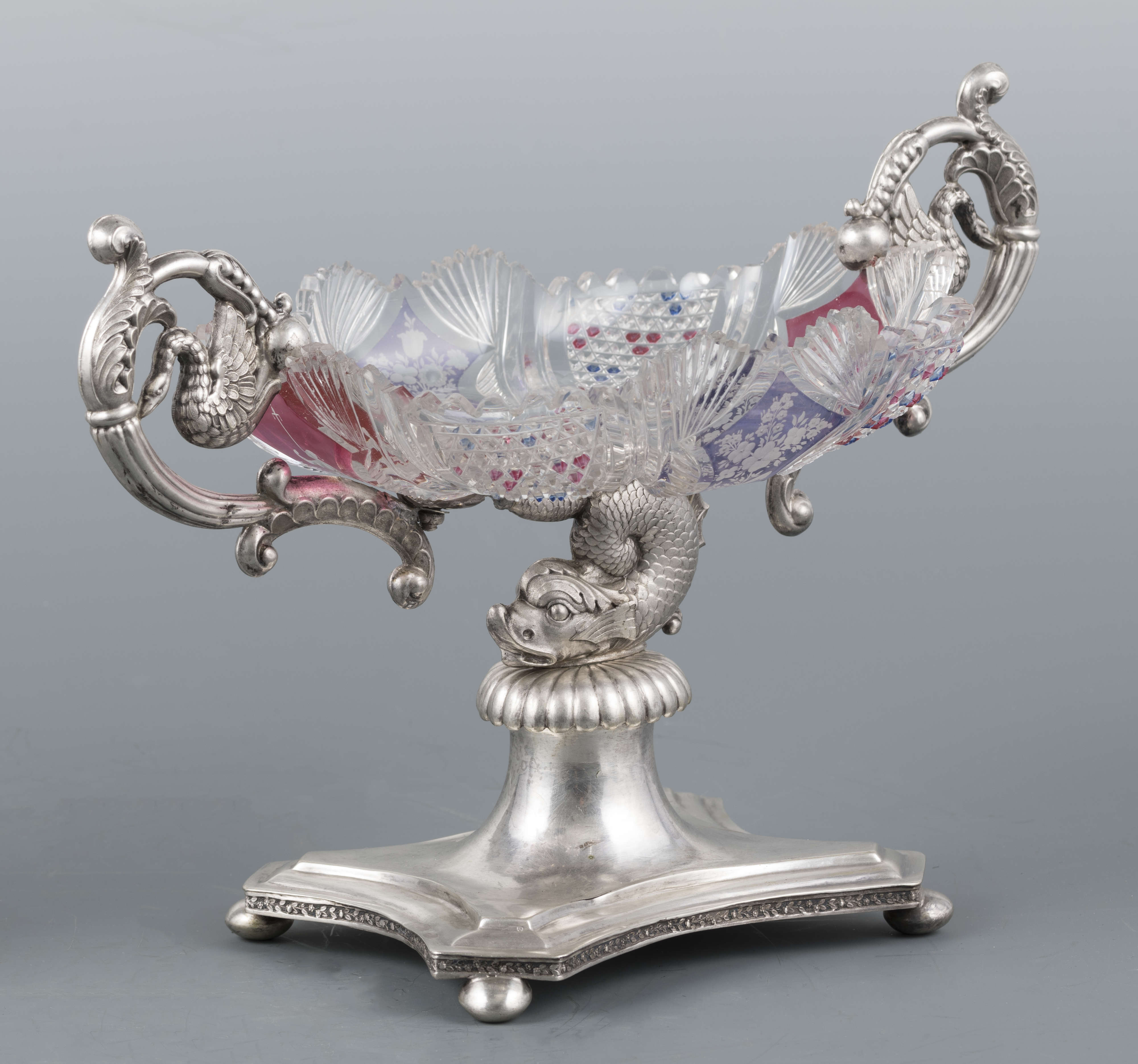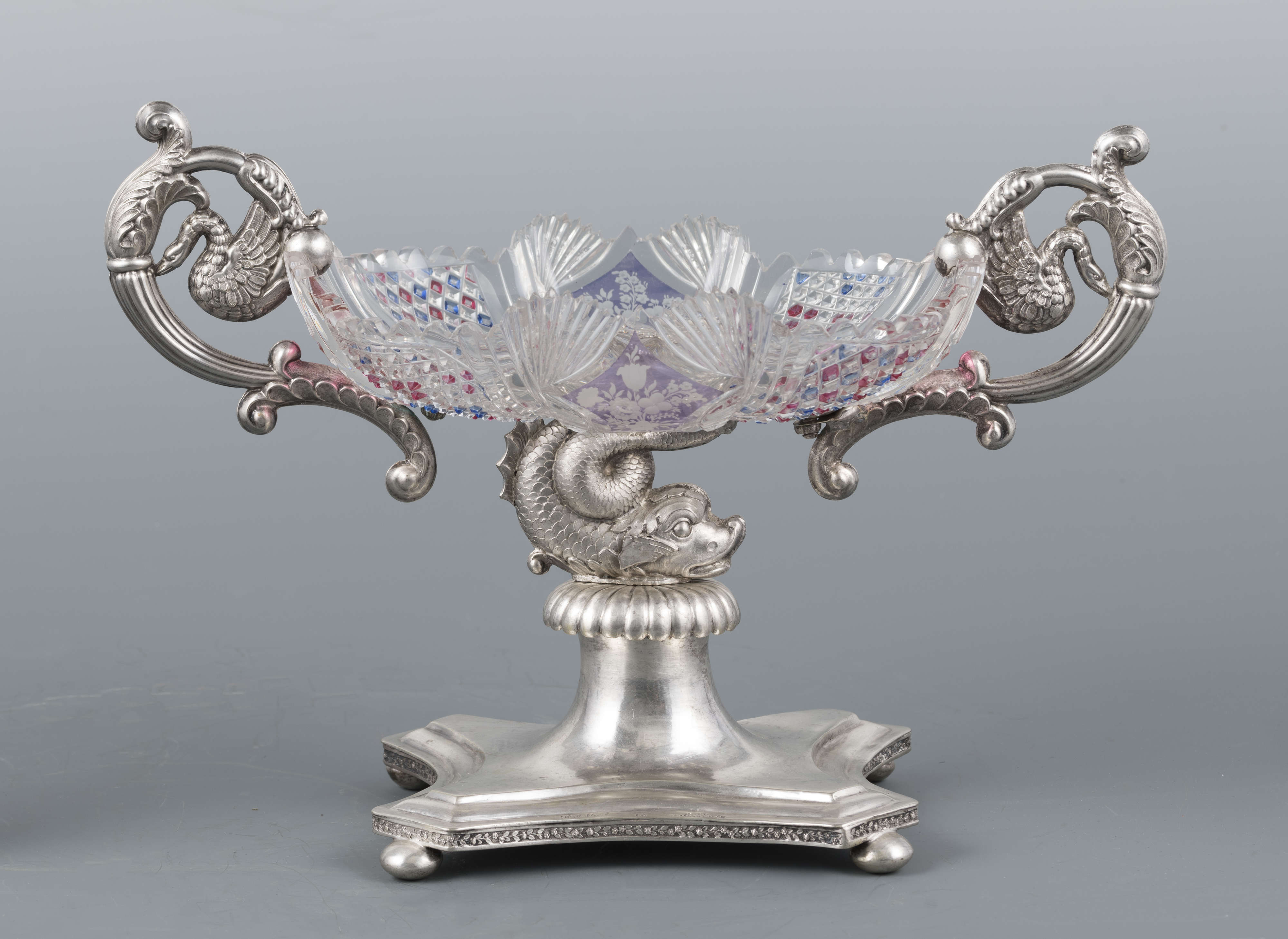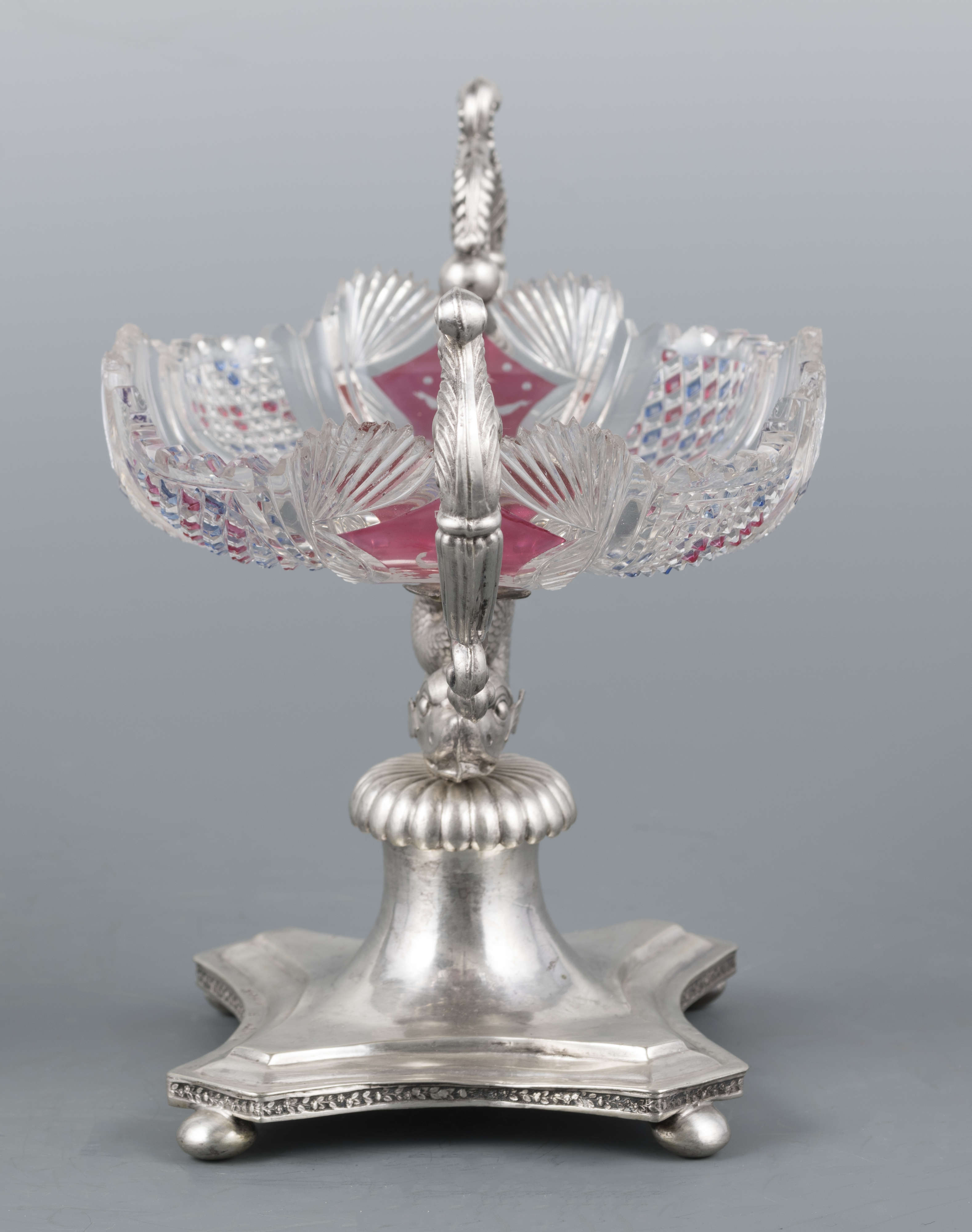 Znajdująca się w kolekcji sztuki zdobniczej Muzeum Narodowego w Lublinie patera, czyli naczynie stołowe mające formę talerza umieszczonego na nóżce lub podstawce, służące przeważnie do podawania ciast i owoców, złożona ze szklanej czary w srebrnej oprawie, jest jednym z przykładów wyrafinowanego warsztatu Karola Rotkiela, lubelskiego złotnika działającego na przełomie XVIII i XIX wieku. Niestety niewiele wiemy o życiu artysty. Karol Rotkiel urodził się w 1800 roku w Warszawie, jednak to we włoskich warsztatach złotniczych zdobywał swoje umiejętności. Po powrocie w 1832 roku do Polski osiadł w Lublinie, gdzie otworzył pracownię złotniczą, która mieściła się w jego kamienicy przy ulicy Krakowskie Przedmieście 21. W tym samym budynku funkcjonował również znany Hotel Angielski, prowadzony przez jego żonę Ewę. Wyroby Rotkiela noszą cechy klasycyzmu z elementami barokowymi, o czym świadczy na przykład stosowanie popularnej w XVI i XVII wielu techniki puklowania, czyli dekoracyjnego kształtowania powierzchni przedmiotu w celu uzyskania dowolnie rozmieszczonych półkolistych lub łezkowatych guzków układających się niekiedy w całe grona. Prezentowana srebrna patera z czarą ze szlifowanego, grawerowanego oraz barwionego szkła, umieszczona na wijącym się grzbiecie figury delfina, jest przykładem warsztatu twórcy, który poprzez jakość swoich wyrobów stał się jednym z najwybitniejszych złotników polskich działających w 1. połowie XIX stulecia. Nie dziwi zatem fakt, że obiekty pochodzące z jego lubelskiego warsztatu stanowią ciekawe uzupełnienie zarówno publicznych, jak i prywatnych kolekcji nie tylko w Polsce, ale i na świecie. Tym samym pojawiające się srebrne patery, cukiernice, solniczki, mleczniki, tace czy dzbanki, które wyszły spod ręki mistrza, na aukcjach, zarówno w kraju, jak i za granicą, osiągają ceny od kilku do kilkunastu tysięcy euro.