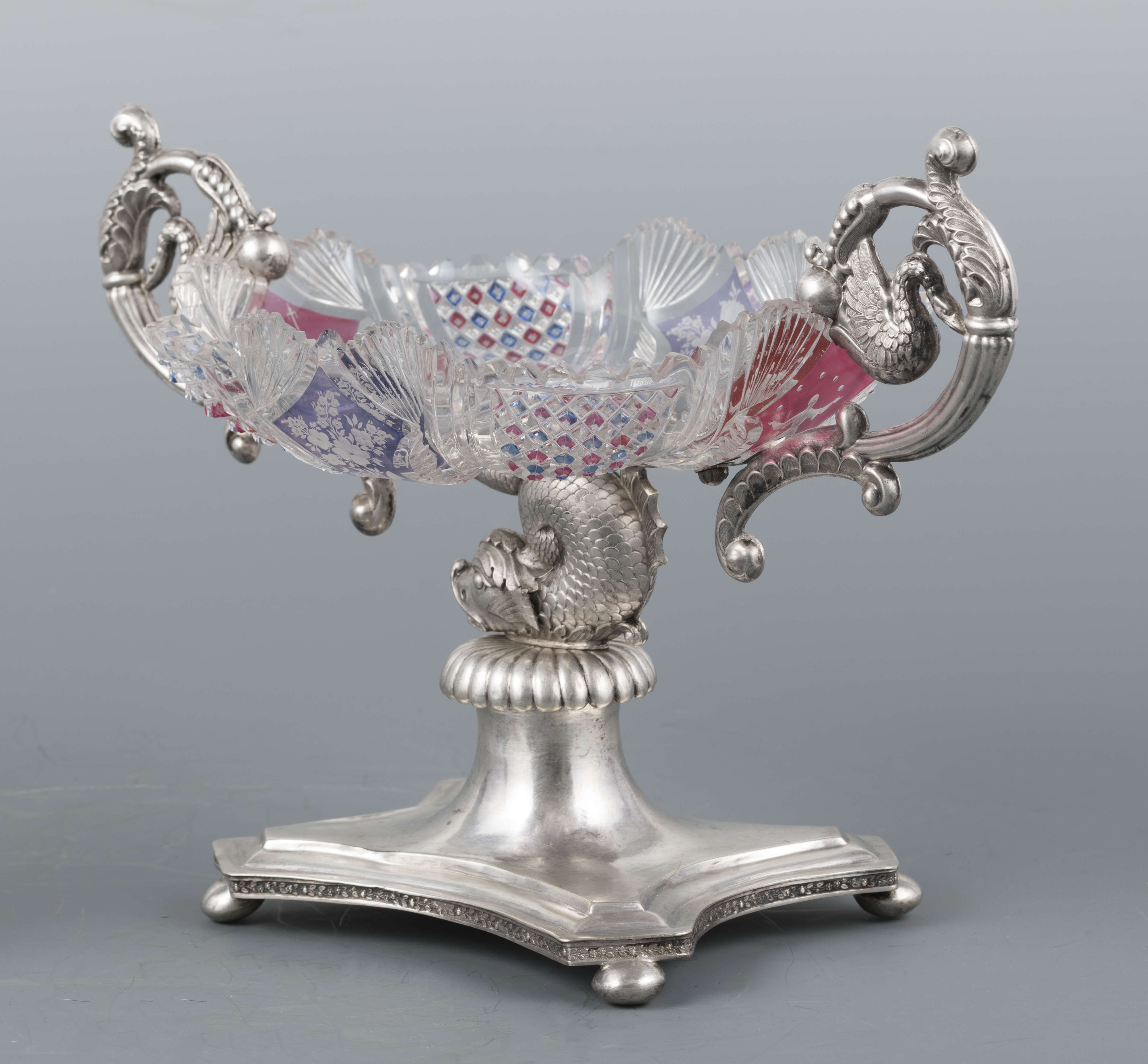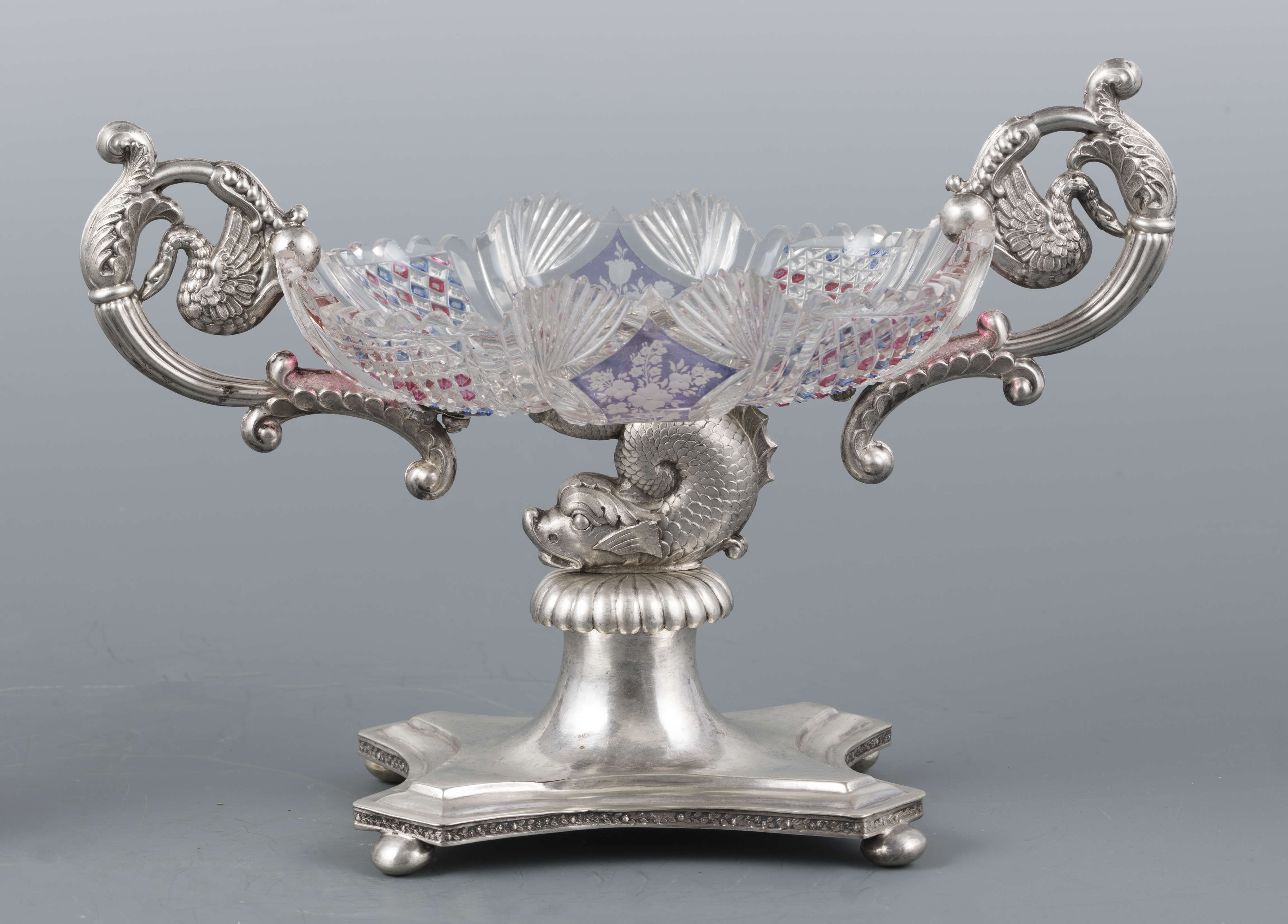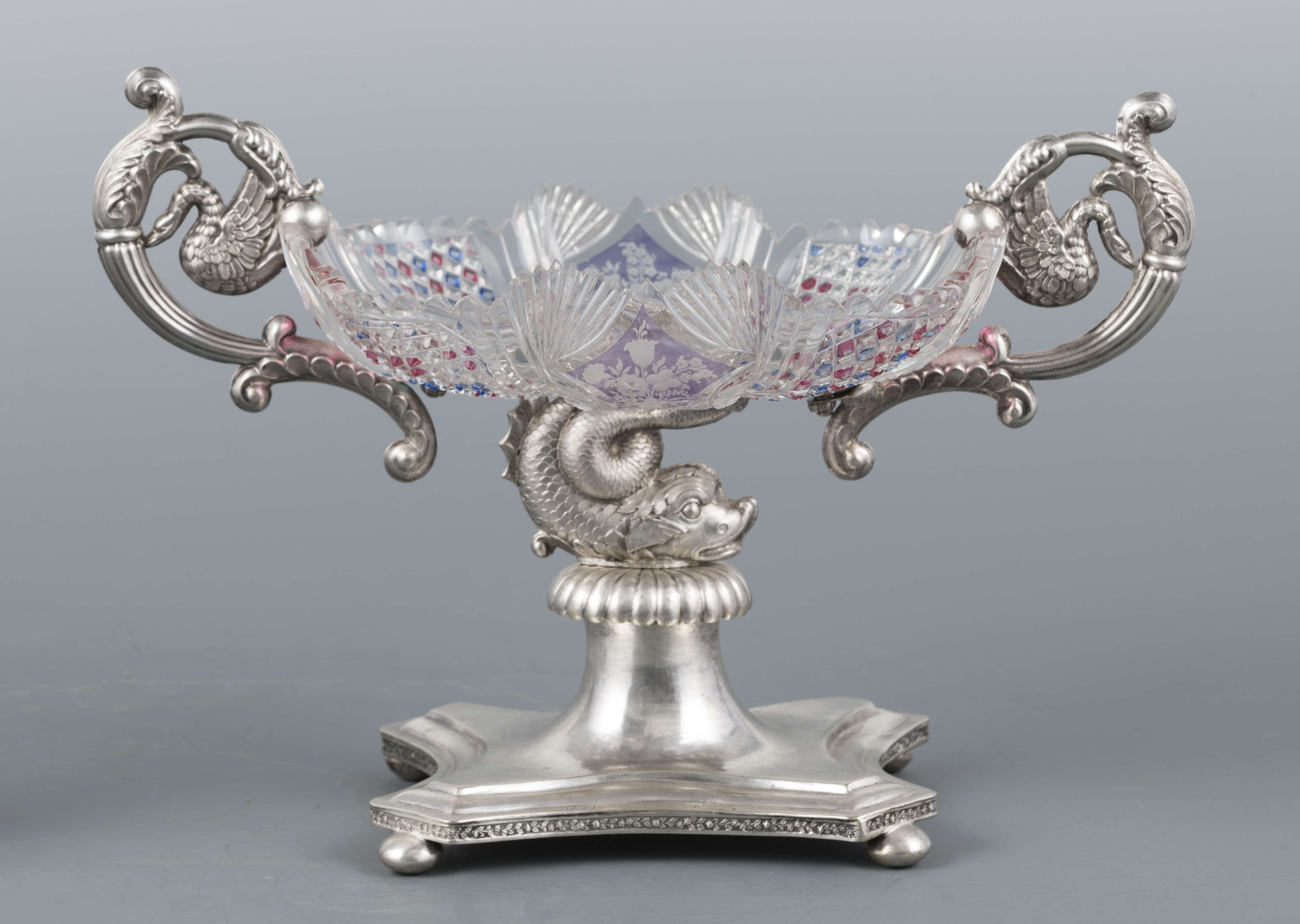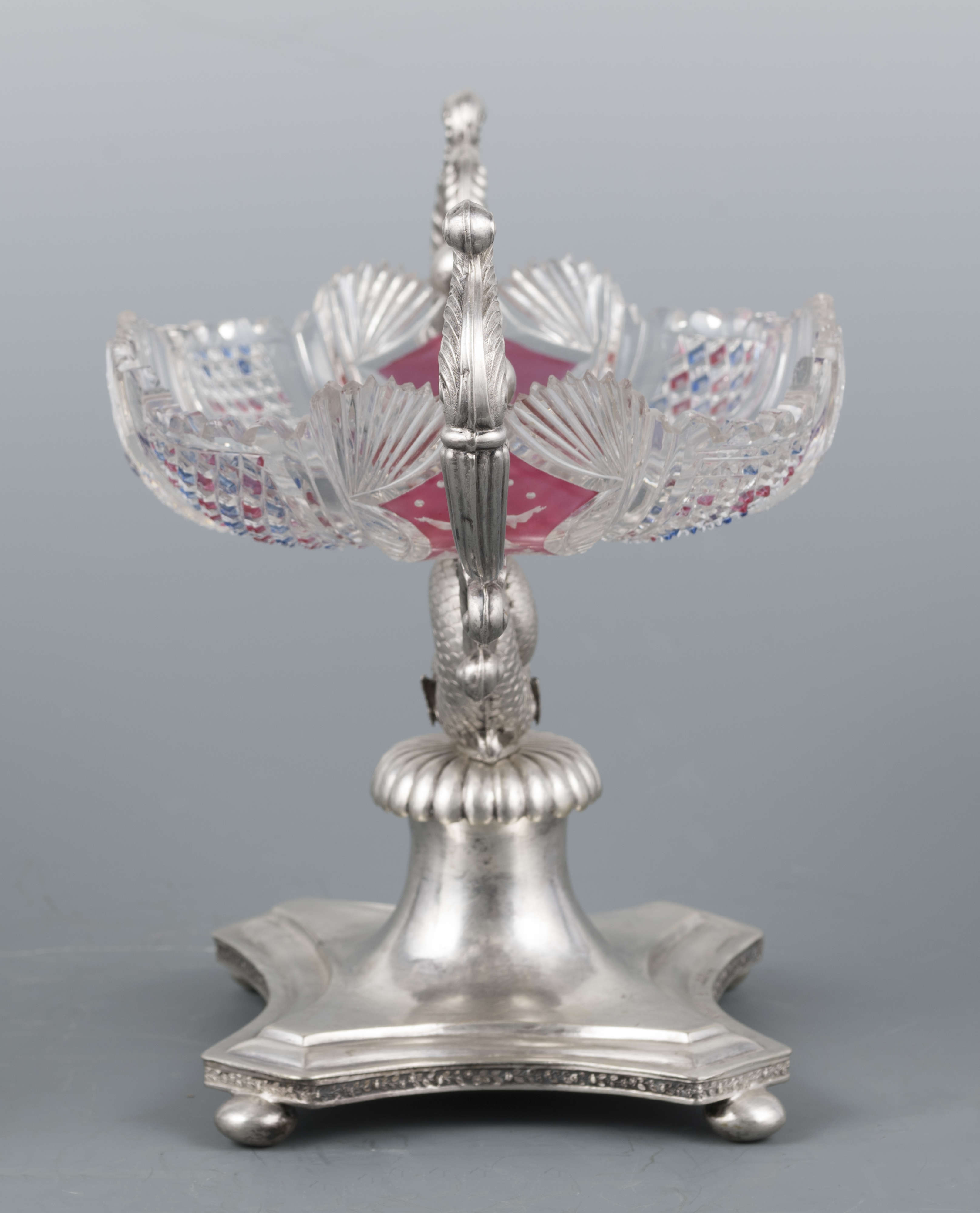 Znajdująca się w kolekcji sztuki zdobniczej Muzeum Narodowego w Lublinie patera, czyli naczynie stołowe mające formę talerza umieszczonego na nóżce lub podstawce, służące przeważnie do podawania ciast i owoców, złożona ze szklanej czary w srebrnej oprawie, jest jednym z przykładów wyrafinowanego warsztatu Karola Rotkiela, lubelskiego złotnika działającego na przełomie XVIII i XIX wieku. Niestety niewiele wiemy o życiu artysty. Karol Rotkiel urodził się w 1800 roku w Warszawie, jednak to we włoskich warsztatach złotniczych zdobywał swoje umiejętności. Po powrocie w 1832 roku do Polski osiadł w Lublinie, gdzie otworzył pracownię złotniczą, która mieściła się w jego kamienicy przy ulicy Krakowskie Przedmieście 21. W tym samym budynku funkcjonował również znany Hotel Angielski, prowadzony przez jego żonę Ewę. Wyroby Rotkiela noszą cechy klasycyzmu z elementami barokowymi, o czym świadczy na przykład stosowanie popularnej w XVI i XVII wielu techniki puklowania, czyli dekoracyjnego kształtowania powierzchni przedmiotu w celu uzyskania dowolnie rozmieszczonych półkolistych lub łezkowatych guzków układających się niekiedy w całe grona. Prezentowana srebrna patera z czarą ze szlifowanego, grawerowanego oraz barwionego szkła, umieszczona na wijącym się grzbiecie figury delfina, jest przykładem warsztatu twórcy, który poprzez jakość swoich wyrobów stał się jednym z najwybitniejszych złotników polskich działających w 1. połowie XIX stulecia. Nie dziwi zatem fakt, że obiekty pochodzące z jego lubelskiego warsztatu stanowią ciekawe uzupełnienie zarówno publicznych, jak i prywatnych kolekcji nie tylko w Polsce, ale i na świecie. Tym samym pojawiające się srebrne patery, cukiernice, solniczki, mleczniki, tace czy dzbanki, które wyszły spod ręki mistrza, na aukcjach, zarówno w kraju, jak i za granicą, osiągają ceny od kilku do kilkunastu tysięcy euro.