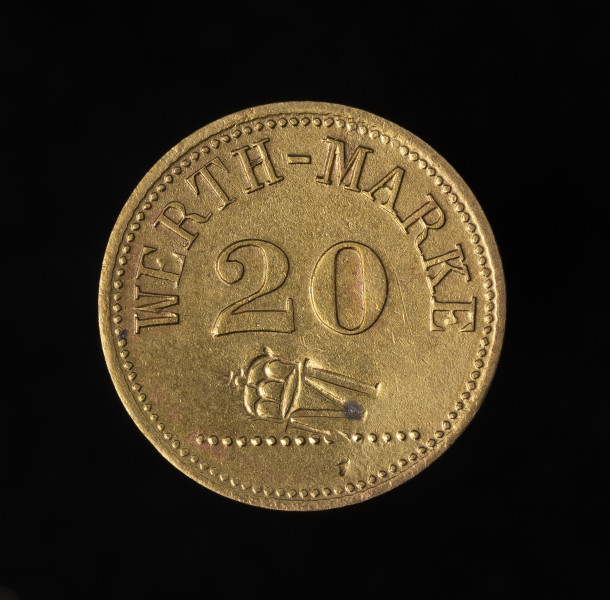 Można przypuszczać, że prezentowany egzemplarz pochodzi z lat 1916–1918, gdy monety zastępcze pełniły funkcję rzeczywistego pieniądza. Później bowiem bito je głównie na potrzeby kolekcjonerów.