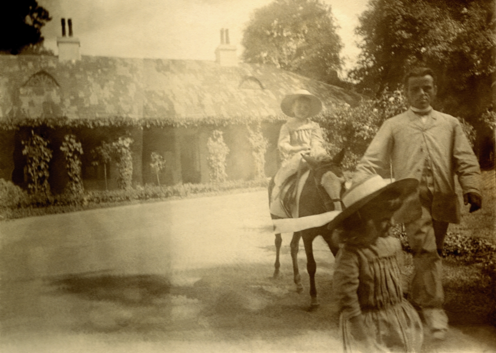 Fotografia prezentuje rodzeństwo starszą siostrę Helenę Marię Sierakowską z Lubomirskich oraz o rok od niej młodszego brata Jerzego Rafała Lubomirskiego jako kilkuletnie dzieci. Na pierwszym planie widoczny jest Jerzy Rafał, natomiast na kucyku siedzi Helena Maria. Kuca prowadzi pracownik ordynacji przeworskiej. Fotografia wykonana została w przypałacowym ogrodzie w Przeworsku na tle Zielonej Oficyny.