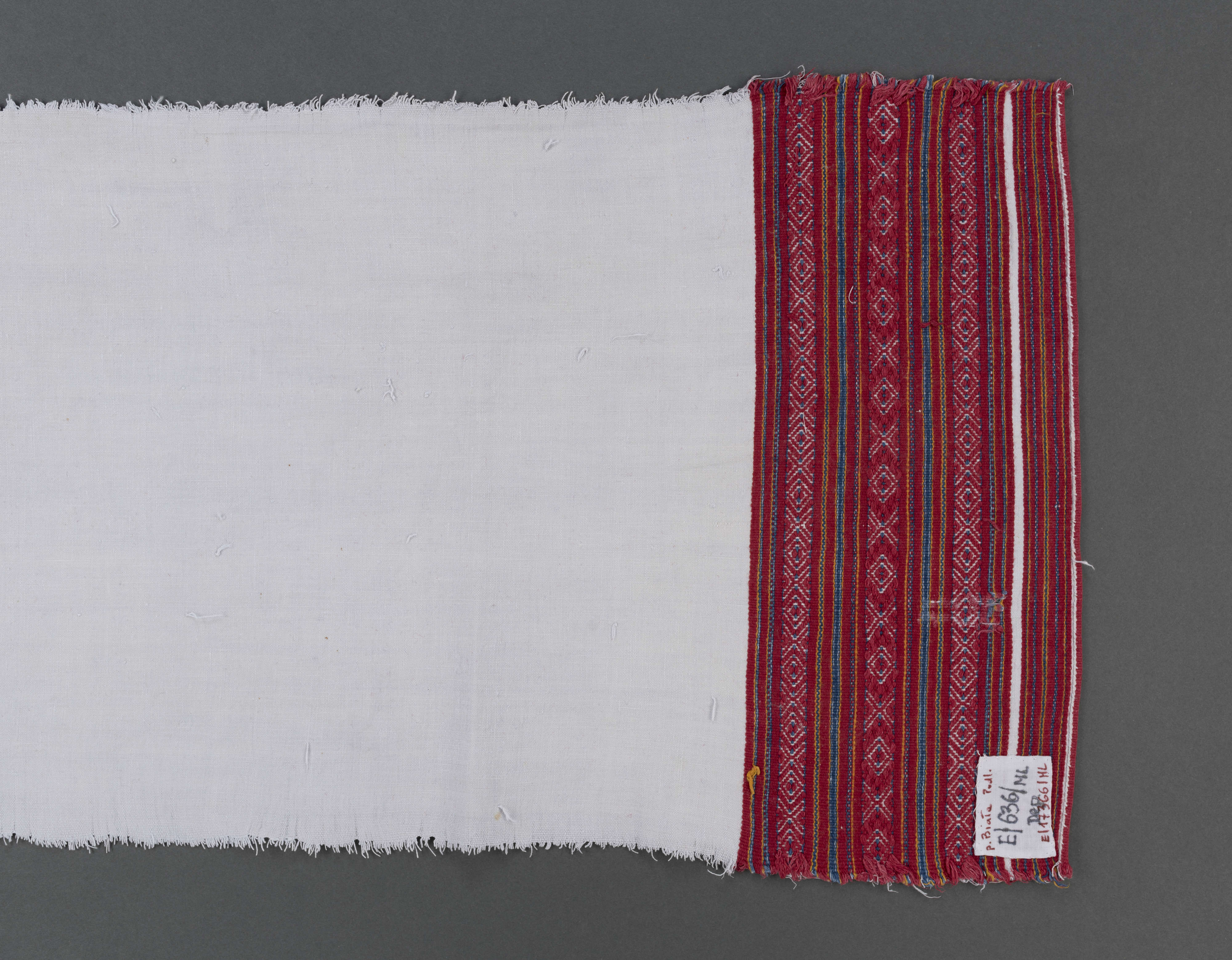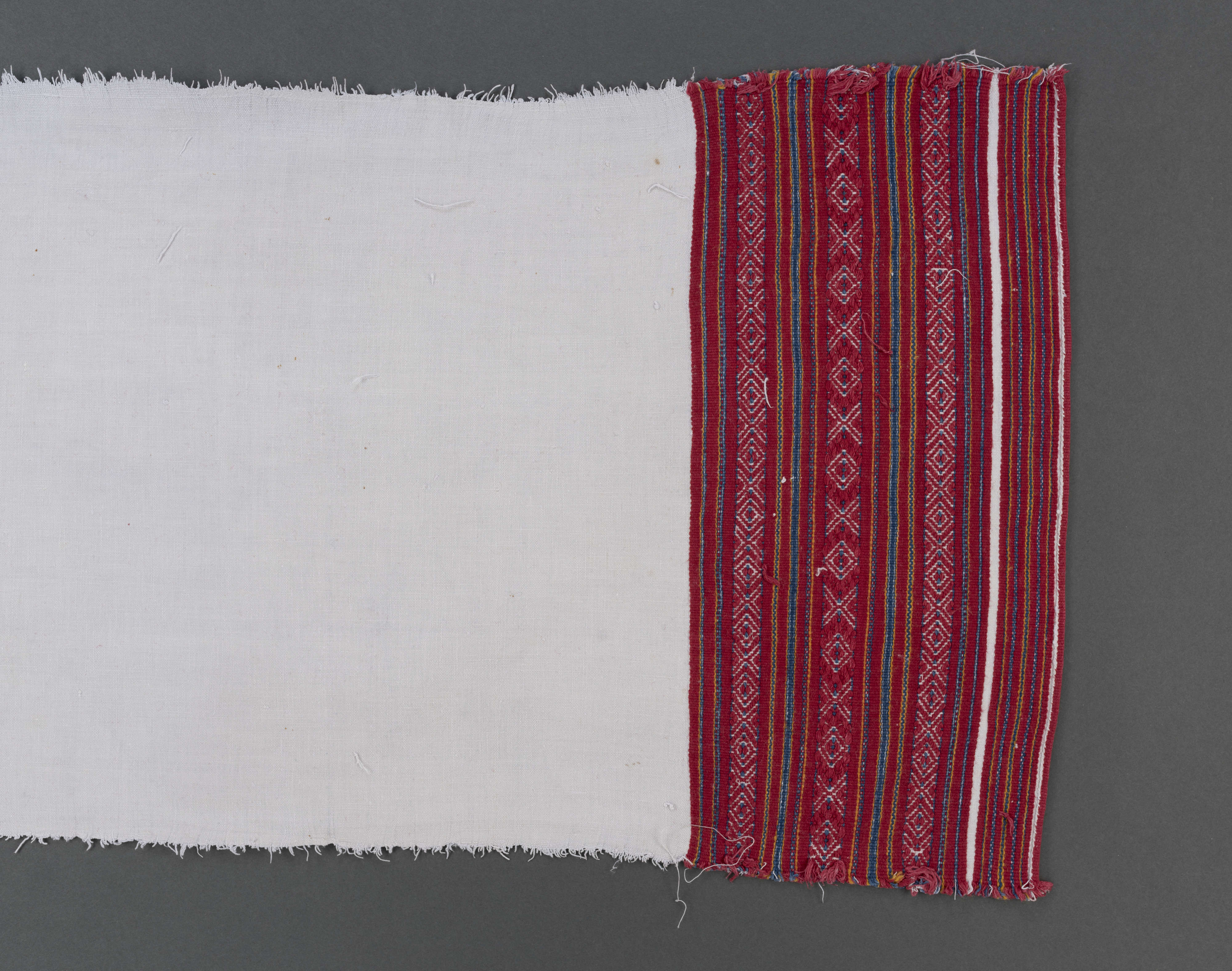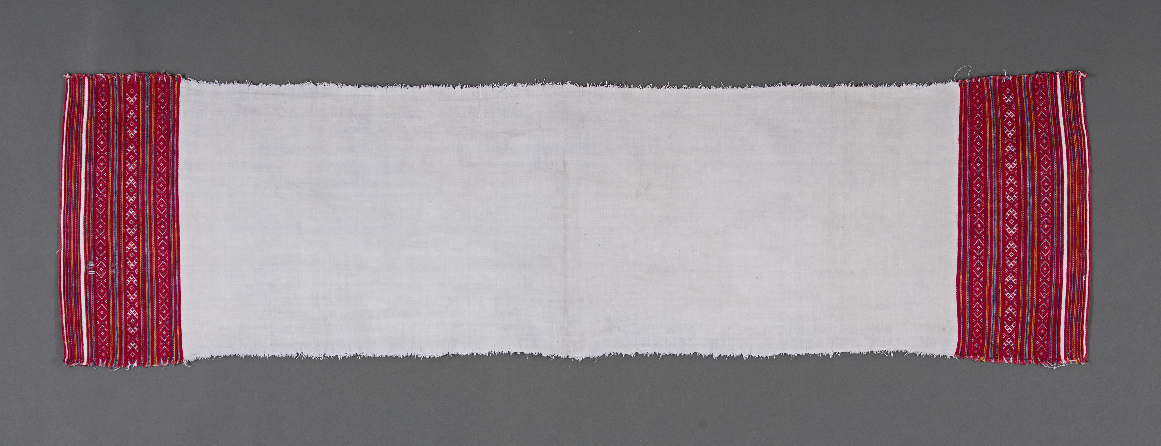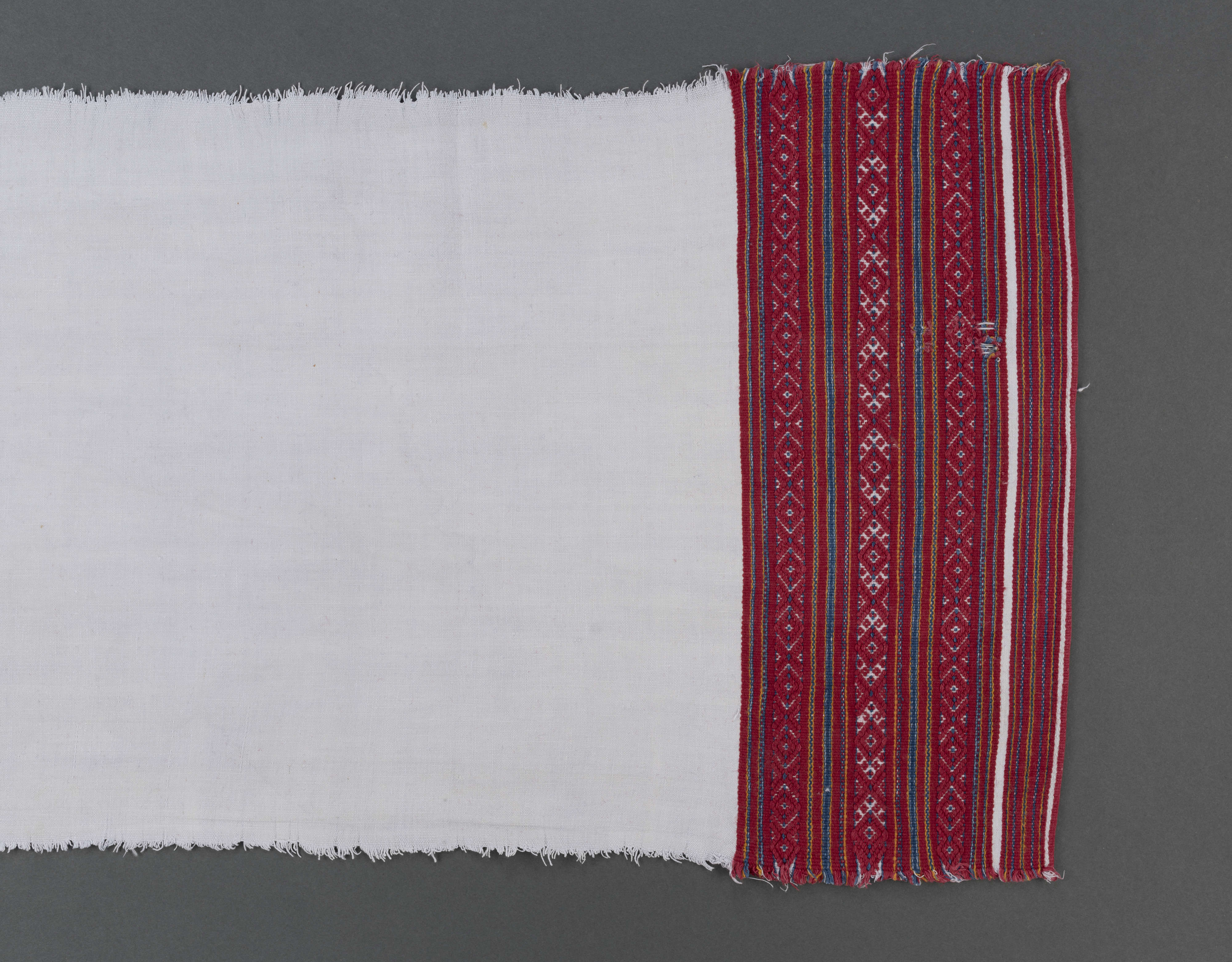 Ręcznik, zwany zawijką, był stosowany w stroju świątecznym włodawskim. Został utkany pod koniec XIX wieku w okolicach Białej Podlaski. Ma długość 121 cm, szerokość 32 cm. Wykonano go z bawełnianego samodziałowego płótna białego tkanego ręcznie na warsztacie tkackim splotem prostym, a jego brzegi na długości 14,5 cm są udekorowane ornamentem, zwanym pereborami, w kolorze czerwonym z dodatkiem żółtego i granatowego. Ta forma tkackiego ornamentu ozdobnego przyjęła się w Polsce tylko w okolicach Włodawy, południowej części Białej Podlaskiej i wschodnich okolic Parczewa. Wykonywania pereborów polskie kobiety nauczyły się od Rusinek, które zdobiły nimi elementy stroju kobiecego (koszule, spódnice, fartuchy) oraz męskiego (koszule). Skomponowany przez tkaczkę wzór tworzy prosty układ pasowy, w który są symetrycznie wprowadzone pasma mniej lub bardziej rozbudowanego wzoru geometrycznego.